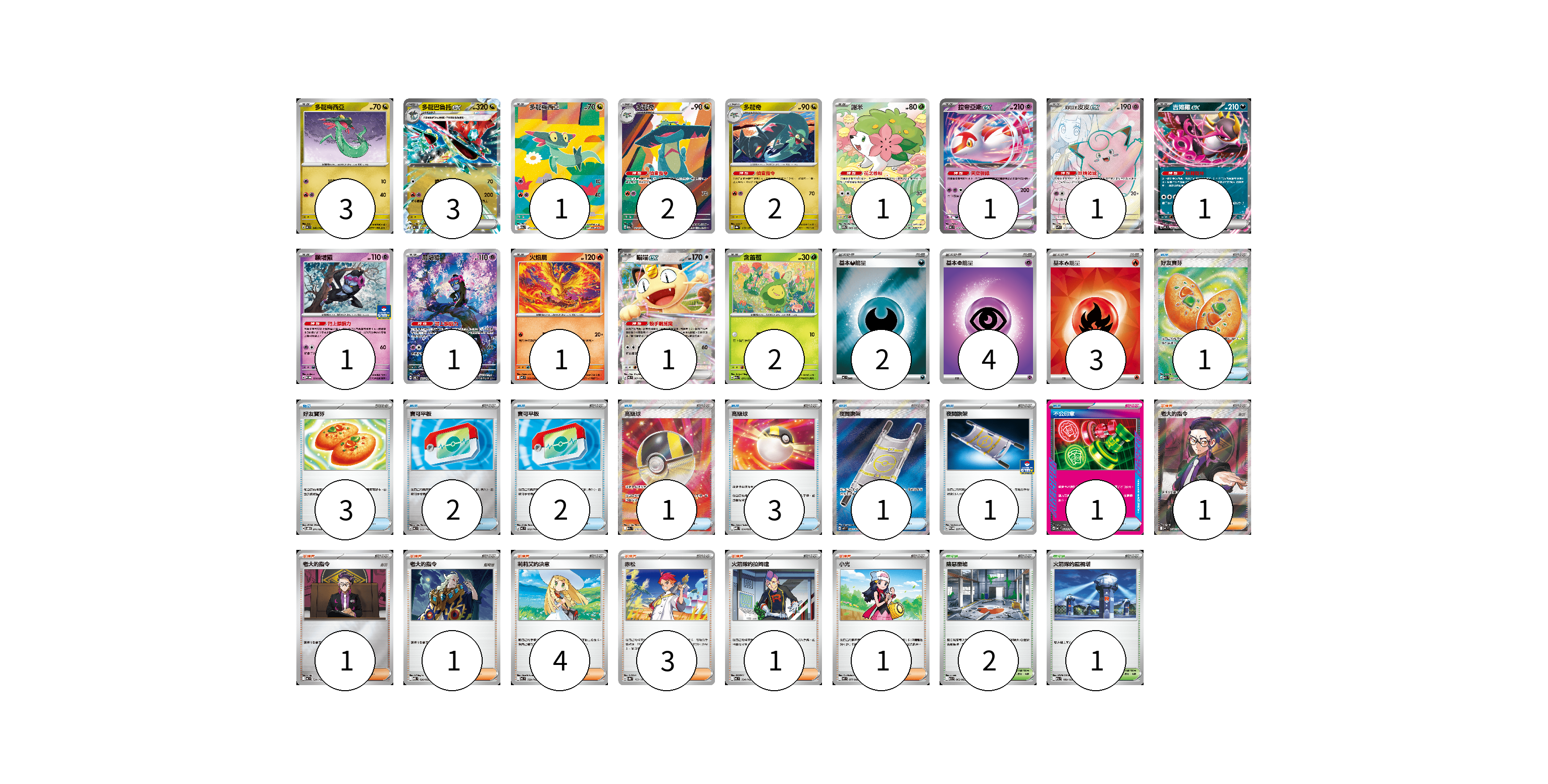 牌組構築方案 以此牌組為基礎新構築牌組 顯示卡面 顯示列表 寶可夢卡(21) 3 3 1 2 2 1 1 1 1 1 1 1 1 2 物品卡(15) 1 3 2 2 1 3 1 1 1 支援者卡(12) 1 1 1 4 3 1 1 競技場卡(3) 2 1 能量卡(9) 2 4 3 寶可夢卡(21) 卡牌名稱 張數 卡牌名稱 張數 多龍梅西亞 MC 546/742 03 多龍巴魯托ex MC 548/742 03 多龍梅西亞 M2a 211/193 01 多龍奇 M2a 212/193 02 多龍奇 SV8a 119/187 02 謝米 SV9a 066/063 01 拉帝亞斯ex MC 312/742 01 莉莉艾的皮皮ex SV9 115/100 01 吉雉雞ex MC 489/742 01 願增猿 M-P 014/M-P 01 願增猿 SV6 107/101 01 火焰鳥 M2 014/080 01 喵喵ex M3 061/080 01 含羞苞 M2a 011/193 02 物品卡(15) 卡牌名稱 張數 卡牌名稱 張數 好友寶芬 M1S 081/063 01 好友寶芬 SVOD 011/020 03 寶可平板 MC 662/742 02 寶可平板 MC 662/742 02 高級球 M2a 216/193 01 高級球 MBD 014/022 03 夜間擔架 M1L 083/063 01 夜間擔架 SV-P 227/SV-P 01 不公印章 MC 633/742 01 支援者卡(12) 卡牌名稱 張數 卡牌名稱 張數 老大的指令(烏羽) MC 760/742 01 老大的指令 MC 724/742 01 老大的指令 MBD 020/022 01 莉莉艾的決意 MC 729/742 04 赤松 SV8a 163/187 03 火箭隊的拉姆達 MC 734/742 01 小光 M2 077/080 01 競技場卡(3) 卡牌名稱 張數 卡牌名稱 張數 險惡廢墟 M1L 063/063 02 火箭隊的監視塔 M2a 189/193 01 能量卡(9) 卡牌名稱 張數 卡牌名稱 張數 基本【惡】能量 MC DAR 02 基本【超】能量 M-P PSY 04 基本【火】能量 SVM FIR 03 以此牌組為基礎新構築牌組 牌組編碼 ZqfFPt-wtSiFr-GCHvhe copy 列印牌組單 牌組編碼已複製 分享至SNS