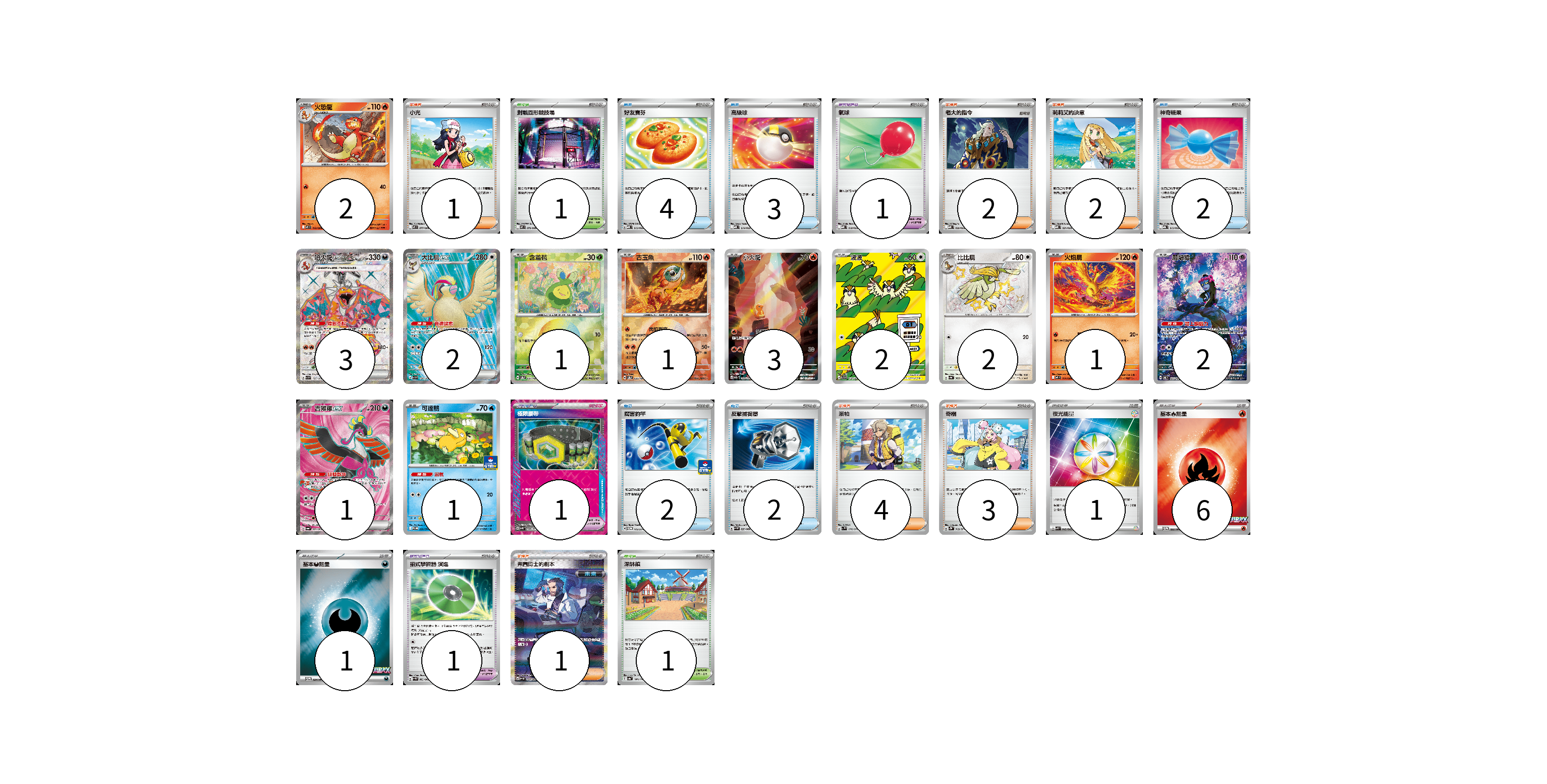 牌組構築方案 以此牌組為基礎新構築牌組 顯示卡面 顯示列表 寶可夢卡(21) 2 3 2 1 1 3 2 2 1 2 1 1 寶可夢道具(3) 1 1 1 物品卡(13) 4 3 2 2 2 支援者卡(13) 1 2 2 4 3 1 競技場卡(2) 1 1 能量卡(8) 1 6 1 寶可夢卡(21) 卡牌名稱 張數 卡牌名稱 張數 火恐龍 M2 012/080 02 噴火龍ex SV3 125/108 03 大比鳥ex SV3 128/108 02 含羞苞 SV8a 001/187 01 古玉魚 SV8a 025/187 01 小火龍 SV2a 168/165 03 波波 SV3 118/108 02 比比鳥 SV4a 305/190 02 火焰鳥 M2 014/080 01 願增猿 SV6 107/101 02 吉雉雞ex SV6a 081/064 01 可達鴨 SV-P 220/SV-P 01 寶可夢道具(3) 卡牌名稱 張數 卡牌名稱 張數 氣球 MBD 018/022 01 極限腰帶 SV5K 066/071 01 招式學習器 演進 SV4M 063/066 01 物品卡(13) 卡牌名稱 張數 卡牌名稱 張數 好友寶芬 MBD 013/022 04 高級球 MBD 014/022 03 神奇糖果 MBG 013/022 02 厲害釣竿 SV-P 112/SV-P 02 反擊捕捉器 SV4M 059/066 02 支援者卡(13) 卡牌名稱 張數 卡牌名稱 張數 小光 M2 077/080 01 老大的指令 MBD 020/022 02 莉莉艾的決意 MBD 021/022 02 派帕 SV1V 076/078 04 奇樹 SV2D 069/071 03 弗圖博士的劇本 SV4M 091/066 01 競技場卡(2) 卡牌名稱 張數 卡牌名稱 張數 對戰圓形競技場 M2 079/080 01 深缽鎮 SV4a 185/190 01 能量卡(8) 卡牌名稱 張數 卡牌名稱 張數 夜光能量 SVK 042/042 01 基本【火】能量 M-P 032/M-P 06 基本【惡】能量 M-P 034/M-P 01 以此牌組為基礎新構築牌組 牌組編碼 ZyzBGw-OPHOEl-WZebmp copy 列印牌組單 牌組編碼已複製 分享至SNS