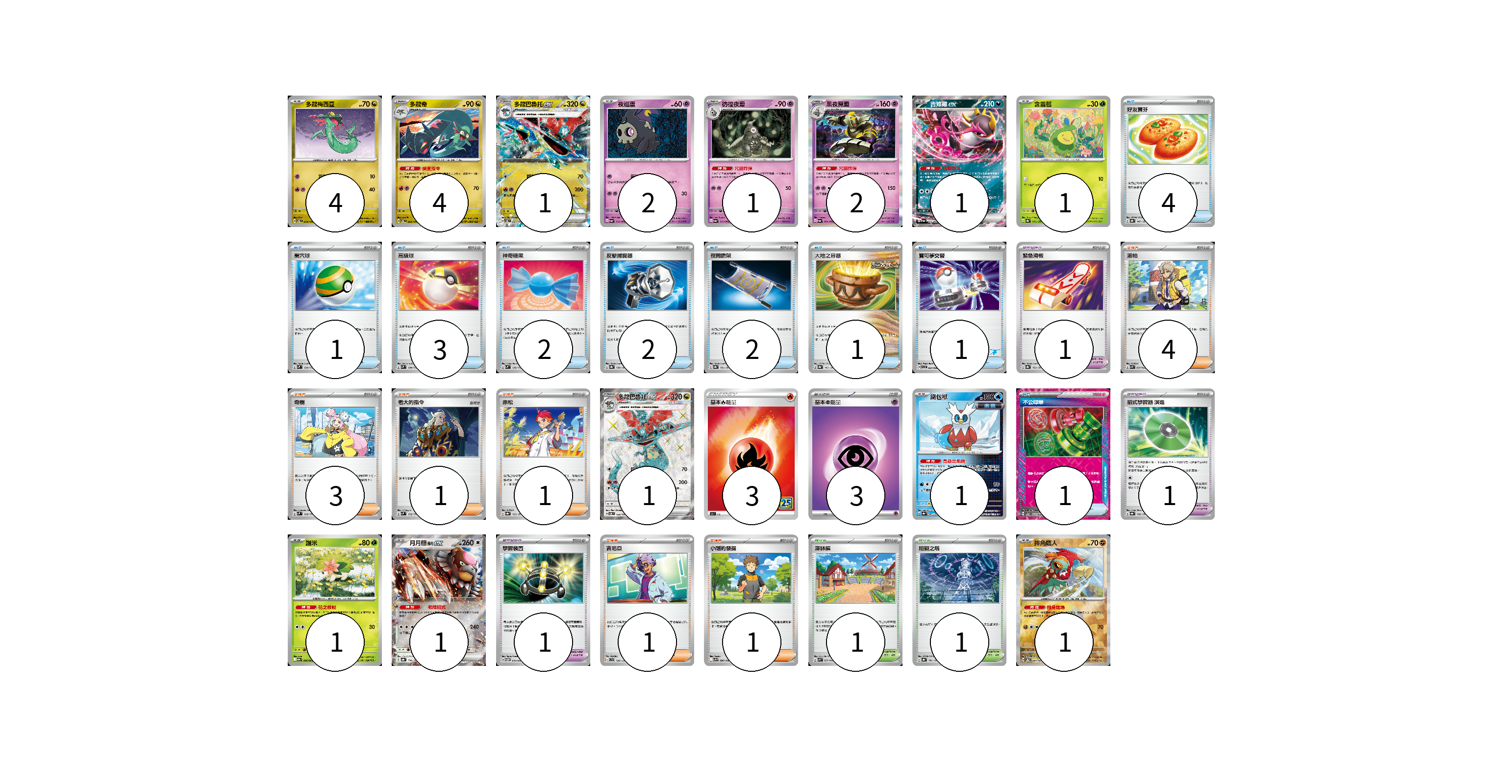 牌組構築方案 以此牌組為基礎新構築牌組 顯示卡面 顯示列表 寶可夢卡(21) 4 4 1 2 1 2 1 1 1 1 1 1 1 寶可夢道具(3) 1 1 1 物品卡(17) 4 1 3 2 2 2 1 1 1 支援者卡(11) 4 3 1 1 1 1 競技場卡(2) 1 1 能量卡(6) 3 3 寶可夢卡(21) 卡牌名稱 張數 卡牌名稱 張數 多龍梅西亞 SV6 079/101 04 多龍奇 SV6 080/101 04 多龍巴魯托ex SV6 081/101 01 夜巡靈 SV6a 018/064 02 彷徨夜靈 SV6a 019/064 01 黑夜魔靈 SV6a 020/064 02 吉雉雞ex SV6a 038/064 01 含羞苞 SV8a 001/187 01 多龍巴魯托ex SV6 120/101 01 鐵包袱 SV8a 047/187 01 謝米 SV9a 006/063 01 月月熊 赫月ex SV8a 134/187 01 摔角鷹人 SV8a 084/187 01 寶可夢道具(3) 卡牌名稱 張數 卡牌名稱 張數 緊急滑板 SV8a 153/187 01 招式學習器 演進 SV8a 160/187 01 學習裝置 SVTM 016/022 01 物品卡(17) 卡牌名稱 張數 卡牌名稱 張數 好友寶芬 SV8a 147/187 04 巢穴球 SVM 133/175 01 高級球 SVM 134/175 03 神奇糖果 SVM 135/175 02 反擊捕捉器 SV8a 139/187 02 夜間擔架 SV8a 151/187 02 大地之容器 SV8a 143/187 01 寶可夢交替 SVI 054/066 01 不公印章 SV5a 053/066 01 支援者卡(11) 卡牌名稱 張數 卡牌名稱 張數 派帕 SVK 035/042 04 奇樹 SVM 160/175 03 老大的指令 SVM 172/175 01 赤松 SV8a 163/187 01 吉尼亞 SVD 129/139 01 小剛的發掘 SV9 096/100 01 競技場卡(2) 卡牌名稱 張數 卡牌名稱 張數 深缽鎮 SVK 039/042 01 阻礙之塔 SV8a 181/187 01 能量卡(6) 卡牌名稱 張數 卡牌名稱 張數 基本火能量 S8a FIR 03 基本超能量 sv-p PSY 03 以此牌組為基礎新構築牌組 牌組編碼 aAlKzp-yWcELq-jsoIVb copy 列印牌組單 牌組編碼已複製 分享至SNS