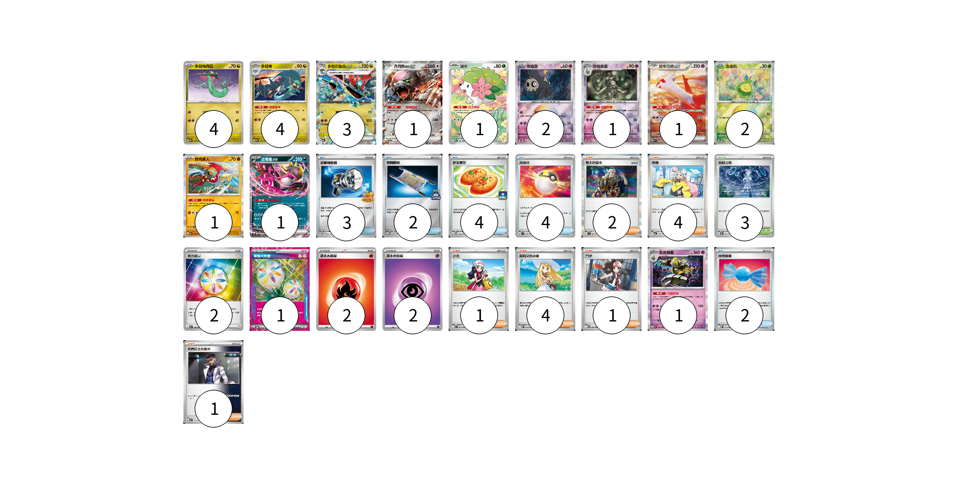 牌組構築方案 以此牌組為基礎新構築牌組 顯示卡面 顯示列表 寶可夢卡(22) 4 4 3 1 1 2 1 1 2 1 1 1 物品卡(15) 3 2 4 4 2 支援者卡(13) 2 4 1 4 1 1 競技場卡(3) 3 能量卡(7) 2 1 2 2 寶可夢卡(22) 卡牌名稱 張數 卡牌名稱 張數 多龍梅西亞 SV8a 118/187 04 多龍奇 SV8a 119/187 04 多龍巴魯托ex SV8a 120/187 03 月月熊 赫月 ex SV5a 052/066 01 謝米 SV9a 066/063 01 夜巡靈 SV8a 064/187 02 彷徨夜靈 SV8a 065/187 01 拉帝亞斯ex SV7a 087/064 01 含羞苞 SV8a 001/187 02 摔角鷹人 SV8a 084/187 01 吉雉雞ex SVOM 009/021 01 黑夜魔靈 SV6a 020/064 01 物品卡(15) 卡牌名稱 張數 卡牌名稱 張數 反擊捕捉器 SV-P 083/SV-P 03 夜間擔架 SV-P 204/SV-P 02 好友寶芬 SV-P 212/SV-P 04 高級球 SV1V 070/078 04 神奇糖果 MBG 013/022 02 支援者卡(13) 卡牌名稱 張數 卡牌名稱 張數 老大的指令 SV1a 069/073 02 奇樹 SV4a 174/190 04 小光 M2 077/080 01 莉莉艾的決意 MBD 021/022 04 鬥子 SV11W 085/086 01 弗圖博士的劇本 SV8a 175/187 01 競技場卡(3) 卡牌名稱 張數 卡牌名稱 張數 阻礙之塔 SV8a 181/187 03 能量卡(7) 卡牌名稱 張數 卡牌名稱 張數 夜光能量 SV4a 190/190 02 新衝天能量 SV5K 071/071 01 基本【火】能量 SVEL FIR 02 基本【超】能量 SVEM PSY 02 以此牌組為基礎新構築牌組 牌組編碼 aGGvSi-IKlmJN-SJJuqj copy 列印牌組單 牌組編碼已複製 分享至SNS
