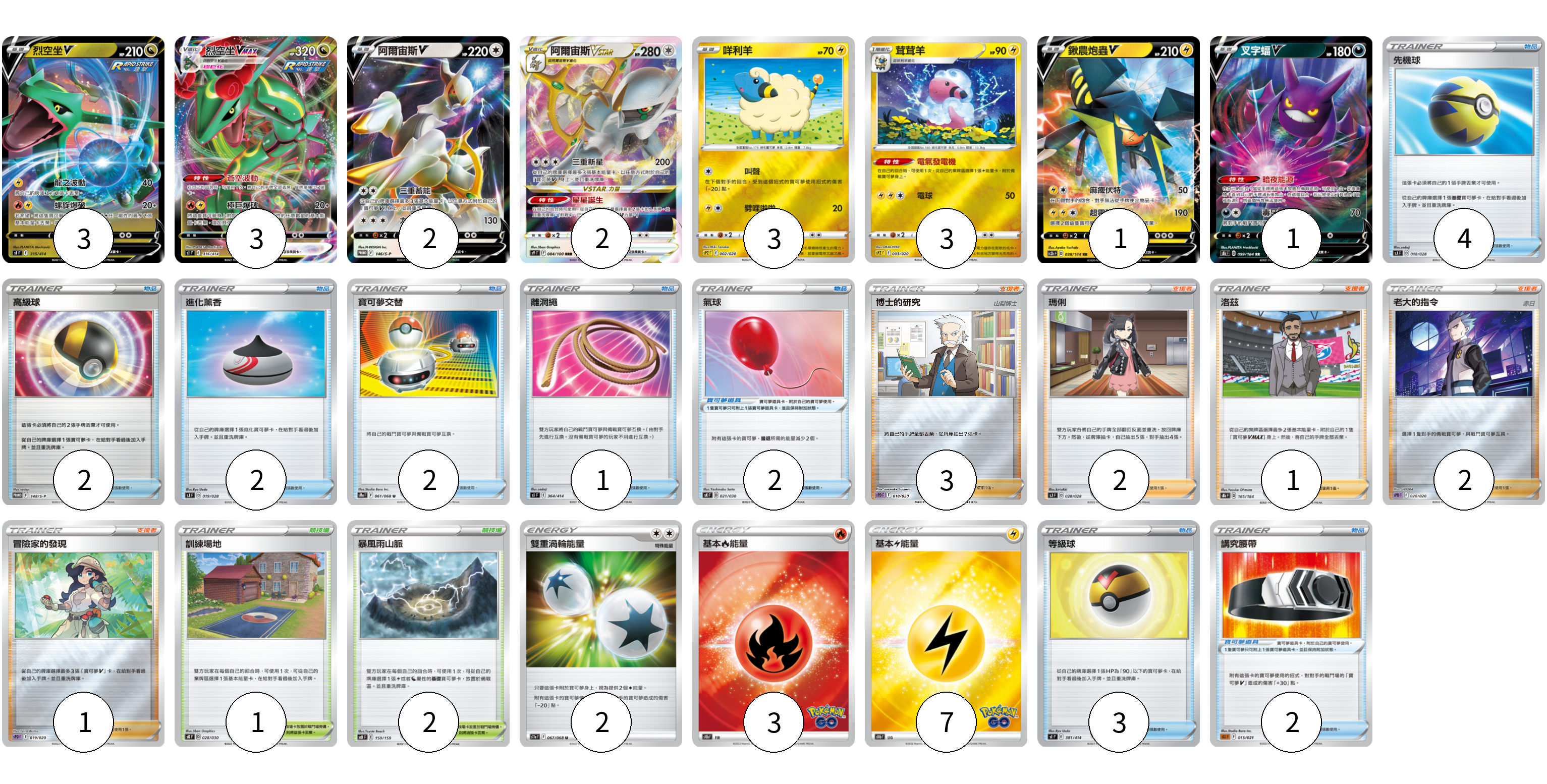 卡牌名稱 張數