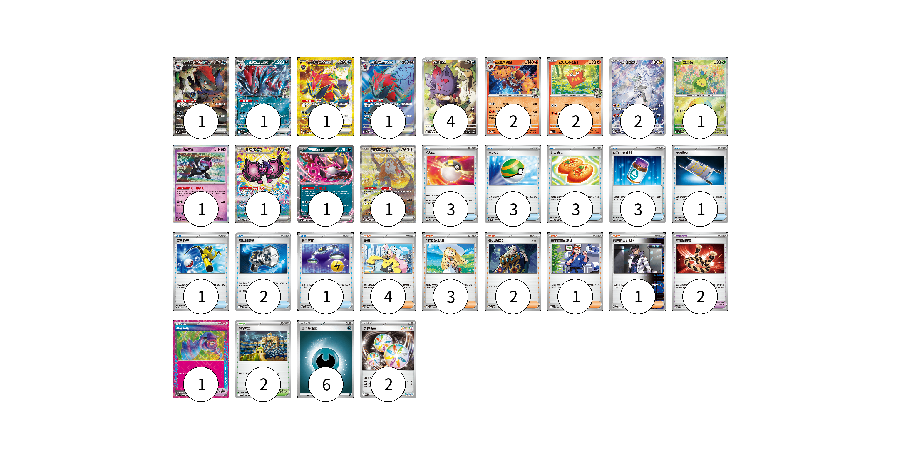 牌組構築方案 以此牌組為基礎新構築牌組 顯示卡面 顯示列表 寶可夢卡(19) 1 1 1 1 4 2 2 2 1 1 1 1 1 寶可夢道具(3) 2 1 物品卡(17) 3 3 3 3 1 1 2 1 支援者卡(11) 4 3 2 1 1 競技場卡(2) 2 能量卡(8) 6 2 寶可夢卡(19) 卡牌名稱 張數 卡牌名稱 張數 N的索羅亞克ex SV9 127/100 01 N的索羅亞克ex SV9 061/100 01 N的索羅亞克ex SV9 131/100 01 N的索羅亞克ex SV9 117/100 01 N的索羅亞 SV9 108/100 04 N的達摩狒狒 SV9 016/100 02 N的火紅不倒翁 SV9 015/100 02 N的萊希拉姆 SV9 109/100 02 含羞苞 SV8a 001/187 01 願增猿 SV8a 075/187 01 桃歹郎ex SV8a 219/187 01 吉雉雞ex SVOD 004/020 01 月月熊 赫月 ex SV5a 091/066 01 寶可夢道具(3) 卡牌名稱 張數 卡牌名稱 張數 不服輸頭帶 SVTL 016/021 02 英雄斗篷 SV5M 064/071 01 物品卡(17) 卡牌名稱 張數 卡牌名稱 張數 高級球 MBD 014/022 03 巢穴球 SVM 133/175 03 好友寶芬 MBD 013/022 03 N的PP提升劑 SV9 089/100 03 夜間擔架 MBD 016/022 01 厲害釣竿 SVOD 010/020 01 反擊捕捉器 SV8a 139/187 02 能量轉移 SVM 127/175 01 支援者卡(11) 卡牌名稱 張數 卡牌名稱 張數 奇樹 SVOD 016/020 04 莉莉艾的決意 MBD 021/022 03 老大的指令 MBD 020/022 02 空手道王的演練 SVM 150/175 01 弗圖博士的劇本 SV8a 175/187 01 競技場卡(2) 卡牌名稱 張數 卡牌名稱 張數 N的城堡 SV9 097/100 02 能量卡(8) 卡牌名稱 張數 卡牌名稱 張數 基本【惡】能量 MBG DAR 06 反轉能量 SV4a 189/190 02 以此牌組為基礎新構築牌組 牌組編碼 bPivvH-nBycfD-zxuqSA copy 列印牌組單 牌組編碼已複製 分享至SNS
