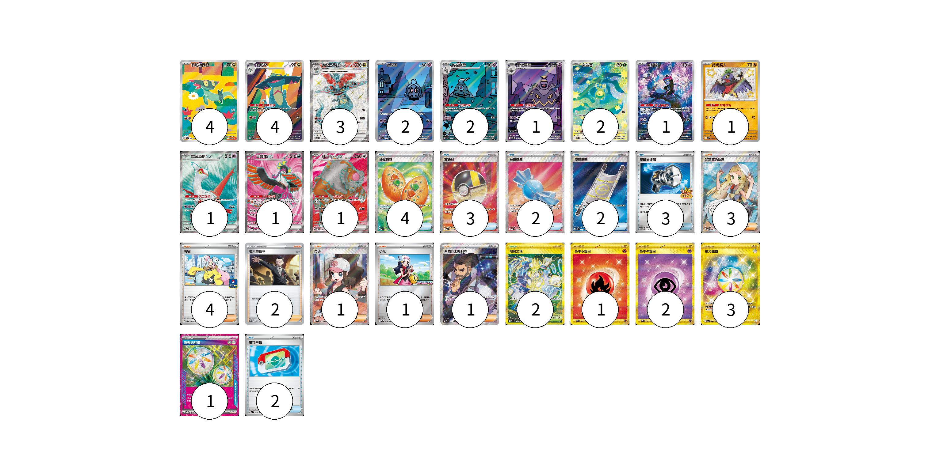 牌組構築方案 以此牌組為基礎新構築牌組 顯示卡面 顯示列表 寶可夢卡(23) 4 4 3 2 2 1 2 1 1 1 1 1 物品卡(16) 4 3 2 2 3 2 支援者卡(12) 3 4 2 1 1 1 競技場卡(2) 2 能量卡(7) 1 2 3 1 寶可夢卡(23) 卡牌名稱 張數 卡牌名稱 張數 多龍梅西亞 M2a 211/193 04 多龍奇 M2a 212/193 04 多龍巴魯托ex SV6 120/101 03 夜巡靈 SV6a 068/064 02 彷徨夜靈 SV6a 069/064 02 黑夜魔靈 SV6a 070/064 01 含羞苞 M2a 196/193 02 願增猿 SV6 107/101 01 摔角鷹人 SV4a 282/190 01 拉帝亞斯ex SV7a 078/064 01 吉雉雞ex SV6a 081/064 01 月月熊 赫月 ex SV5a 084/066 01 物品卡(16) 卡牌名稱 張數 卡牌名稱 張數 好友寶芬 M1S 081/063 04 高級球 M2a 216/193 03 神奇糖果 M1S 082/063 02 夜間擔架 M1L 083/063 02 反擊捕捉器 SV-P 083/SV-P 03 寶可平板 MC 662/742 02 支援者卡(12) 卡牌名稱 張數 卡牌名稱 張數 莉莉艾的決意 M1L 086/063 03 奇樹 SV-P 106/SV-P 04 老大的指令(坂木) SC1D 161/164 02 鬥子 SV11W 166/086 01 小光 M-P 028/M-P 01 弗圖博士的劇本 SV4M 086/066 01 競技場卡(2) 卡牌名稱 張數 卡牌名稱 張數 阻礙之塔 SV10 132/098 02 能量卡(7) 卡牌名稱 張數 卡牌名稱 張數 基本【火】能量 SV3 141/108 01 基本【超】能量 SV2a 210/165 02 夜光能量 SV5a 096/066 03 新衝天能量 SV5K 071/071 01 以此牌組為基礎新構築牌組 牌組編碼 biLlxC-zWvEZK-BClmtD copy 列印牌組單 牌組編碼已複製 分享至SNS