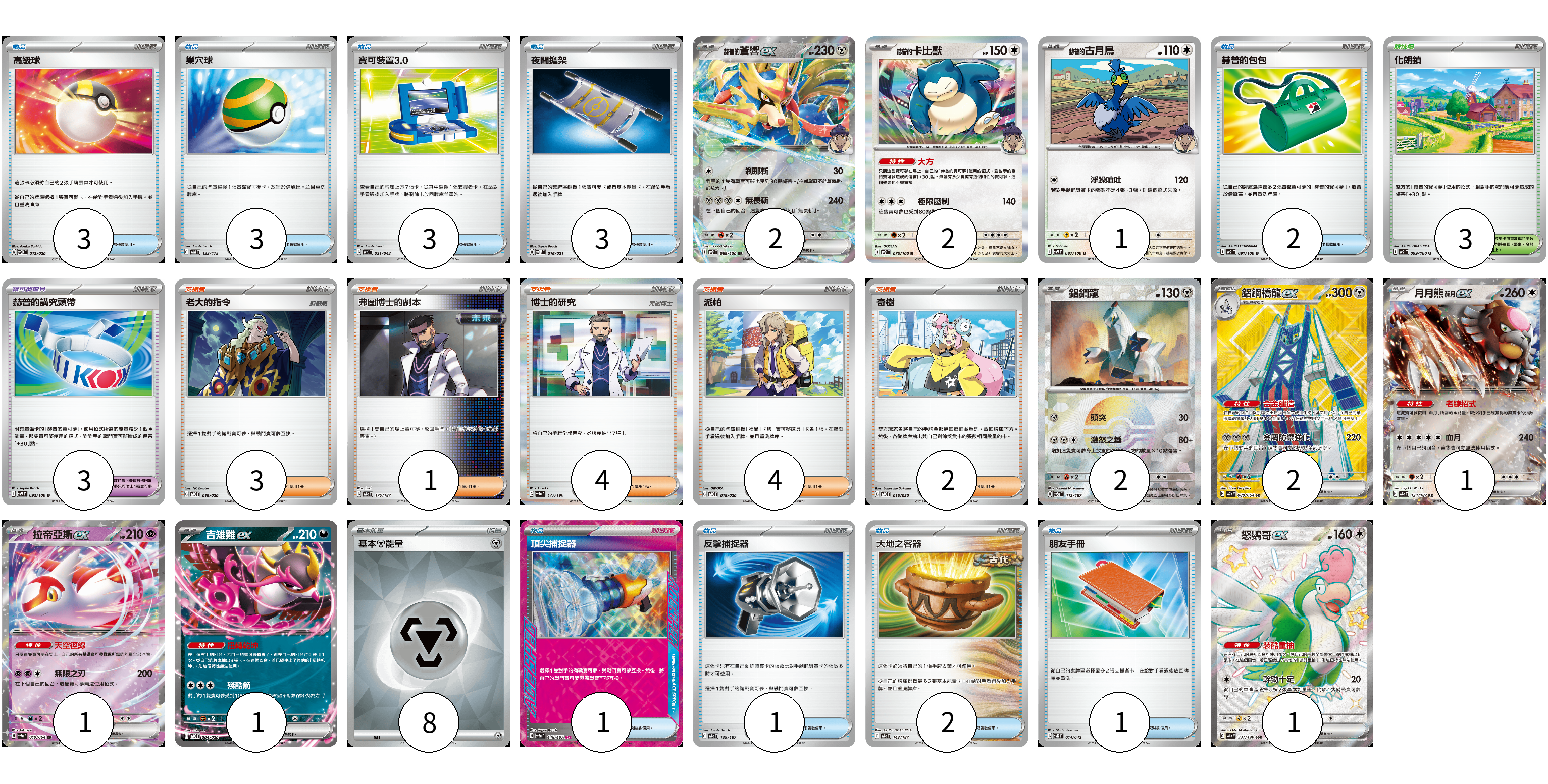 牌組構築方案 以此牌組為基礎新構築牌組 顯示卡面 顯示列表 寶可夢卡(13) 2 2 1 2 2 1 1 1 1 寶可夢道具(3) 3 物品卡(19) 3 3 3 3 2 1 1 2 1 支援者卡(14) 3 1 4 4 2 競技場卡(3) 3 能量卡(8) 8 寶可夢卡(13) 卡牌名稱 張數 卡牌名稱 張數 赫普的蒼響ex SV9 069/100 02 赫普的卡比獸 SV9 075/100 02 赫普的古月鳥 SV9 087/100 01 鋁鋼龍 SV8a 112/187 02 鋁鋼橋龍ex SV7a 080/064 02 月月熊 赫月ex SV8a 134/187 01 拉帝亞斯ex SV7a 019/064 01 吉雉雞ex SVOD 004/020 01 怒鸚哥ex SV4a 337/190 01 寶可夢道具(3) 卡牌名稱 張數 卡牌名稱 張數 赫普的講究頭帶 SV9 092/100 03 物品卡(19) 卡牌名稱 張數 卡牌名稱 張數 高級球 SVOD 012/020 03 巢穴球 SVM 133/175 03 寶可裝置3.0 SVK 021/042 03 夜間擔架 SVOM 016/021 03 赫普的包包 SV9 091/100 02 頂尖捕捉器 SV8a 148/187 01 反擊捕捉器 SV8a 139/187 01 大地之容器 SV8a 143/187 02 朋友手冊 SVK 014/042 01 支援者卡(14) 卡牌名稱 張數 卡牌名稱 張數 老大的指令 SVOD 019/020 03 弗圖博士的劇本 SV8a 175/187 01 博士的研究 SV4a 177/190 04 派帕 SVOD 018/020 04 奇樹 SVOD 016/020 02 競技場卡(3) 卡牌名稱 張數 卡牌名稱 張數 化朗鎮 SV9 099/100 03 能量卡(8) 卡牌名稱 張數 卡牌名稱 張數 基本【鋼】能量 SVOD MET 08 以此牌組為基礎新構築牌組 牌組編碼 bsePxh-ybZKEr-qLYlKy copy 列印牌組單 牌組編碼已複製 分享至SNS