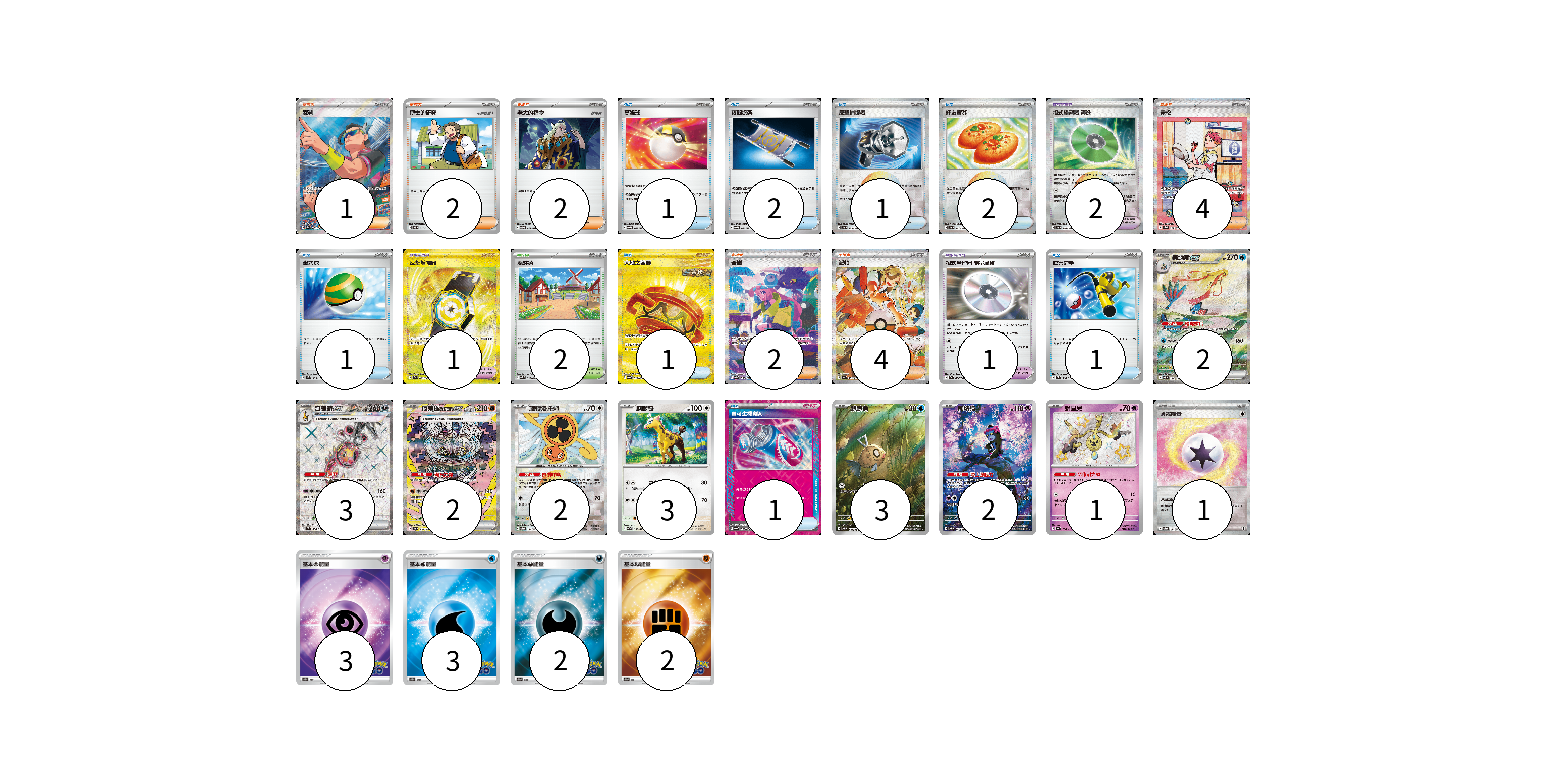 牌組構築方案 以此牌組為基礎新構築牌組 顯示卡面 顯示列表 寶可夢卡(18) 2 3 2 2 3 3 2 1 寶可夢道具(4) 2 1 1 物品卡(10) 1 2 1 2 1 1 1 1 支援者卡(15) 1 2 2 4 2 4 競技場卡(2) 2 能量卡(11) 1 3 3 2 2 寶可夢卡(18) 卡牌名稱 張數 卡牌名稱 張數 美納斯ex SV8 131/106 02 奇麒麟ex SV5M 088/071 03 厄鬼椪 礎石面具ex SV8a 216/187 02 旋轉洛托姆 SV8a 131/187 02 麒麟奇 SV2D 059/071 03 醜醜魚 SV8 110/106 03 願增猿 SV6 107/101 02 鑰圈兒 SV4a 264/190 01 寶可夢道具(4) 卡牌名稱 張數 卡牌名稱 張數 招式學習器 演進 SV8a 160/187 02 反擊增幅器 SV7a 093/064 01 招式學習器 能量渦輪 SV3a 056/062 01 物品卡(10) 卡牌名稱 張數 卡牌名稱 張數 高級球 SVOM 013/021 01 夜間擔架 SVOM 016/021 02 反擊捕捉器 SV8a 139/187 01 好友寶芬 SV8a 147/187 02 巢穴球 SVM 133/175 01 大地之容器 SV6a 093/064 01 厲害釣竿 SV2P 066/071 01 寶可生機劑A SV6a 055/064 01 支援者卡(15) 卡牌名稱 張數 卡牌名稱 張數 裁判 SV9a 083/063 01 博士的研究 SVOD 017/020 02 老大的指令 SVOD 019/020 02 赤松 SV8a 227/187 04 奇樹 SV4a 350/190 02 派帕 SV4a 353/190 04 競技場卡(2) 卡牌名稱 張數 卡牌名稱 張數 深缽鎮 SVK 039/042 02 能量卡(11) 卡牌名稱 張數 卡牌名稱 張數 薄霧能量 SV8a 186/187 01 基本超能量 S10b PSY 03 基本水能量 S10b WAT 03 基本惡能量 S10b DAR 02 基本鬥能量 S10b FIG 02 以此牌組為基礎新構築牌組 牌組編碼 cAptkO-pdUBAj-CRVxuH copy 列印牌組單 牌組編碼已複製 分享至SNS