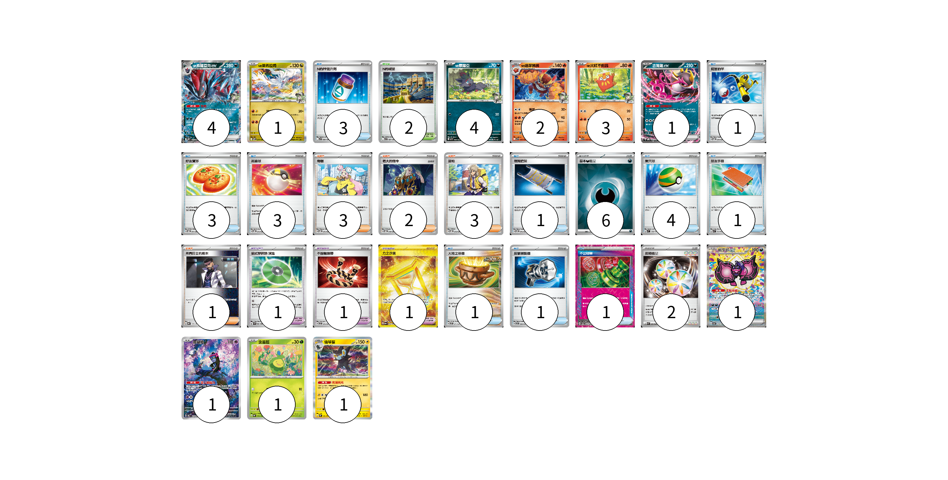 牌組構築方案 以此牌組為基礎新構築牌組 顯示卡面 顯示列表 寶可夢卡(19) 4 1 4 2 3 1 1 1 1 1 寶可夢道具(3) 1 1 1 物品卡(19) 3 1 3 3 1 4 1 1 1 1 支援者卡(9) 3 2 3 1 競技場卡(2) 2 能量卡(8) 6 2 寶可夢卡(19) 卡牌名稱 張數 卡牌名稱 張數 N的索羅亞克ex SV9 061/100 04 N的萊希拉姆 SV9 074/100 01 N的索羅亞 SV9 060/100 04 N的達摩狒狒 SV9 016/100 02 N的火紅不倒翁 SV9 015/100 03 吉雉雞ex SVOD 004/020 01 桃歹郎ex SV8a 219/187 01 願增猿 SV6 107/101 01 含羞苞 SV8a 001/187 01 倫琴貓 SV2D 021/071 01 寶可夢道具(3) 卡牌名稱 張數 卡牌名稱 張數 招式學習器 演進 SV4M 063/066 01 不服輸頭帶 SVTL 016/021 01 力之沙漏 SV6a 094/064 01 物品卡(19) 卡牌名稱 張數 卡牌名稱 張數 N的PP提升劑 SV9 089/100 03 厲害釣竿 SVOD 010/020 01 好友寶芬 SVOD 011/020 03 高級球 SVOD 012/020 03 夜間擔架 SVOM 016/021 01 巢穴球 SVM 133/175 04 朋友手冊 SVK 014/042 01 大地之容器 SVTS 011/022 01 反擊捕捉器 SVTS 009/022 01 不公印章 SV5a 053/066 01 支援者卡(9) 卡牌名稱 張數 卡牌名稱 張數 奇樹 SVOD 016/020 03 老大的指令 SVOD 019/020 02 派帕 SVOD 018/020 03 弗圖博士的劇本 SV8a 175/187 01 競技場卡(2) 卡牌名稱 張數 卡牌名稱 張數 N的城堡 SV9 097/100 02 能量卡(8) 卡牌名稱 張數 卡牌名稱 張數 基本【惡】能量 SVOM DAR 06 反轉能量 SVK 041/042 02 以此牌組為基礎新構築牌組 牌組編碼 czcTmO-dcoBfw-qDZzuA copy 列印牌組單 牌組編碼已複製 分享至SNS