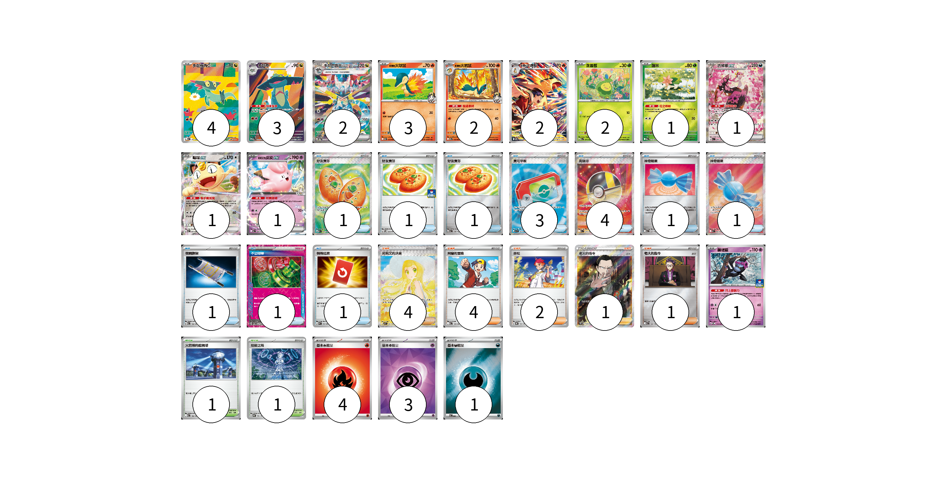 牌組構築方案 以此牌組為基礎新構築牌組 顯示卡面 顯示列表 寶可夢卡(23) 4 3 2 3 2 2 2 1 1 1 1 1 物品卡(15) 1 1 1 3 4 1 1 1 1 1 支援者卡(12) 4 4 2 1 1 競技場卡(2) 1 1 能量卡(8) 4 3 1 寶可夢卡(23) 卡牌名稱 張數 卡牌名稱 張數 多龍梅西亞 M2a 211/193 04 多龍奇 M2a 212/193 03 多龍巴魯托ex SV8a 221/187 02 <阿響的>火球鼠 SV9a 015/063 03 <阿響的>火岩鼠 SV9a 016/063 02 <阿響的>火爆獸 SV9a 070/063 02 含羞苞 M2a 011/193 02 謝米 M2a 012/193 01 吉雉雞ex M2a 244/193 01 喵喵ex M3 061/080 01 <莉莉艾的>皮皮ex MC 287/742 01 願增猿 M-P 014/M-P 01 物品卡(15) 卡牌名稱 張數 卡牌名稱 張數 好友寶芬 M1S 081/063 01 好友寶芬 SV-P 212/SV-P 01 好友寶芬 MC 648/742 01 寶可平板 M3 103/080 03 高級球 M2a 216/193 04 神奇糖果 MC 655/742 01 神奇糖果 M1S 082/063 01 夜間擔架 M2a 159/193 01 不公印章 SV5a 053/066 01 特殊紅牌 M4 072/083 01 支援者卡(12) 卡牌名稱 張數 卡牌名稱 張數 莉莉艾的決意 M1L 091/063 04 阿響的冒險 M2a 174/193 04 赤松 SV8a 163/187 02 老大的指令(坂木) SC1b 170/153 01 老大的指令 MC 724/742 01 競技場卡(2) 卡牌名稱 張數 卡牌名稱 張數 火箭隊的監視塔 M2a 189/193 01 阻礙之塔 SV8a 181/187 01 能量卡(8) 卡牌名稱 張數 卡牌名稱 張數 基本【火】能量 MC FIR 04 基本【超】能量 SVOD PSY 03 基本【惡】能量 MC DAR 01 以此牌組為基礎新構築牌組 牌組編碼 dDtGKJ-iVjBFf-mcsvPV copy 列印牌組單 牌組編碼已複製 分享至SNS