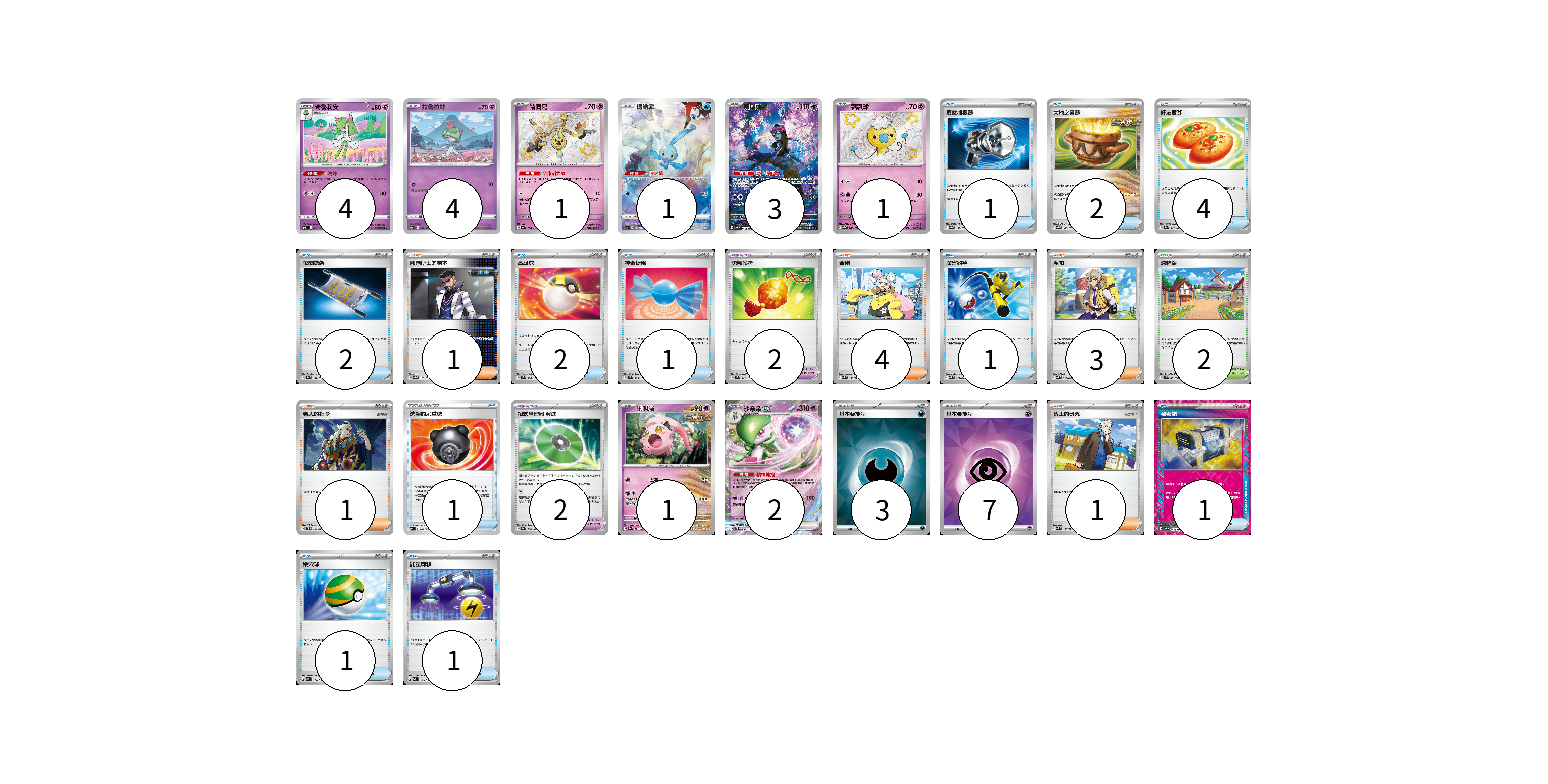 牌組構築方案 以此牌組為基礎新構築牌組 顯示卡面 顯示列表 寶可夢卡(17) 4 4 1 1 3 1 1 2 寶可夢道具(4) 2 2 物品卡(17) 1 2 4 2 2 1 1 1 1 1 1 支援者卡(10) 1 4 3 1 1 競技場卡(2) 2 能量卡(10) 3 7 寶可夢卡(17) 卡牌名稱 張數 卡牌名稱 張數 奇魯莉安 SVTS 003/022 04 拉魯拉絲 S9a 032/067 04 鑰圈兒 SV4a 264/190 01 瑪納霏 S12a 178/172 01 願增猿 SV6 107/101 03 飄飄球 SV4a 260/190 01 吼叫尾 SV8a 071/187 01 沙奈朵ex SVTS 004/022 02 寶可夢道具(4) 卡牌名稱 張數 卡牌名稱 張數 勇氣護符 SVM 142/175 02 招式學習器 演進 SV8a 160/187 02 物品卡(17) 卡牌名稱 張數 卡牌名稱 張數 反擊捕捉器 SV8a 139/187 01 大地之容器 SV8a 143/187 02 好友寶芬 SV8a 147/187 04 夜間擔架 SV8a 151/187 02 高級球 SVM 134/175 02 神奇糖果 SVM 135/175 01 厲害釣竿 SVK 011/042 01 洗翠的沉重球 SVF 019/038 01 秘密箱 SV6 092/101 01 巢穴球 SVM 133/175 01 能量轉移 SVM 127/175 01 支援者卡(10) 卡牌名稱 張數 卡牌名稱 張數 弗圖博士的劇本 SV8a 175/187 01 奇樹 SVM 160/175 04 派帕 SVK 035/042 03 老大的指令 SVTL 021/021 01 博士的研究 SVM 165/175 01 競技場卡(2) 卡牌名稱 張數 卡牌名稱 張數 深缽鎮 SVK 039/042 02 能量卡(10) 卡牌名稱 張數 卡牌名稱 張數 基本【惡】能量 SVK DAR 03 基本【超】能量 SVK PSY 07 以此牌組為基礎新構築牌組 牌組編碼 ePwJHf-avAwMD-leilZF copy 列印牌組單 牌組編碼已複製 分享至SNS