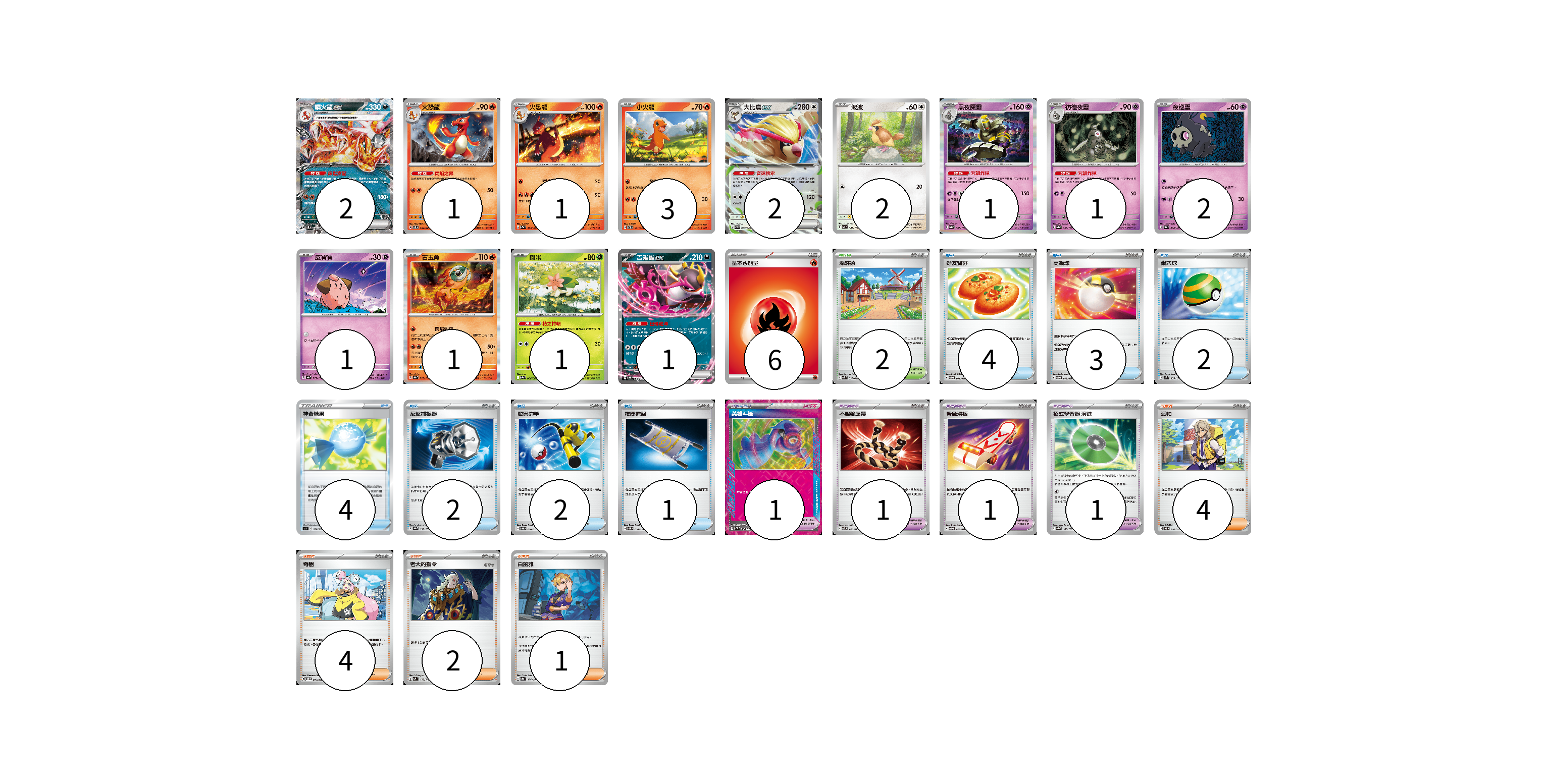 牌組構築方案 以此牌組為基礎新構築牌組 顯示卡面 顯示列表 寶可夢卡(19) 2 1 1 3 2 2 1 1 2 1 1 1 1 寶可夢道具(4) 1 1 1 1 物品卡(18) 4 3 2 4 2 2 1 支援者卡(11) 4 4 2 1 競技場卡(2) 2 能量卡(6) 6 寶可夢卡(19) 卡牌名稱 張數 卡牌名稱 張數 噴火龍ex SVTL 006/021 02 火恐龍 SVTL 002/021 01 火恐龍 SV2a 005/165 01 小火龍 SVTL 001/021 03 大比鳥ex SVK 005/042 02 波波 SV3 087/108 02 黑夜魔靈 SV8a 066/187 01 彷徨夜靈 SV8a 065/187 01 夜巡靈 SV8a 064/187 02 皮寶寶 SV4a 077/190 01 古玉魚 SV8a 025/187 01 謝米 SV9a 006/063 01 吉雉雞ex SVOD 004/020 01 寶可夢道具(4) 卡牌名稱 張數 卡牌名稱 張數 英雄斗篷 SV5M 064/071 01 不服輸頭帶 SVTL 016/021 01 緊急滑板 SVOD 015/020 01 招式學習器 演進 SV8a 160/187 01 物品卡(18) 卡牌名稱 張數 卡牌名稱 張數 好友寶芬 SVOD 011/020 04 高級球 SVOD 012/020 03 巢穴球 SVM 133/175 02 神奇糖果 SI 376/414 04 反擊捕捉器 SV8a 139/187 02 厲害釣竿 SVOD 010/020 02 夜間擔架 SVOM 016/021 01 支援者卡(11) 卡牌名稱 張數 卡牌名稱 張數 派帕 SVOD 018/020 04 奇樹 SVOD 016/020 04 老大的指令 SVM 172/175 02 白蕾雅 SV8a 176/187 01 競技場卡(2) 卡牌名稱 張數 卡牌名稱 張數 深缽鎮 SVK 039/042 02 能量卡(6) 卡牌名稱 張數 卡牌名稱 張數 基本火能量 sv-p FIR 06 以此牌組為基礎新構築牌組 牌組編碼 ekffnL-ylnNFy-PbRxIz copy 列印牌組單 牌組編碼已複製 分享至SNS