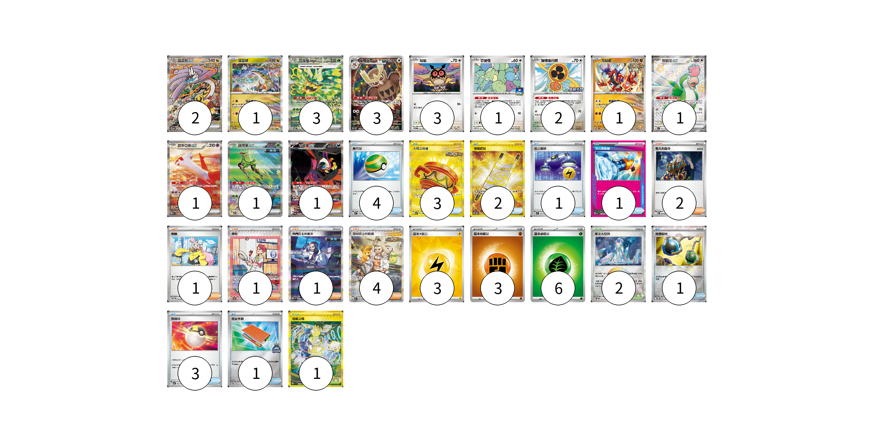 牌組構築方案 以此牌組為基礎新構築牌組 顯示卡面 顯示列表 寶可夢卡(20) 2 1 3 3 3 1 2 1 1 1 1 1 物品卡(16) 4 3 2 1 1 1 3 1 支援者卡(9) 2 1 1 1 4 競技場卡(3) 2 1 能量卡(12) 3 3 6 寶可夢卡(20) 卡牌名稱 張數 卡牌名稱 張數 猛雷鼓ex SV8a 222/187 02 猛雷鼓 SV7 075/102 01 厄鬼椪 碧草面具ex SV6 125/101 03 貓頭夜鷹 SV7 114/102 03 咕咕 SV7 076/102 03 百變怪 SV-P 111/SV-P 01 旋轉洛托姆 SV-P 146/SV-P 02 故勒頓 SV8 069/106 01 怒鸚哥ex SV4a 337/190 01 拉帝亞斯ex SV7a 087/064 01 鐵斑葉ex SV5M 093/071 01 吉雉雞ex SV6a 089/064 01 物品卡(16) 卡牌名稱 張數 卡牌名稱 張數 巢穴球 SVM 133/175 04 大地之容器 SV6a 093/064 03 夜間擔架 SV8 137/106 02 能量轉移 SVM 127/175 01 頂尖捕捉器 MBG 014/022 01 能量回收 SV11W 079/086 01 高級球 SV4a 161/190 03 朋友手冊 SV-P 182/SV-P 01 支援者卡(9) 卡牌名稱 張數 卡牌名稱 張數 老大的指令 MBD 020/022 02 奇樹 SVOD 016/020 01 赤松 SV8a 227/187 01 弗圖博士的劇本 SV4M 091/066 01 奧琳博士的氣魄 SV4K 091/066 04 競技場卡(3) 卡牌名稱 張數 卡牌名稱 張數 零之大空洞 SV8a 182/187 02 阻礙之塔 SV10 132/098 01 能量卡(12) 卡牌名稱 張數 卡牌名稱 張數 基本【雷】能量 SVQP LIG 03 基本【鬥】能量 M-P FIG 03 基本【草】能量 M-P GRA 06 以此牌組為基礎新構築牌組 牌組編碼 fLkXqE-seoXGL-rZtvLb copy 列印牌組單 牌組編碼已複製 分享至SNS