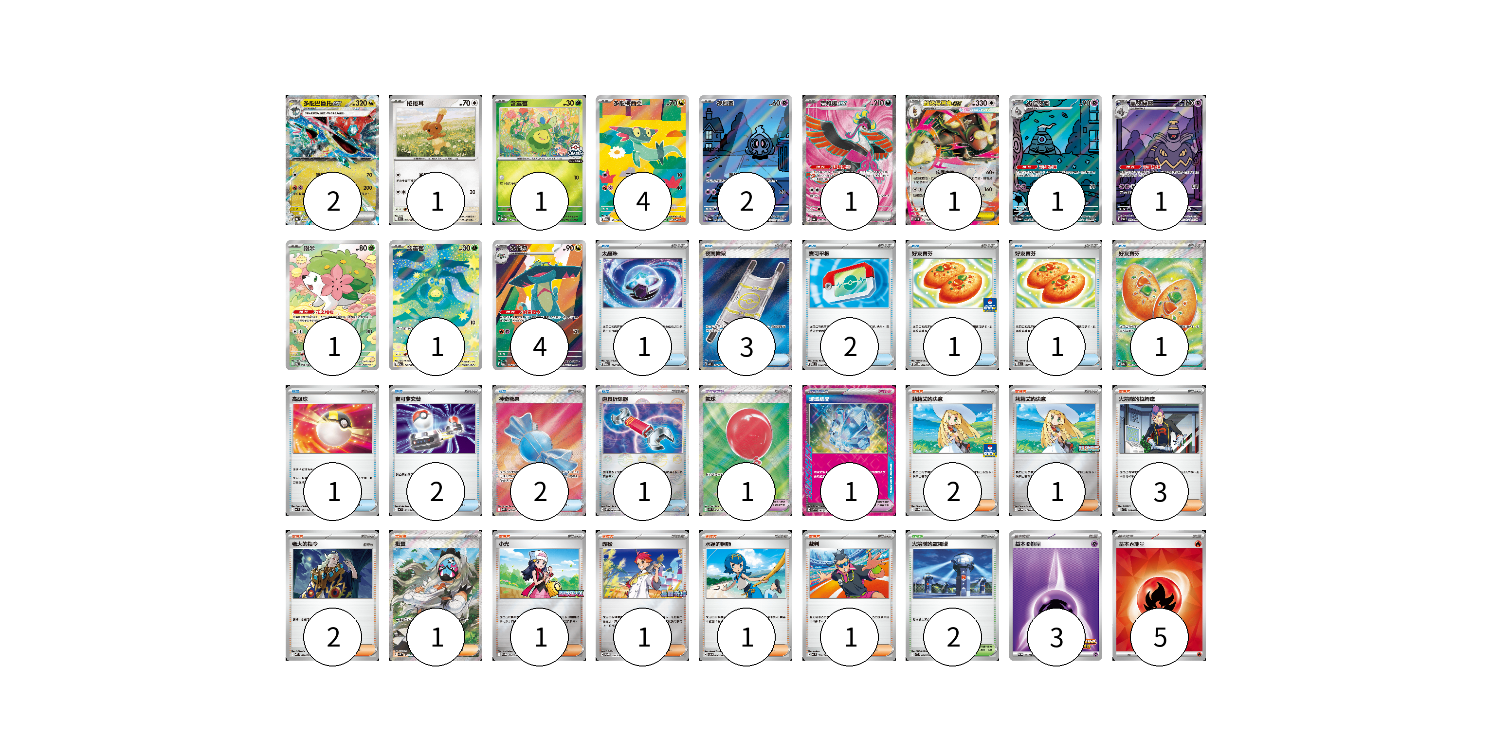 牌組構築方案 以此牌組為基礎新構築牌組 顯示卡面 顯示列表 寶可夢卡(20) 2 1 1 4 2 1 1 1 1 1 1 4 寶可夢道具(2) 1 1 物品卡(15) 1 3 2 1 1 1 1 2 2 1 支援者卡(13) 2 1 3 2 1 1 1 1 1 競技場卡(2) 2 能量卡(8) 3 5 寶可夢卡(20) 卡牌名稱 張數 卡牌名稱 張數 多龍巴魯托ex SV8a 120/187 02 捲捲耳 M2 071/080 01 含羞苞 M-P 037/M-P 01 多龍梅西亞 M2a 211/193 04 夜巡靈 SV6a 068/064 02 吉雉雞ex SV6a 081/064 01 超級長耳兔ex M2 072/080 01 彷徨夜靈 SV6a 069/064 01 黑夜魔靈 SV6a 070/064 01 謝米 SV9a 066/063 01 含羞苞 M2a 196/193 01 多龍奇 M2a 212/193 04 寶可夢道具(2) 卡牌名稱 張數 卡牌名稱 張數 氣球 M1L 084/063 01 璀璨結晶 SV7 094/102 01 物品卡(15) 卡牌名稱 張數 卡牌名稱 張數 太晶珠 M2a 152/193 01 夜間擔架 M1L 083/063 03 寶可平板 MC 662/742 02 好友寶芬 SV-P 212/SV-P 01 好友寶芬 MC 648/742 01 好友寶芬 M1S 081/063 01 高級球 MC 651/742 01 寶可夢交替 MC 663/742 02 神奇糖果 M1S 082/063 02 道具拆除器 SV11W 080/086 01 支援者卡(13) 卡牌名稱 張數 卡牌名稱 張數 莉莉艾的決意 M-P 018/M-P 02 莉莉艾的決意 M-P 011/M-P 01 火箭隊的拉姆達 SV10 094/098 03 老大的指令 MBD 020/022 02 枇琶 SV5K 091/071 01 小光 M-P 028/M-P 01 赤松 SV-P 150/SV-P 01 水蓮的照顧 SV5a 064/066 01 裁判 MC 711/742 01 競技場卡(2) 卡牌名稱 張數 卡牌名稱 張數 火箭隊的監視塔 SV10 096/098 02 能量卡(8) 卡牌名稱 張數 卡牌名稱 張數 基本【超】能量 SV-P 261/SV-P 03 基本【火】能量 SVQL FIR 05 以此牌組為基礎新構築牌組 牌組編碼 fWMUpk-eHitbZ-MZGQxD copy 列印牌組單 牌組編碼已複製 分享至SNS
