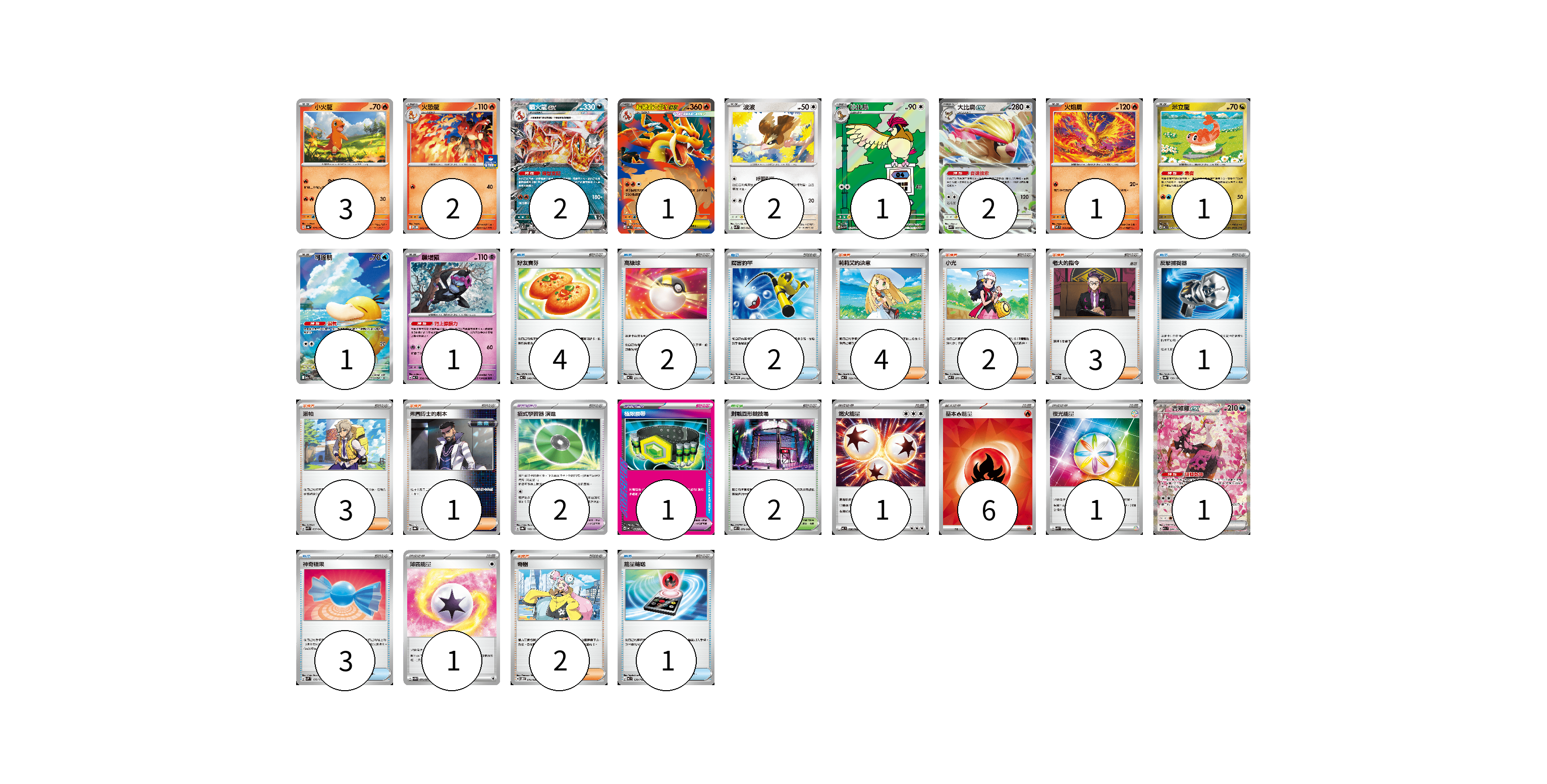 牌組構築方案 以此牌組為基礎新構築牌組 顯示卡面 顯示列表 寶可夢卡(18) 3 2 2 1 2 1 2 1 1 1 1 1 寶可夢道具(3) 2 1 物品卡(13) 4 2 2 1 3 1 支援者卡(15) 4 2 3 3 1 2 競技場卡(2) 2 能量卡(9) 1 6 1 1 寶可夢卡(18) 卡牌名稱 張數 卡牌名稱 張數 小火龍 SV4a 025/190 03 火恐龍 M-P 042/M-P 02 噴火龍ex SVTL 006/021 02 超級噴火龍Yex MC 085/742 01 波波 SVK 003/042 02 比比鳥 SV3 119/108 01 大比鳥ex SVK 005/042 02 火焰鳥 M2 014/080 01 米立龍 MC 549/742 01 可達鴨 M2a 199/193 01 願增猿 MC 358/742 01 吉雉雞ex M2a 244/193 01 寶可夢道具(3) 卡牌名稱 張數 卡牌名稱 張數 招式學習器 演進 SV8a 160/187 02 極限腰帶 MC 691/742 01 物品卡(13) 卡牌名稱 張數 卡牌名稱 張數 好友寶芬 MC 648/742 04 高級球 MC 651/742 02 厲害釣竿 SVOM 011/021 02 反擊捕捉器 SV8a 139/187 01 神奇糖果 SVM 135/175 03 能量輸送 MC 639/742 01 支援者卡(15) 卡牌名稱 張數 卡牌名稱 張數 莉莉艾的決意 MC 729/742 04 小光 M2 077/080 02 老大的指令 MC 724/742 03 派帕 SVK 035/042 03 弗圖博士的劇本 SV8a 175/187 01 奇樹 SVOD 016/020 02 競技場卡(2) 卡牌名稱 張數 卡牌名稱 張數 對戰圓形競技場 M2 079/080 02 能量卡(9) 卡牌名稱 張數 卡牌名稱 張數 燃火能量 MC 736/742 01 基本【火】能量 SVM FIR 06 夜光能量 SVK 042/042 01 薄霧能量 SV5M 071/071 01 以此牌組為基礎新構築牌組 牌組編碼 fkHpKA-xkssSS-sNakIe copy 列印牌組單 牌組編碼已複製 分享至SNS