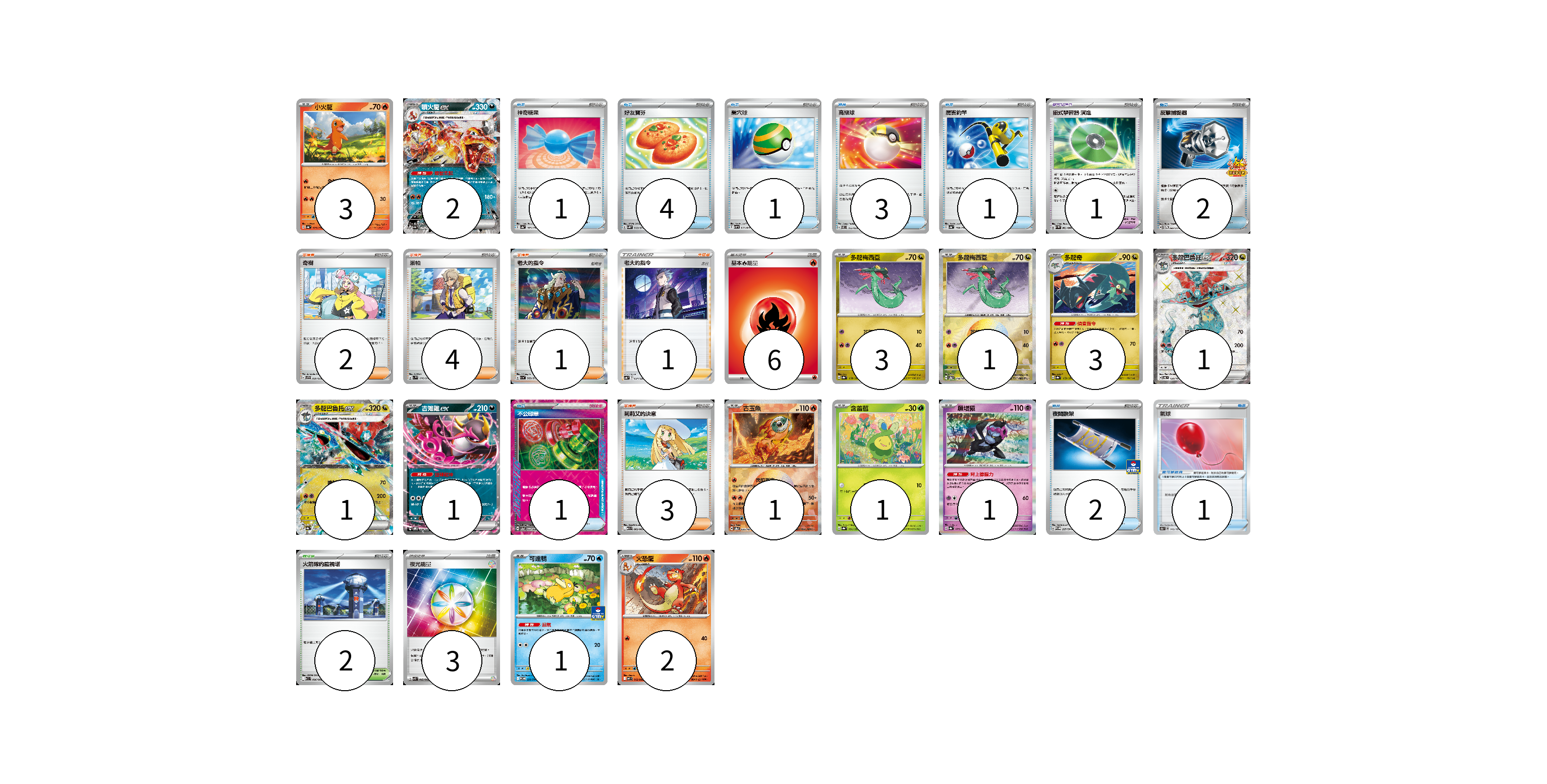 牌組構築方案 以此牌組為基礎新構築牌組 顯示卡面 顯示列表 寶可夢卡(21) 3 2 3 1 3 1 1 1 1 1 1 1 2 寶可夢道具(2) 1 1 物品卡(15) 1 4 1 3 1 2 1 2 支援者卡(11) 2 4 1 1 3 競技場卡(2) 2 能量卡(9) 6 3 寶可夢卡(21) 卡牌名稱 張數 卡牌名稱 張數 小火龍 SV4a 025/190 03 噴火龍ex SV4a 115/190 02 多龍梅西亞 SV8a 118/187 03 多龍梅西亞 SV8a 118/187 01 多龍奇 SV8a 119/187 03 多龍巴魯托ex SV6 120/101 01 多龍巴魯托ex SV8a 120/187 01 吉雉雞ex SVOM 009/021 01 古玉魚 SV8a 025/187 01 含羞苞 SV8a 001/187 01 願增猿 SV8a 075/187 01 可達鴨 SV-P 220/SV-P 01 火恐龍 M2 012/080 02 寶可夢道具(2) 卡牌名稱 張數 卡牌名稱 張數 招式學習器 演進 SV4M 063/066 01 氣球 S8b 145/184 01 物品卡(15) 卡牌名稱 張數 卡牌名稱 張數 神奇糖果 SV4a 163/190 01 好友寶芬 SV5K 063/071 04 巢穴球 SVHM 012/022 01 高級球 SVEL 012/020 03 厲害釣竿 SV4a 158/190 01 反擊捕捉器 SV-P 083/SV-P 02 不公印章 SV5a 053/066 01 夜間擔架 SV-P 227/SV-P 02 支援者卡(11) 卡牌名稱 張數 卡牌名稱 張數 奇樹 SVF 029/038 02 派帕 SV1V 076/078 04 老大的指令 SV1a 069/073 01 老大的指令(赤日) SVB 024/028 01 莉莉艾的決意 M1L 062/063 03 競技場卡(2) 卡牌名稱 張數 卡牌名稱 張數 火箭隊的監視塔 SV10 096/098 02 能量卡(9) 卡牌名稱 張數 卡牌名稱 張數 基本火能量 sv-p FIR 06 夜光能量 SVK 042/042 03 以此牌組為基礎新構築牌組 牌組編碼 fkPLvL-MZGpBm-UhQloe copy 列印牌組單 牌組編碼已複製 分享至SNS