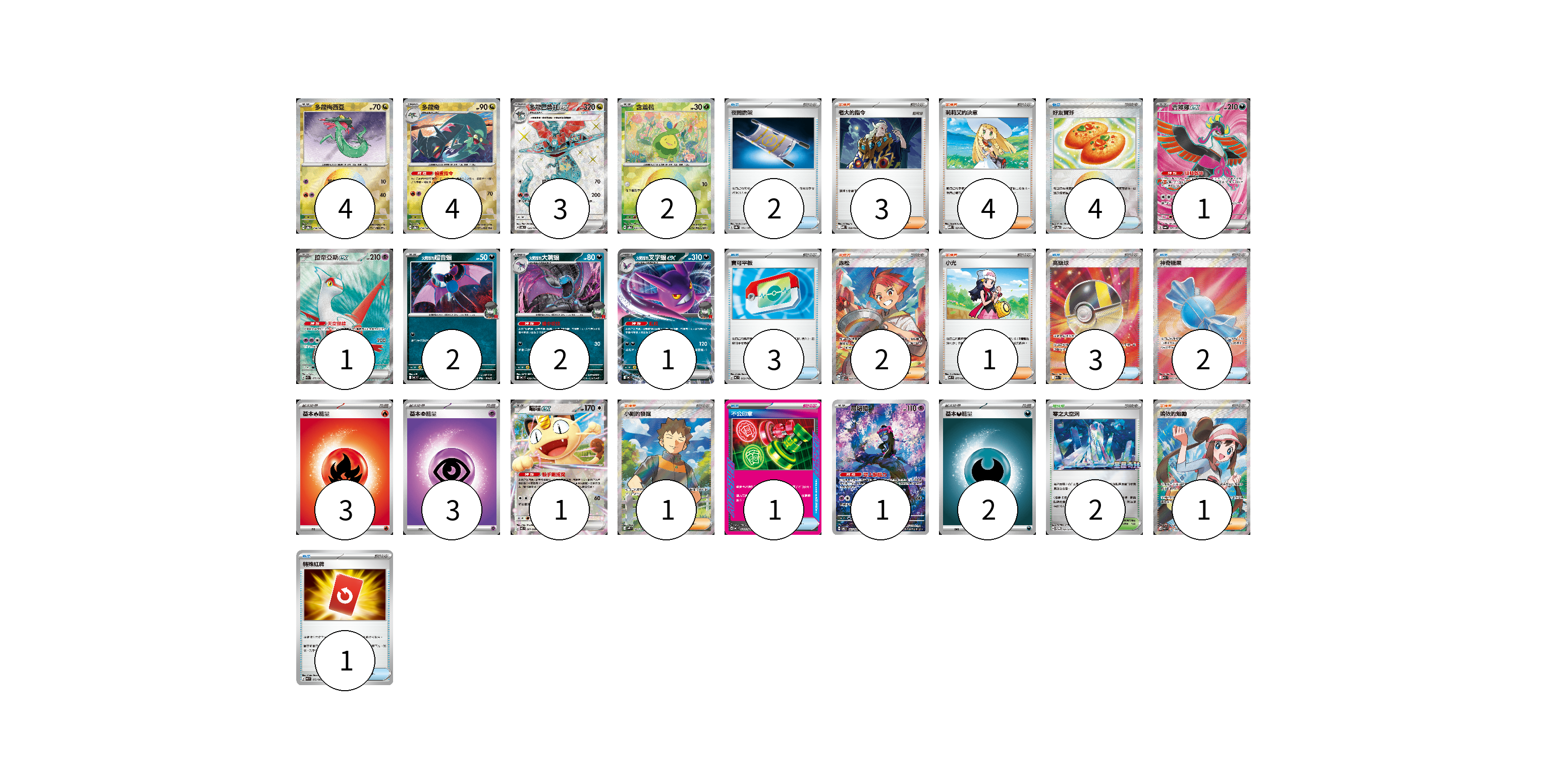 牌組構築方案 以此牌組為基礎新構築牌組 顯示卡面 顯示列表 寶可夢卡(22) 4 4 3 2 1 1 2 2 1 1 1 物品卡(16) 2 4 3 3 2 1 1 支援者卡(12) 3 4 2 1 1 1 競技場卡(2) 2 能量卡(8) 3 3 2 寶可夢卡(22) 卡牌名稱 張數 卡牌名稱 張數 多龍梅西亞 SV8a 118/187 04 多龍奇 SV8a 119/187 04 多龍巴魯托ex SV6 120/101 03 含羞苞 SV8a 001/187 02 吉雉雞ex SV6a 081/064 01 拉帝亞斯ex SV7a 078/064 01 <火箭隊的>超音蝠 MC 438/742 02 <火箭隊的>大嘴蝠 MC 439/742 02 <火箭隊的>叉字蝠ex MC 440/742 01 喵喵ex M3 061/080 01 願增猿 SV6 107/101 01 物品卡(16) 卡牌名稱 張數 卡牌名稱 張數 夜間擔架 SV8a 151/187 02 好友寶芬 SV8a 147/187 04 寶可平板 MC 662/742 03 高級球 M2a 216/193 03 神奇糖果 M1S 082/063 02 不公印章 MC 633/742 01 特殊紅牌 M4 072/083 01 支援者卡(12) 卡牌名稱 張數 卡牌名稱 張數 老大的指令 MBD 020/022 03 莉莉艾的決意 MBD 021/022 04 赤松 SV7 123/102 02 小光 M2 077/080 01 小剛的發掘 SV9 123/100 01 鳴依的勉勵 M3 107/080 01 競技場卡(2) 卡牌名稱 張數 卡牌名稱 張數 零之大空洞 SV-P 151/SV-P 02 能量卡(8) 卡牌名稱 張數 卡牌名稱 張數 基本【火】能量 MC FIR 03 基本【超】能量 MC PSY 03 基本【惡】能量 MC DAR 02 以此牌組為基礎新構築牌組 牌組編碼 fntcum-csIlxg-GlwQCH copy 列印牌組單 牌組編碼已複製 分享至SNS