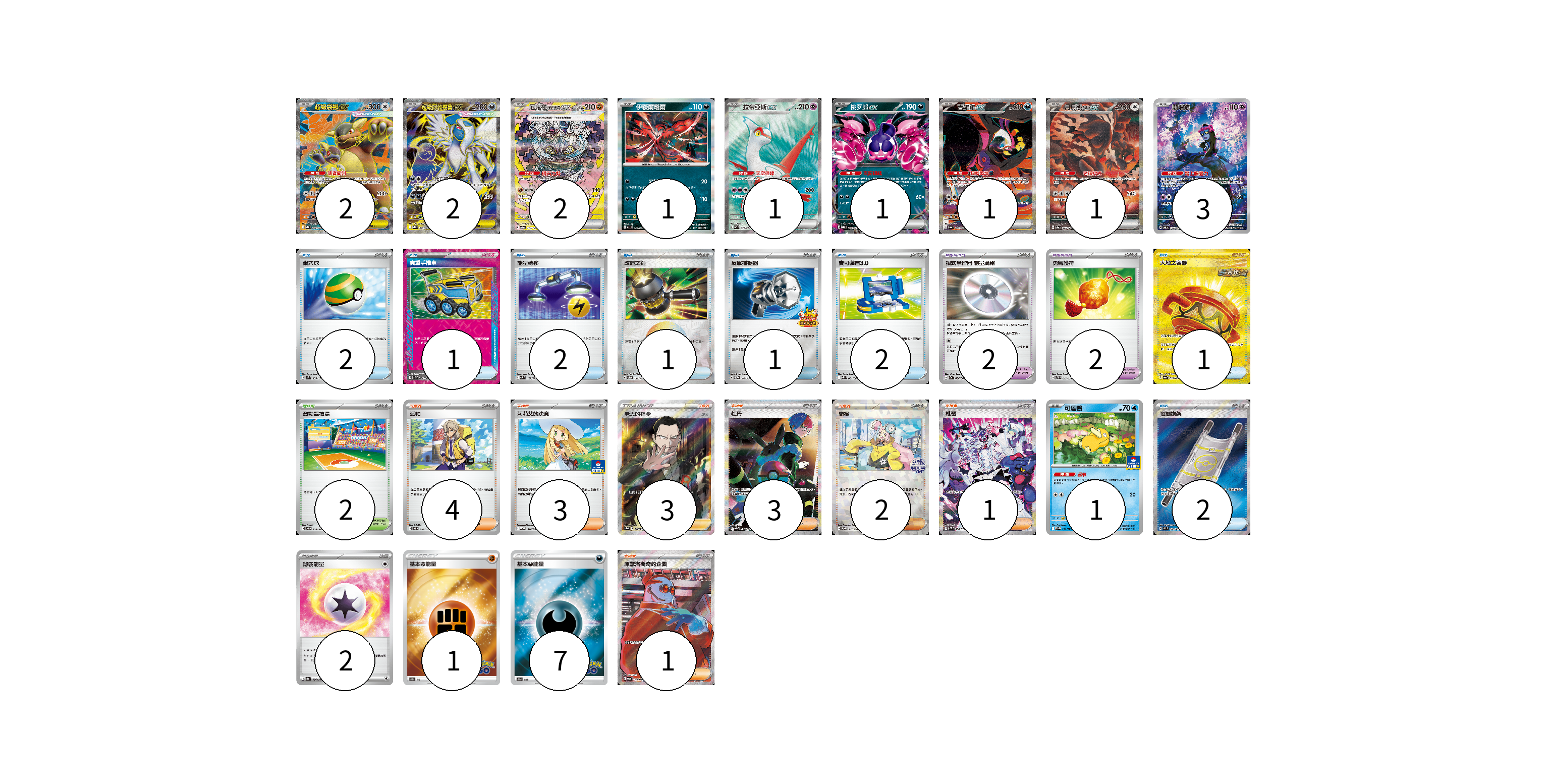 牌組構築方案 以此牌組為基礎新構築牌組 顯示卡面 顯示列表 寶可夢卡(15) 2 2 2 1 1 1 1 1 3 1 寶可夢道具(4) 2 2 物品卡(12) 2 1 2 1 1 2 1 2 支援者卡(17) 4 3 3 3 2 1 1 競技場卡(2) 2 能量卡(10) 2 1 7 寶可夢卡(15) 卡牌名稱 張數 卡牌名稱 張數 超級袋獸ex M1S 080/063 02 超級阿勃梭魯ex M1L 079/063 02 厄鬼椪 礎石面具ex SV8a 216/187 02 伊裴爾塔爾 M1L 040/063 01 拉帝亞斯ex SV7a 078/064 01 桃歹郎ex MBG 009/022 01 吉雉雞ex SV6a 089/064 01 月月熊 赫月ex SV8a 225/187 01 願增猿 SV6 107/101 03 可達鴨 SV-P 220/SV-P 01 寶可夢道具(4) 卡牌名稱 張數 卡牌名稱 張數 招式學習器 能量渦輪 SV3a 056/062 02 勇氣護符 SVTS 017/022 02 物品卡(12) 卡牌名稱 張數 卡牌名稱 張數 巢穴球 SVM 133/175 02 貴重手推車 SVK 020/042 01 能量轉移 SVM 127/175 02 改造之錘 SV8a 138/187 01 反擊捕捉器 SV-P 083/SV-P 01 寶可裝置3.0 SV11B 081/086 02 大地之容器 SV6a 093/064 01 夜間擔架 M1L 083/063 02 支援者卡(17) 卡牌名稱 張數 卡牌名稱 張數 派帕 SVOD 018/020 04 莉莉艾的決意 M-P 018/M-P 03 老大的指令(坂木) SC1b 170/153 03 牡丹 SV4a 354/190 03 奇樹 SV-P 247/SV-P 02 枇琶 SV5K 096/071 01 庫瑟洛斯奇的企圖 SV6a 086/064 01 競技場卡(2) 卡牌名稱 張數 卡牌名稱 張數 激動競技場 SV8 105/106 02 能量卡(10) 卡牌名稱 張數 卡牌名稱 張數 薄霧能量 SV8a 186/187 02 基本鬥能量 S10b FIG 01 基本惡能量 S10b DAR 07 以此牌組為基礎新構築牌組 牌組編碼 gCWqaA-LFBLLs-wxrbAO copy 列印牌組單 牌組編碼已複製 分享至SNS
