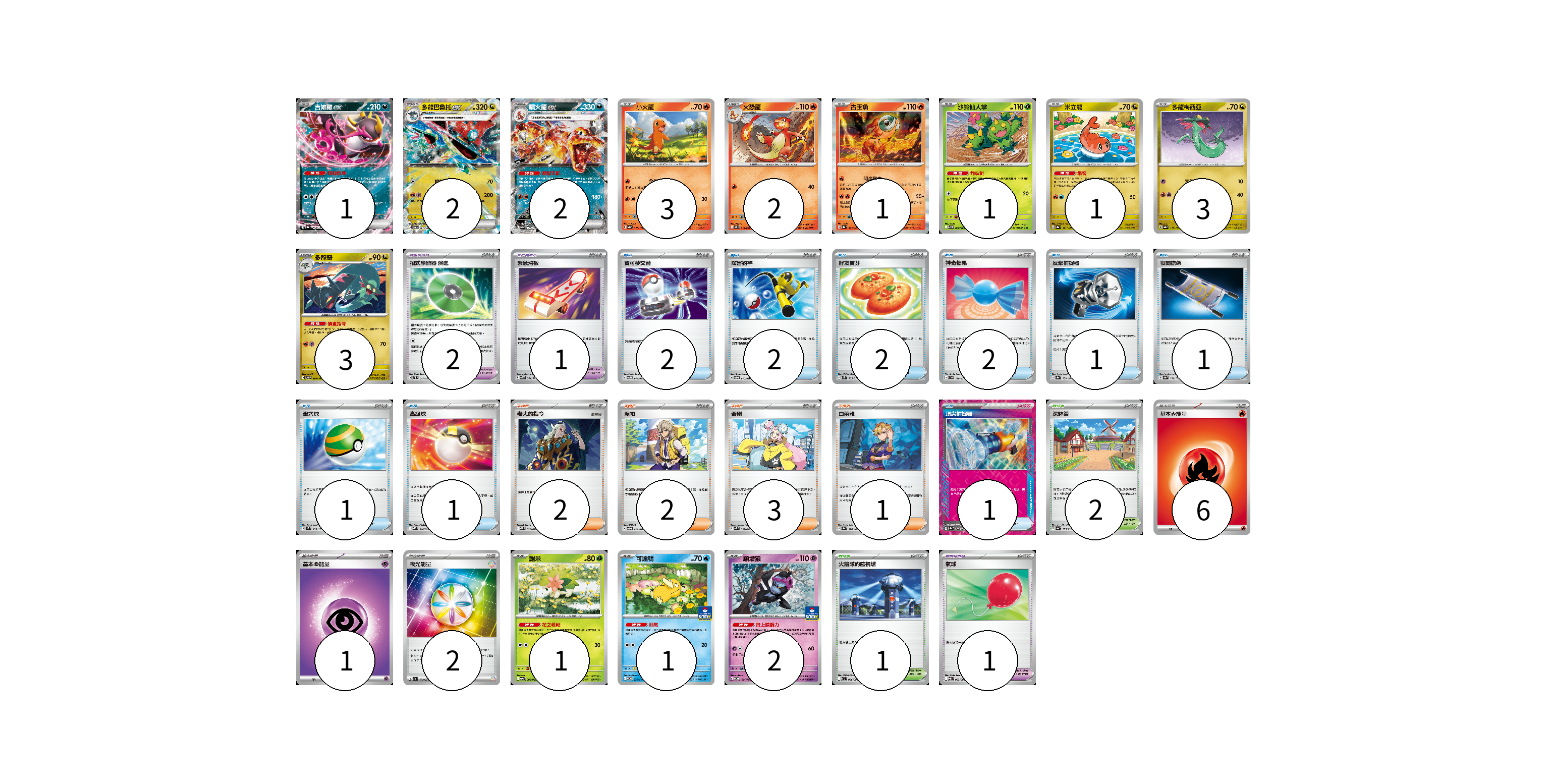 牌組構築方案 以此牌組為基礎新構築牌組 顯示卡面 顯示列表 寶可夢卡(23) 1 2 2 3 2 1 1 1 3 3 1 1 2 寶可夢道具(4) 2 1 1 物品卡(13) 2 2 2 2 1 1 1 1 1 支援者卡(8) 2 2 3 1 競技場卡(3) 2 1 能量卡(9) 6 1 2 寶可夢卡(23) 卡牌名稱 張數 卡牌名稱 張數 吉雉雞ex SV8a 104/187 01 多龍巴魯托ex SV6 081/101 02 噴火龍ex SV4a 115/190 02 小火龍 SV4a 025/190 03 火恐龍 M2 012/080 02 古玉魚 SV8a 025/187 01 沙鈴仙人掌 SV9 006/100 01 米立龍 SV8a 121/187 01 多龍梅西亞 SV8a 118/187 03 多龍奇 SV6 080/101 03 謝米 SV9a 006/063 01 可達鴨 SV-P 220/SV-P 01 願增猿 M-P 014/M-P 02 寶可夢道具(4) 卡牌名稱 張數 卡牌名稱 張數 招式學習器 演進 SVTL 017/021 02 緊急滑板 SV5K 064/071 01 氣球 SV11B 082/086 01 物品卡(13) 卡牌名稱 張數 卡牌名稱 張數 寶可夢交替 SVTM 014/022 02 厲害釣竿 SVOD 010/020 02 好友寶芬 SV5K 063/071 02 神奇糖果 SVD 120/139 02 反擊捕捉器 SV8a 139/187 01 夜間擔架 SV8a 151/187 01 巢穴球 SVM 133/175 01 高級球 MBD 014/022 01 頂尖捕捉器 SV8a 148/187 01 支援者卡(8) 卡牌名稱 張數 卡牌名稱 張數 老大的指令 MBD 020/022 02 派帕 SVOD 018/020 02 奇樹 SVK 031/042 03 白蕾雅 SV8a 176/187 01 競技場卡(3) 卡牌名稱 張數 卡牌名稱 張數 深缽鎮 SV4a 185/190 02 火箭隊的監視塔 SV10 096/098 01 能量卡(9) 卡牌名稱 張數 卡牌名稱 張數 基本火能量 sv-p FIR 06 基本【超】能量 MBD PSY 01 夜光能量 SV1a 073/073 02 以此牌組為基礎新構築牌組 牌組編碼 gcbSRg-YQAeIY-iQNssy copy 列印牌組單 牌組編碼已複製 分享至SNS