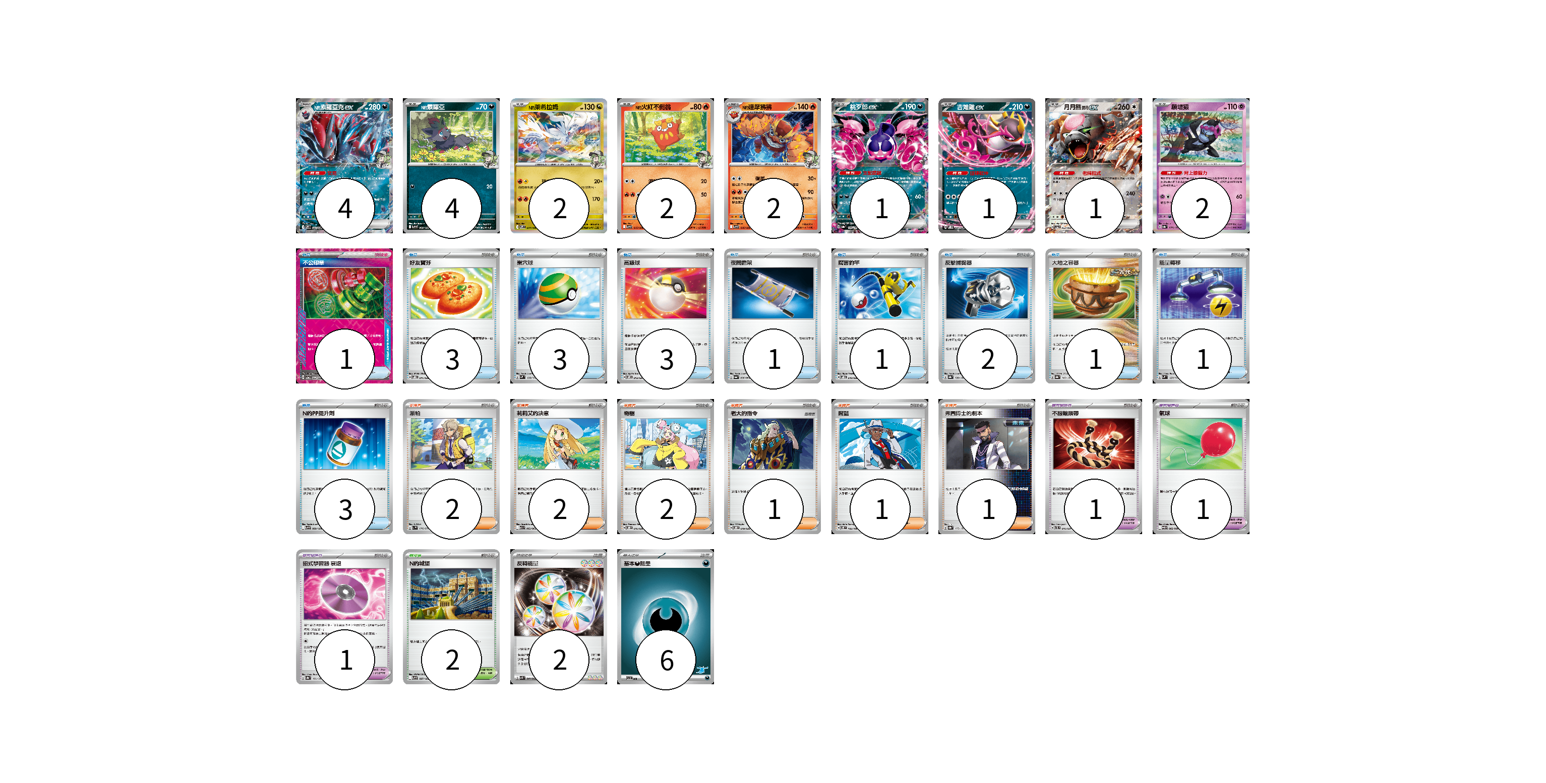 牌組構築方案 以此牌組為基礎新構築牌組 顯示卡面 顯示列表 寶可夢卡(19) 4 4 2 2 2 1 1 1 2 寶可夢道具(3) 1 1 1 物品卡(19) 1 3 3 3 1 1 2 1 1 3 支援者卡(9) 2 2 2 1 1 1 競技場卡(2) 2 能量卡(8) 2 6 寶可夢卡(19) 卡牌名稱 張數 卡牌名稱 張數 N的索羅亞克ex SV9 061/100 04 N的索羅亞 SV9 060/100 04 N的萊希拉姆 SV9 074/100 02 N的火紅不倒翁 SV9 015/100 02 N的達摩狒狒 SV9 016/100 02 桃歹郎ex SV8a 105/187 01 吉雉雞ex SVOD 004/020 01 月月熊 赫月 ex SV5a 052/066 01 願增猿 SV8a 075/187 02 寶可夢道具(3) 卡牌名稱 張數 卡牌名稱 張數 不服輸頭帶 SVTL 016/021 01 氣球 SV11B 082/086 01 招式學習器 衰退 SV8a 161/187 01 物品卡(19) 卡牌名稱 張數 卡牌名稱 張數 不公印章 SV5a 053/066 01 好友寶芬 SVOD 011/020 03 巢穴球 SVM 133/175 03 高級球 SVOM 013/021 03 夜間擔架 SV6a 056/064 01 厲害釣竿 SVOD 010/020 01 反擊捕捉器 SV8a 139/187 02 大地之容器 SV8a 143/187 01 能量轉移 SVM 127/175 01 N的PP提升劑 SV9 089/100 03 支援者卡(9) 卡牌名稱 張數 卡牌名稱 張數 派帕 SV1V 076/078 02 莉莉艾的決意 M1L 062/063 02 奇樹 SVOD 016/020 02 老大的指令 SVOD 019/020 01 席藍 SV8 102/106 01 弗圖博士的劇本 SV8a 175/187 01 競技場卡(2) 卡牌名稱 張數 卡牌名稱 張數 N的城堡 SV9 097/100 02 能量卡(8) 卡牌名稱 張數 卡牌名稱 張數 反轉能量 SVK 041/042 02 基本【惡】能量 SVI DAR 06 以此牌組為基礎新構築牌組 牌組編碼 guSBOJ-rvorWO-SlUfoq copy 列印牌組單 牌組編碼已複製 分享至SNS