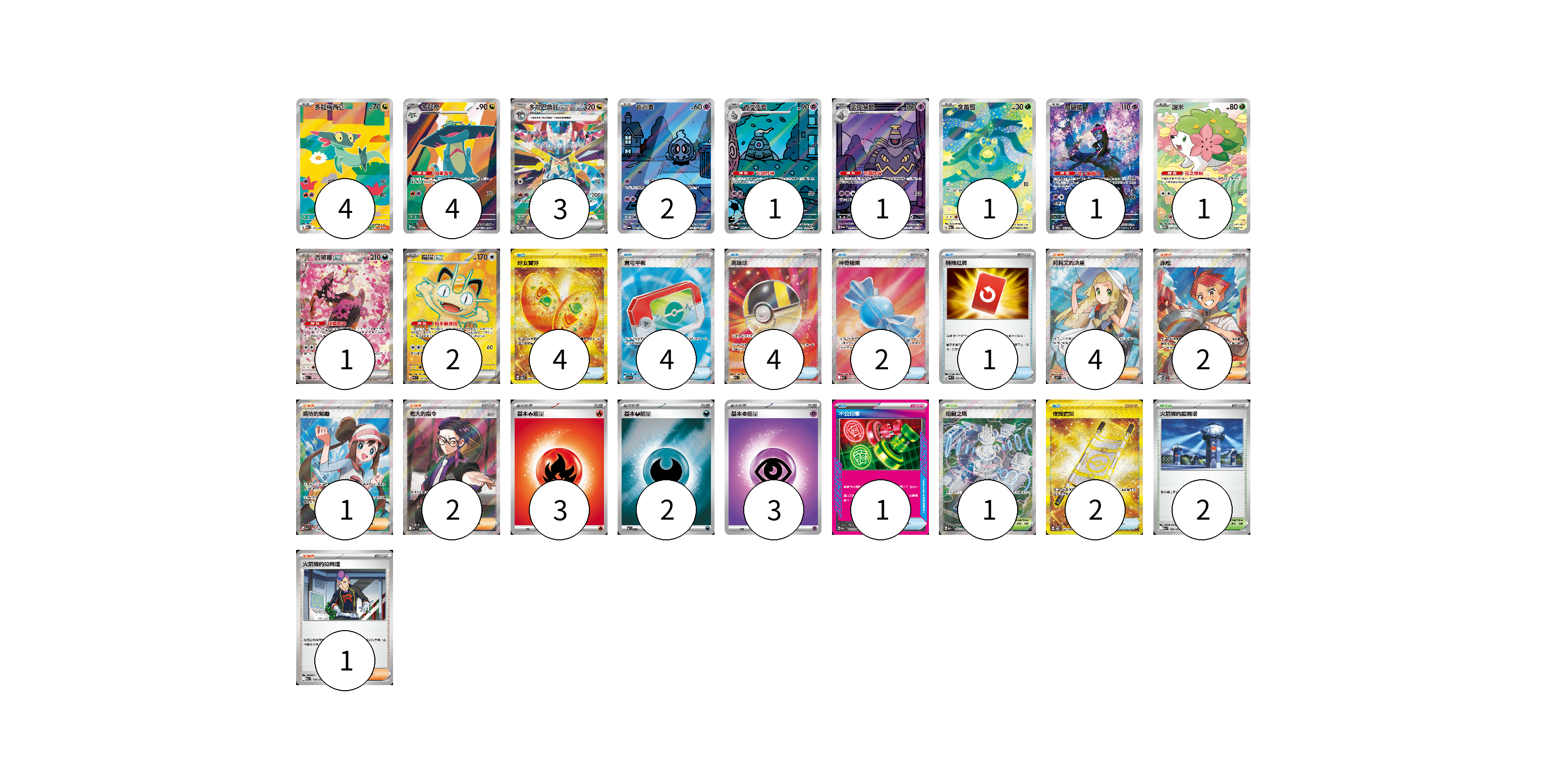 牌組構築方案 以此牌組為基礎新構築牌組 顯示卡面 顯示列表 寶可夢卡(21) 4 4 3 2 1 1 1 1 1 1 2 物品卡(18) 4 4 4 2 1 1 2 支援者卡(10) 4 2 1 2 1 競技場卡(3) 1 2 能量卡(8) 3 2 3 寶可夢卡(21) 卡牌名稱 張數 卡牌名稱 張數 多龍梅西亞 M2a 211/193 04 多龍奇 M2a 212/193 04 多龍巴魯托ex SV8a 221/187 03 夜巡靈 SV6a 068/064 02 彷徨夜靈 SV6a 069/064 01 黑夜魔靈 SV6a 070/064 01 含羞苞 M2a 196/193 01 願增猿 SV6 107/101 01 謝米 SV9a 066/063 01 吉雉雞ex M2a 244/193 01 喵喵ex M3 100/080 02 物品卡(18) 卡牌名稱 張數 卡牌名稱 張數 好友寶芬 SV6 133/101 04 寶可平板 M3 103/080 04 高級球 M2a 216/193 04 神奇糖果 M1S 082/063 02 特殊紅牌 M4 072/083 01 不公印章 MC 633/742 01 夜間擔架 SV8 137/106 02 支援者卡(10) 卡牌名稱 張數 卡牌名稱 張數 莉莉艾的決意 M1L 086/063 04 赤松 SV7 123/102 02 鳴依的勉勵 M3 107/080 01 老大的指令(烏羽) MC 760/742 02 火箭隊的拉姆達 M2a 179/193 01 競技場卡(3) 卡牌名稱 張數 卡牌名稱 張數 阻礙之塔 M2a 222/193 01 火箭隊的監視塔 M2a 189/193 02 能量卡(8) 卡牌名稱 張數 卡牌名稱 張數 基本【火】能量 MC FIR 03 基本【惡】能量 MC DAR 02 基本【超】能量 M-P PSY 03 以此牌組為基礎新構築牌組 牌組編碼 gvZFgG-FLKdxX-GfrVJh copy 列印牌組單 牌組編碼已複製 分享至SNS
