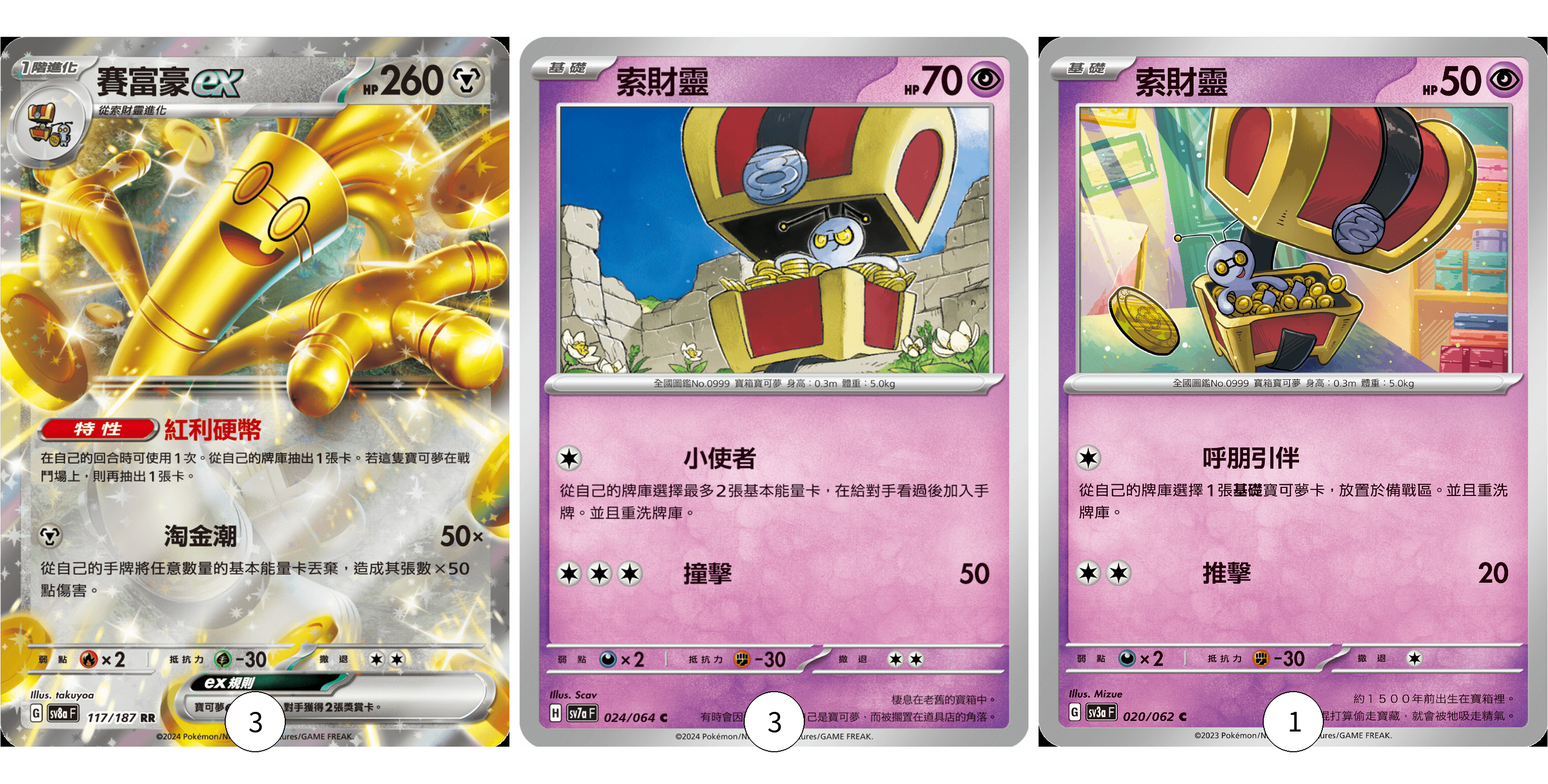 牌組構築方案 以此牌組為基礎新構築牌組 顯示卡面 顯示列表 寶可夢卡(7) 3 3 1 寶可夢卡(7) 卡牌名稱 張數 卡牌名稱 張數 賽富豪ex SV8a 117/187 03 索財靈 SV7a 024/064 03 索財靈 SV3a 020/062 01 以此牌組為基礎新構築牌組 牌組編碼 hLyaIi-JReVKx-McxbtC copy 列印牌組單 牌組編碼已複製 分享至SNS