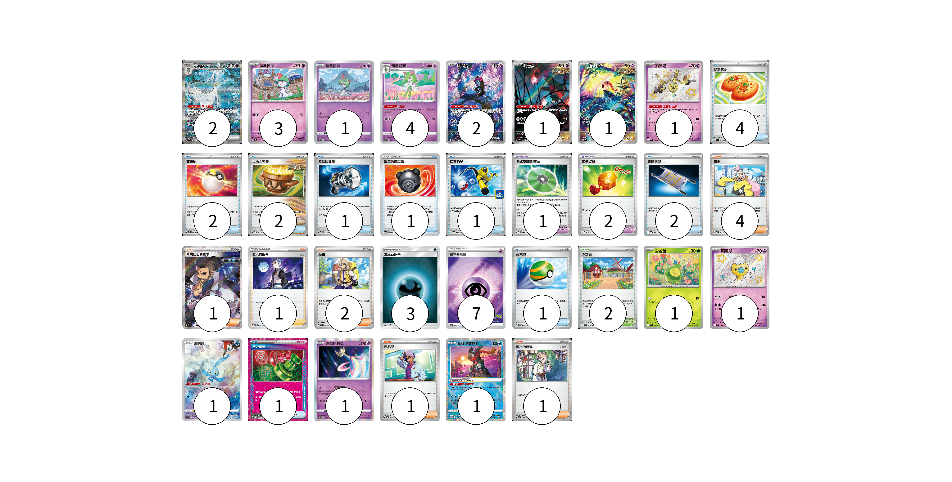 牌組構築方案 以此牌組為基礎新構築牌組 顯示卡面 顯示列表 寶可夢卡(20) 2 3 1 4 2 1 1 1 1 1 1 1 1 寶可夢道具(3) 1 2 物品卡(15) 4 2 2 1 1 1 2 1 1 支援者卡(10) 4 1 1 2 1 1 競技場卡(2) 2 能量卡(10) 3 7 寶可夢卡(20) 卡牌名稱 張數 卡牌名稱 張數 沙奈朵ex SV4a 348/190 02 拉魯拉絲 SV4a 080/190 03 拉魯拉絲 S9a 032/067 01 奇魯莉安 S11a 037/068 04 願增猿 SV6 107/101 02 振翼髮 SV5K 076/071 01 吼叫尾 SV4K 071/066 01 鑰圈兒 SV4a 264/190 01 含羞苞 SV8a 001/187 01 飄飄球 SV4a 260/190 01 瑪納霏 S12a 178/172 01 克雷色利亞 S10D 028/067 01 光輝甲賀忍蛙 S12a 033/172 01 寶可夢道具(3) 卡牌名稱 張數 卡牌名稱 張數 招式學習器 演進 SVTL 017/021 01 勇氣護符 SV2D 067/071 02 物品卡(15) 卡牌名稱 張數 卡牌名稱 張數 好友寶芬 SVK 015/042 04 高級球 SVTL 012/021 02 大地之容器 SVK 012/042 02 反擊捕捉器 SVK 009/042 01 洗翠的沉重球 SVF 019/038 01 厲害釣竿 SV-P 112/SV-P 01 夜間擔架 SV6a 056/064 02 巢穴球 SVTG 012/019 01 不公印章 SV5a 053/066 01 支援者卡(10) 卡牌名稱 張數 卡牌名稱 張數 奇樹 SVEL 016/020 04 弗圖博士的劇本 SV4M 086/066 01 老大的指令(赤日) SVB 024/028 01 派帕 SVTL 020/021 02 吉尼亞 SVAL 017/021 01 博士的研究 SVM 169/175 01 競技場卡(2) 卡牌名稱 張數 卡牌名稱 張數 深缽鎮 SV1a 070/073 02 能量卡(10) 卡牌名稱 張數 卡牌名稱 張數 基本惡能量 AS6D DAR 03 基本超能量 S10b PSY 07 以此牌組為基礎新構築牌組 牌組編碼 hNETfU-hjlXGB-bgeVum copy 列印牌組單 牌組編碼已複製 分享至SNS