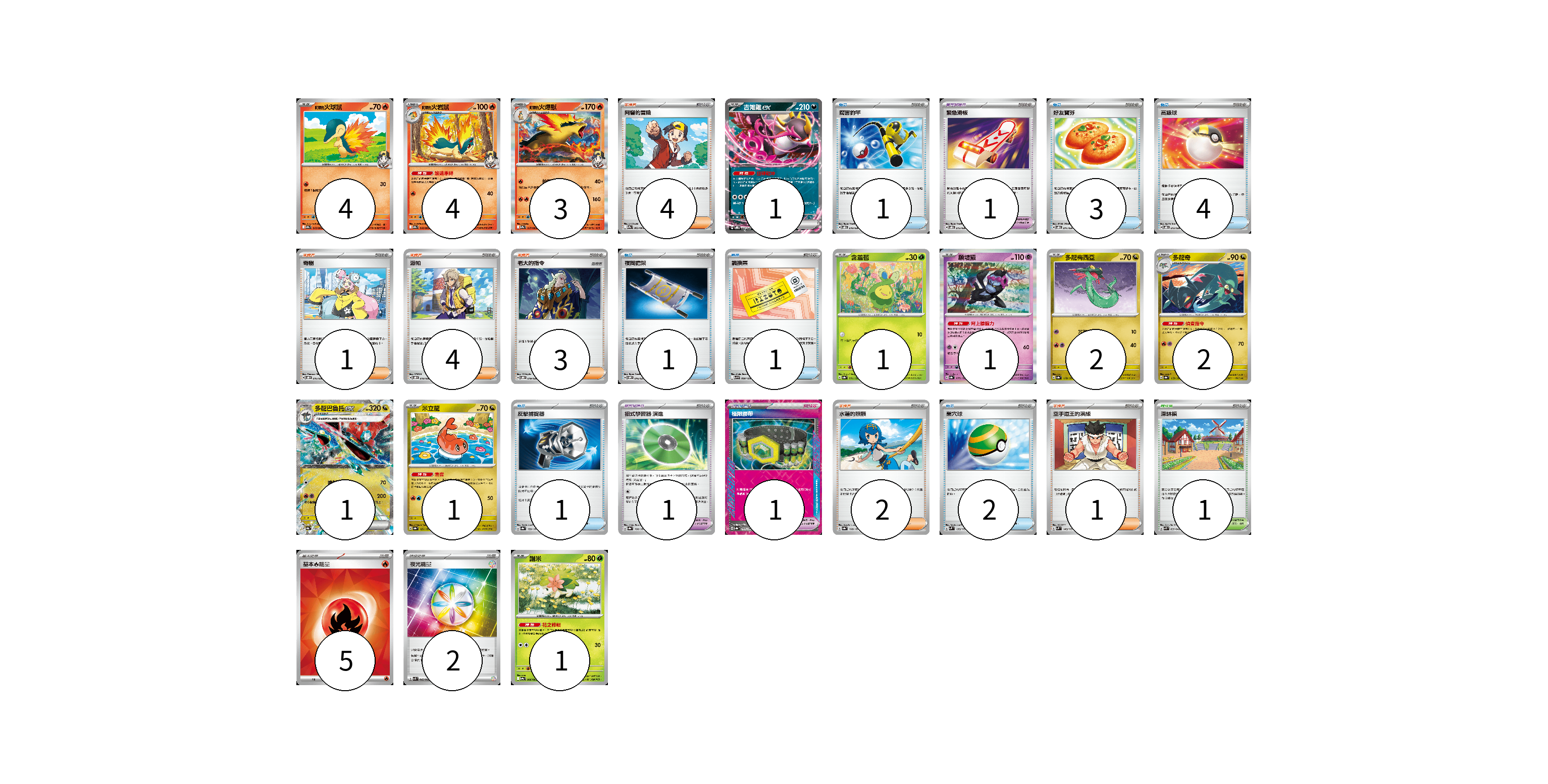 牌組構築方案 以此牌組為基礎新構築牌組 顯示卡面 顯示列表 寶可夢卡(21) 4 4 3 1 1 1 2 2 1 1 1 寶可夢道具(3) 1 1 1 物品卡(13) 1 3 4 1 1 1 2 支援者卡(15) 4 1 4 3 2 1 競技場卡(1) 1 能量卡(7) 5 2 寶可夢卡(21) 卡牌名稱 張數 卡牌名稱 張數 <阿響的>火球鼠 SV9a 015/063 04 <阿響的>火岩鼠 SV9a 016/063 04 <阿響的>火爆獸 SV9a 017/063 03 吉雉雞ex SVOD 004/020 01 含羞苞 SV8a 001/187 01 願增猿 SV8a 075/187 01 多龍梅西亞 SV8a 118/187 02 多龍奇 SV8a 119/187 02 多龍巴魯托ex SV8a 120/187 01 米立龍 SV8a 121/187 01 謝米 SV9a 006/063 01 寶可夢道具(3) 卡牌名稱 張數 卡牌名稱 張數 緊急滑板 SVOD 015/020 01 招式學習器 演進 SV8a 160/187 01 極限腰帶 SV8a 159/187 01 物品卡(13) 卡牌名稱 張數 卡牌名稱 張數 厲害釣竿 SVOD 010/020 01 好友寶芬 SVOD 011/020 03 高級球 SVOD 012/020 04 夜間擔架 SVOM 016/021 01 調換票 SV9 090/100 01 反擊捕捉器 SV8a 139/187 01 巢穴球 SVM 133/175 02 支援者卡(15) 卡牌名稱 張數 卡牌名稱 張數 阿響的冒險 SV9a 063/063 04 奇樹 SVOD 016/020 01 派帕 SVOD 018/020 04 老大的指令 SVOD 019/020 03 水蓮的照顧 SV8a 168/187 02 空手道王的演練 SVM 143/175 01 競技場卡(1) 卡牌名稱 張數 卡牌名稱 張數 深缽鎮 SVK 039/042 01 能量卡(7) 卡牌名稱 張數 卡牌名稱 張數 基本【火】能量 SVK FIR 05 夜光能量 SVK 042/042 02 以此牌組為基礎新構築牌組 牌組編碼 hNeSYj-ToGgFW-qKpdtc copy 列印牌組單 牌組編碼已複製 分享至SNS