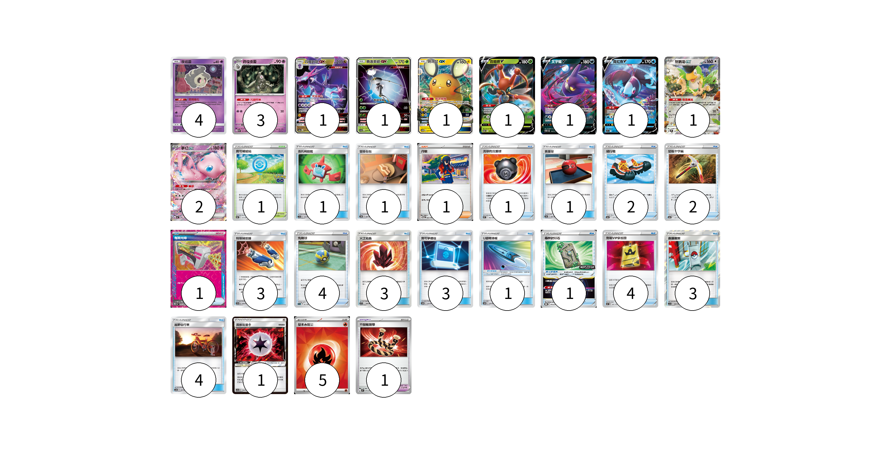 牌組構築方案 以此牌組為基礎新構築牌組 顯示卡面 顯示列表 寶可夢卡(16) 4 3 1 1 1 1 1 1 1 2 寶可夢道具(3) 1 1 1 物品卡(33) 1 1 1 1 2 2 1 3 4 3 3 4 3 4 支援者卡(1) 1 競技場卡(1) 1 能量卡(6) 1 5 寶可夢卡(16) 卡牌名稱 張數 卡牌名稱 張數 夜巡靈 AS6a 061/196 04 彷徨夜靈 SV6a 019/064 03 四顎針龍GX AS6a 144/196 01 費洛美螂GX AC1a 029/158 01 咚咚鼠GX AS5D 053/169 01 音箱蟀V S8b 004/184 01 叉字蝠V S-P 142/S-P 01 霓虹魚V S9 030/100 01 怒鸚哥ex SV2P 065/071 01 夢幻ex SV4a 076/190 02 寶可夢道具(3) 卡牌名稱 張數 卡牌名稱 張數 U迴轉滑板 AS6D 155/168 01 森林封印石 SV-P 141/SV-P 01 不服輸頭帶 SV1S 073/078 01 物品卡(33) 卡牌名稱 張數 卡牌名稱 張數 洛托姆圖鑑 AC1b 139/158 01 冒險包包 AS6b 189/194 01 洗翠的沉重球 S10P 062/067 01 貴重球 AS6a 190/196 01 健行鞋 S12a 137/172 02 堅毅十字鎬 S12a 133/172 02 危險光線 SV6a 054/064 01 特製捕捉器 AC2a 159/200 03 先機球 SLD 011/020 04 火之結晶 AS5b 157/186 03 寶可夢通信 AS6D 153/168 03 對戰VIP參加證 S8 091/100 04 救援擔架 AS5a 180/184 03 越野自行車 AS6b 187/194 04 支援者卡(1) 卡牌名稱 張數 卡牌名稱 張數 丹瑜 SV6 097/101 01 競技場卡(1) 卡牌名稱 張數 卡牌名稱 張數 寶可補給站 S10b 071/071 01 能量卡(6) 卡牌名稱 張數 卡牌名稱 張數 異獸能量◇ AC2a 18/200 01 基本【火】能量 SVK FIR 05 以此牌組為基礎新構築牌組 牌組編碼 hjTQQd-rViuRS-oJwqtQ copy 列印牌組單 牌組編碼已複製 分享至SNS
