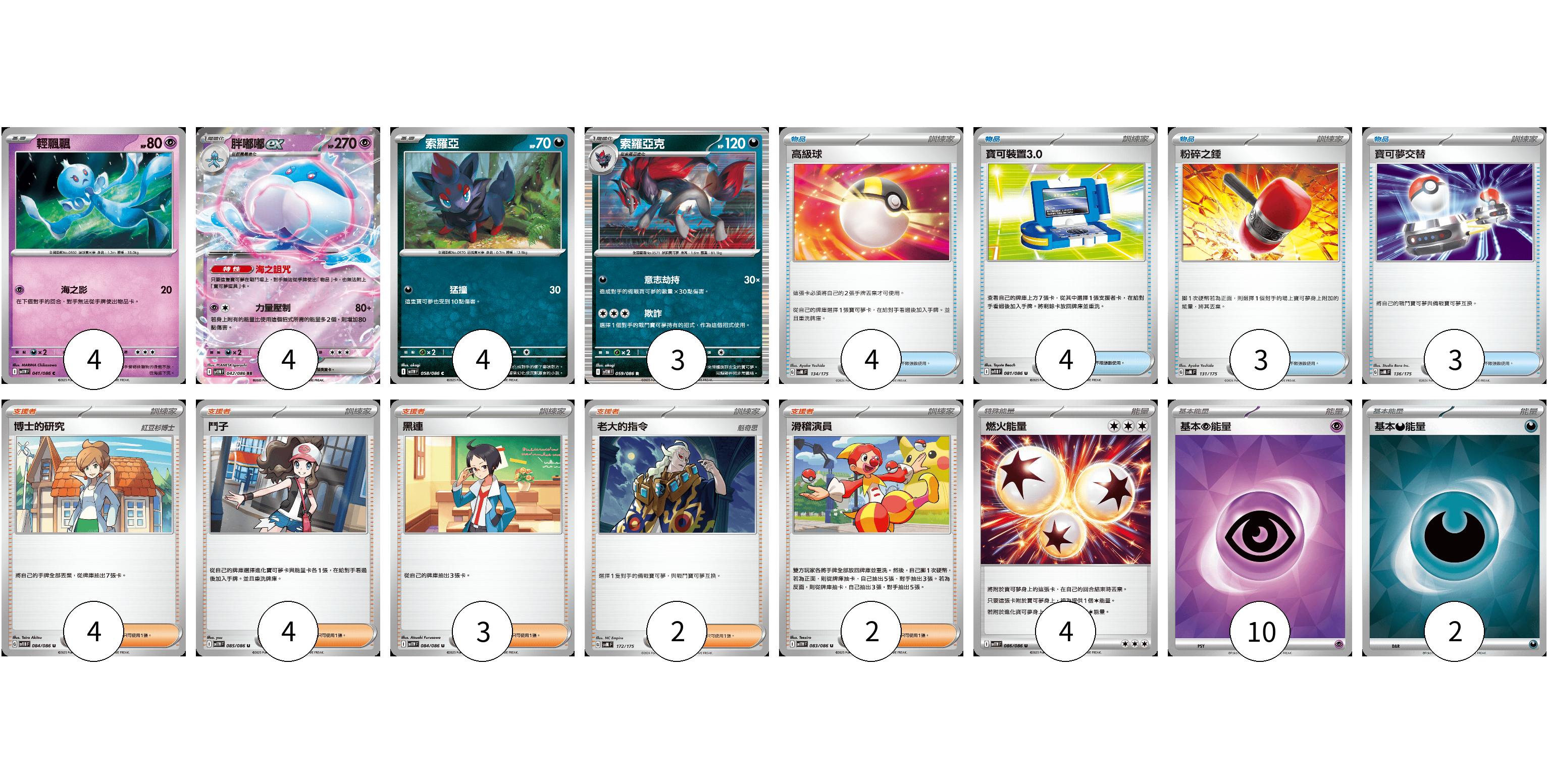 牌組構築方案 以此牌組為基礎新構築牌組 顯示卡面 顯示列表 寶可夢卡(15) 4 4 4 3 物品卡(14) 4 4 3 3 支援者卡(15) 4 4 3 2 2 能量卡(16) 4 10 2 寶可夢卡(15) 卡牌名稱 張數 卡牌名稱 張數 輕飄飄 SV11W 041/086 04 胖嘟嘟ex SV11W 042/086 04 索羅亞 SV11W 058/086 04 索羅亞克 SV11W 059/086 03 物品卡(14) 卡牌名稱 張數 卡牌名稱 張數 高級球 SVM 134/175 04 寶可裝置3.0 SV11B 081/086 04 粉碎之錘 SVM 131/175 03 寶可夢交替 SVM 136/175 03 支援者卡(15) 卡牌名稱 張數 卡牌名稱 張數 博士的研究 SV11B 084/086 04 鬥子 SV11W 085/086 04 黑連 SV11W 084/086 03 老大的指令 SVM 172/175 02 滑稽演員 SV11W 083/086 02 能量卡(16) 卡牌名稱 張數 卡牌名稱 張數 燃火能量 SV11W 086/086 04 基本【超】能量 SVM PSY 10 基本【惡】能量 SVM DAR 02 以此牌組為基礎新構築牌組 牌組編碼 iCPJic-HifpZs-dlffNg copy 列印牌組單 牌組編碼已複製 分享至SNS