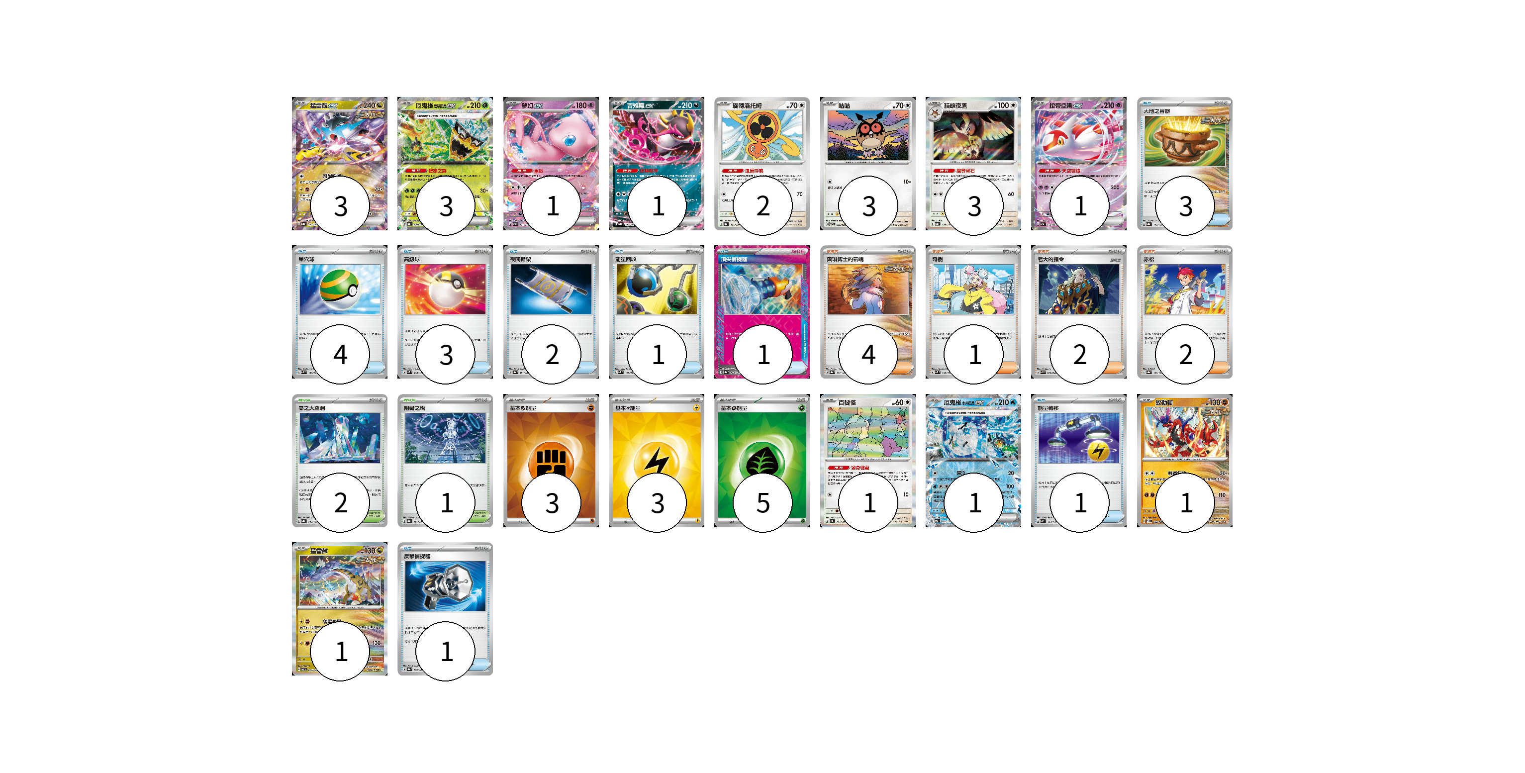 牌組構築方案 以此牌組為基礎新構築牌組 顯示卡面 顯示列表 寶可夢卡(21) 3 3 1 1 2 3 3 1 1 1 1 1 物品卡(16) 3 4 3 2 1 1 1 1 支援者卡(9) 4 1 2 2 競技場卡(3) 2 1 能量卡(11) 3 3 5 寶可夢卡(21) 卡牌名稱 張數 卡牌名稱 張數 猛雷鼓ex SV8a 124/187 03 厄鬼椪 碧草面具ex SV8a 020/187 03 夢幻ex SVK 001/042 01 吉雉雞ex SV8a 104/187 01 旋轉洛托姆 SV8a 131/187 02 咕咕 SV7 076/102 03 貓頭夜鷹 SV8a 128/187 03 拉帝亞斯ex SV7a 019/064 01 百變怪 SV4a 144/190 01 厄鬼椪 水井面具ex SV8a 050/187 01 故勒頓 SV8 069/106 01 猛雷鼓 SV7 075/102 01 物品卡(16) 卡牌名稱 張數 卡牌名稱 張數 大地之容器 SV8a 143/187 03 巢穴球 SVM 133/175 04 高級球 SVM 134/175 03 夜間擔架 SV8a 151/187 02 能量回收 SVM 125/175 01 頂尖捕捉器 SV8a 148/187 01 能量轉移 SVM 127/175 01 反擊捕捉器 SV8a 139/187 01 支援者卡(9) 卡牌名稱 張數 卡牌名稱 張數 奧琳博士的氣魄 SV8a 167/187 04 奇樹 SVM 160/175 01 老大的指令 SVK 036/042 02 赤松 SV8a 163/187 02 競技場卡(3) 卡牌名稱 張數 卡牌名稱 張數 零之大空洞 SV8a 182/187 02 阻礙之塔 SV8a 181/187 01 能量卡(11) 卡牌名稱 張數 卡牌名稱 張數 基本【鬥】能量 SVK FIG 03 基本【雷】能量 SVK LIG 03 基本【草】能量 SVK GRA 05 以此牌組為基礎新構築牌組 牌組編碼 ipkhAz-WtjIRX-WjQzoU copy 列印牌組單 牌組編碼已複製 分享至SNS