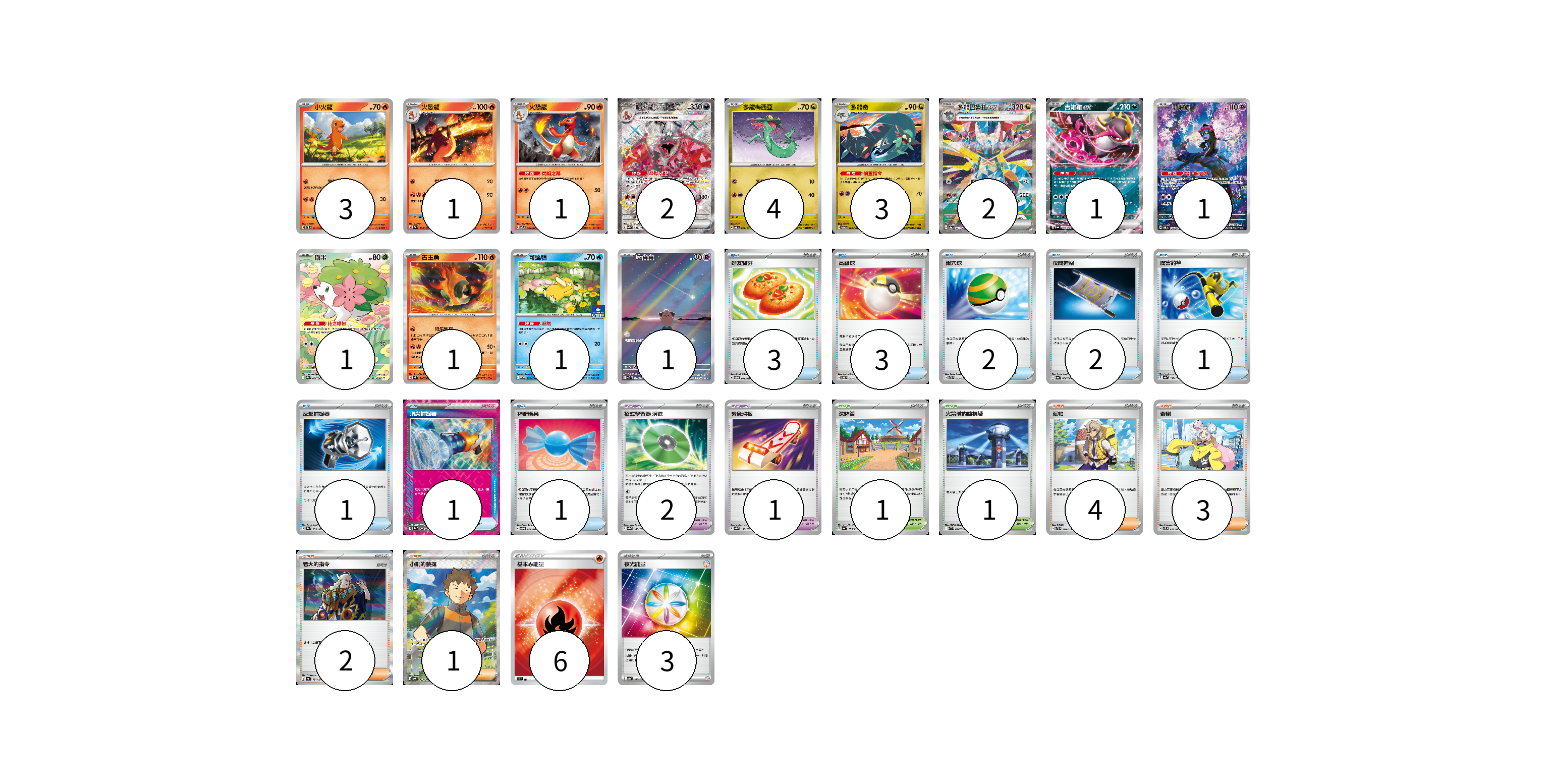牌組構築方案 以此牌組為基礎新構築牌組 顯示卡面 顯示列表 寶可夢卡(22) 3 1 1 2 4 3 2 1 1 1 1 1 1 寶可夢道具(6) 2 1 3 物品卡(14) 3 3 2 2 1 1 1 1 支援者卡(7) 4 2 1 競技場卡(2) 1 1 能量卡(9) 6 3 寶可夢卡(22) 卡牌名稱 張數 卡牌名稱 張數 小火龍 SVTL 001/021 03 火恐龍 SV2a 005/165 01 火恐龍 SVTL 002/021 01 噴火龍ex SV4a 331/190 02 多龍梅西亞 SV6 079/101 04 多龍奇 SV6 080/101 03 多龍巴魯托ex SV8a 221/187 02 吉雉雞ex SV6a 038/064 01 願增猿 SV6 107/101 01 謝米 SV9a 066/063 01 古玉魚 SV4K 016/066 01 可達鴨 SV-P 220/SV-P 01 皮寶寶 SV3 113/108 01 寶可夢道具(6) 卡牌名稱 張數 卡牌名稱 張數 招式學習器 演進 SV8a 160/187 02 緊急滑板 SV8a 153/187 01 奇樹 SVTL 018/021 03 物品卡(14) 卡牌名稱 張數 卡牌名稱 張數 好友寶芬 SVOD 011/020 03 高級球 SVOD 012/020 03 巢穴球 SVTR 013/021 02 夜間擔架 SV6a 056/064 02 厲害釣竿 SV4a 158/190 01 反擊捕捉器 SV8a 139/187 01 頂尖捕捉器 SV8a 148/187 01 神奇糖果 SVOD 013/020 01 支援者卡(7) 卡牌名稱 張數 卡牌名稱 張數 派帕 SVTL 020/021 04 老大的指令 SV4a 181/190 02 小剛的發掘 SV9 123/100 01 競技場卡(2) 卡牌名稱 張數 卡牌名稱 張數 深缽鎮 SV4a 185/190 01 火箭隊的監視塔 SV10 096/098 01 能量卡(9) 卡牌名稱 張數 卡牌名稱 張數 基本【火】能量 SO FIR 06 夜光能量 SV4a 190/190 03 以此牌組為基礎新構築牌組 牌組編碼 ksGaVy-zUUGnm-ewNSxB copy 列印牌組單 牌組編碼已複製 分享至SNS