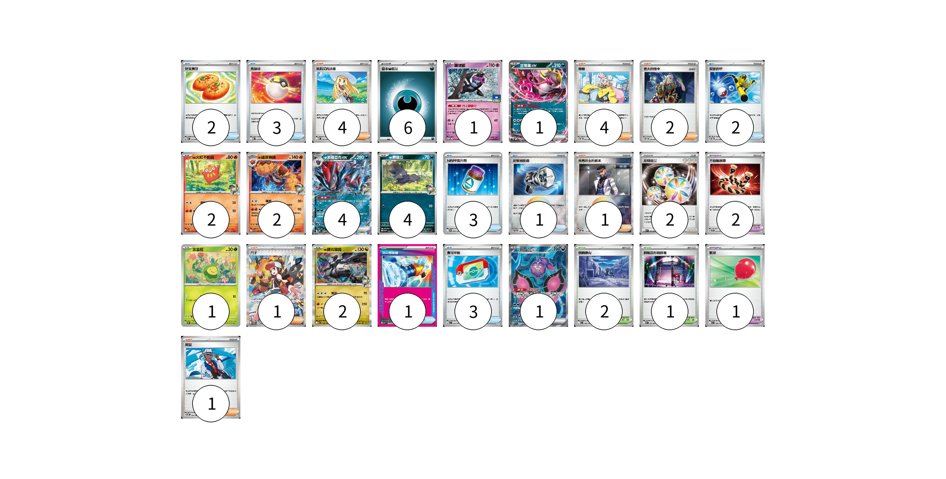 牌組構築方案 以此牌組為基礎新構築牌組 顯示卡面 顯示列表 寶可夢卡(18) 1 1 2 2 4 4 1 2 1 寶可夢道具(3) 2 1 物品卡(15) 2 3 2 3 1 1 3 支援者卡(13) 4 4 2 1 1 1 競技場卡(3) 2 1 能量卡(8) 6 2 寶可夢卡(18) 卡牌名稱 張數 卡牌名稱 張數 願增猿 M-P 014/M-P 01 吉雉雞ex SVOD 004/020 01 N的火紅不倒翁 SV9 015/100 02 N的達摩狒狒 SV9 016/100 02 N的索羅亞克ex SV9 061/100 04 N的索羅亞 SV9 060/100 04 含羞苞 SV8a 001/187 01 N的捷克羅姆 M2a 129/193 02 桃歹郎ex SV6a 082/064 01 寶可夢道具(3) 卡牌名稱 張數 卡牌名稱 張數 不服輸頭帶 SVTL 016/021 02 氣球 MC 688/742 01 物品卡(15) 卡牌名稱 張數 卡牌名稱 張數 好友寶芬 MBD 013/022 02 高級球 MBD 014/022 03 厲害釣竿 SVOM 011/021 02 N的PP提升劑 SV9 089/100 03 反擊捕捉器 SV8a 139/187 01 頂尖捕捉器 MBG 014/022 01 寶可平板 MC 662/742 03 支援者卡(13) 卡牌名稱 張數 卡牌名稱 張數 莉莉艾的決意 MBD 021/022 04 奇樹 SVOD 016/020 04 老大的指令 SVOD 019/020 02 弗圖博士的劇本 SV8a 175/187 01 鬥子 SV11W 173/086 01 席藍 SV8 102/106 01 競技場卡(3) 卡牌名稱 張數 卡牌名稱 張數 夜間礦山 M2a 188/193 02 對戰圓形競技場 M2 079/080 01 能量卡(8) 卡牌名稱 張數 卡牌名稱 張數 基本【惡】能量 MBG DAR 06 反轉能量 SVK 041/042 02 以此牌組為基礎新構築牌組 牌組編碼 lUtily-oTotoO-FoaUBx copy 列印牌組單 牌組編碼已複製 分享至SNS