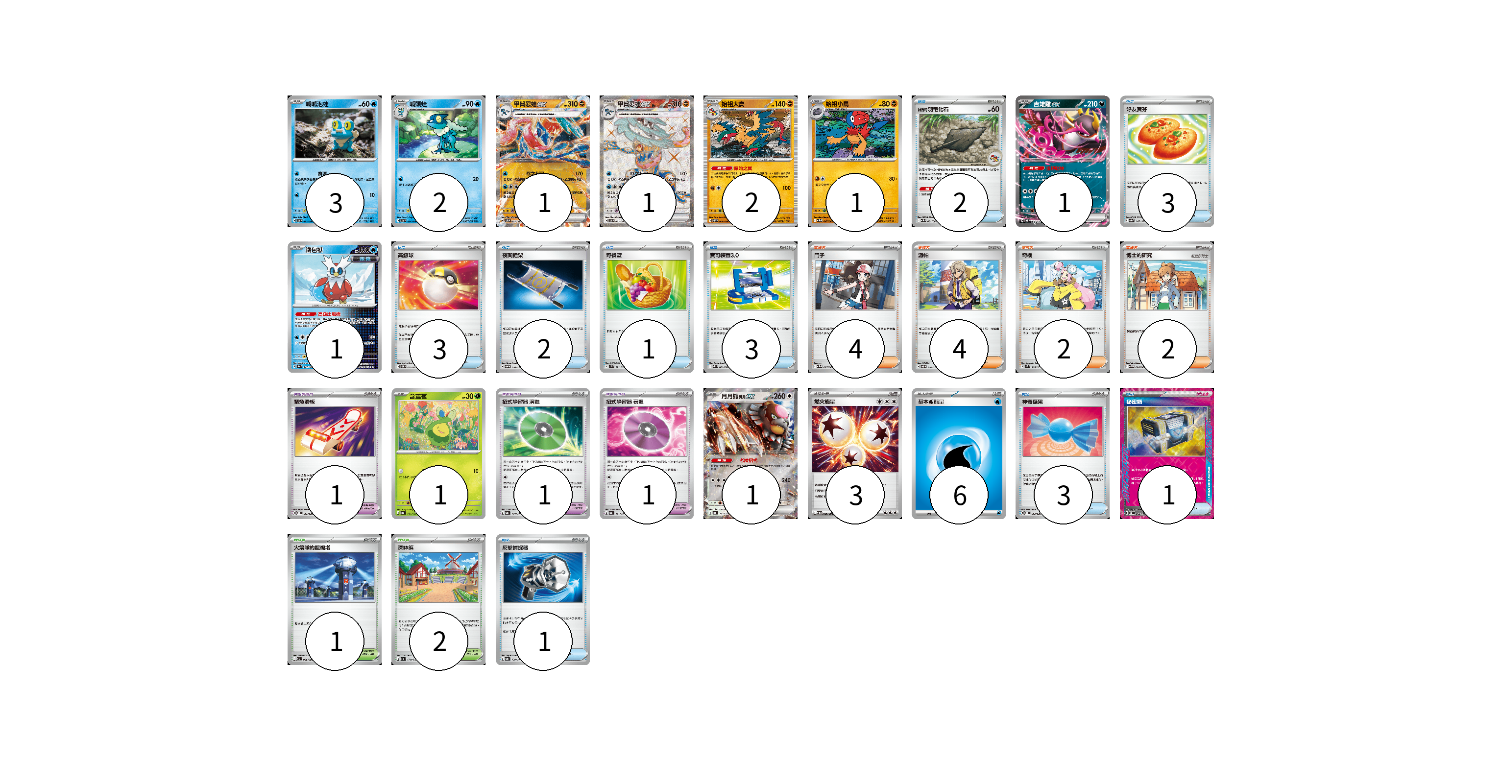 牌組構築方案 以此牌組為基礎新構築牌組 顯示卡面 顯示列表 寶可夢卡(14) 3 2 1 1 2 1 1 1 1 1 寶可夢道具(3) 1 1 1 物品卡(19) 2 3 3 2 1 3 3 1 1 支援者卡(12) 4 4 2 2 競技場卡(3) 1 2 能量卡(9) 3 6 寶可夢卡(14) 卡牌名稱 張數 卡牌名稱 張數 呱呱泡蛙 SV5a 023/066 03 呱頭蛙 SV5a 024/066 02 甲賀忍蛙ex SV5a 045/066 01 甲賀忍蛙ex SV5a 083/066 01 始祖大鳥 SV11W 048/086 02 始祖小鳥 SV11W 047/086 01 吉雉雞ex SVOD 004/020 01 鐵包袱 SV8a 047/187 01 含羞苞 SV8a 001/187 01 月月熊 赫月ex SV8a 134/187 01 寶可夢道具(3) 卡牌名稱 張數 卡牌名稱 張數 緊急滑板 SVOD 015/020 01 招式學習器 演進 SV8a 160/187 01 招式學習器 衰退 SV8a 161/187 01 物品卡(19) 卡牌名稱 張數 卡牌名稱 張數 陳舊的羽毛化石 SV11W 081/086 02 好友寶芬 SV8a 147/187 03 高級球 SVOM 013/021 03 夜間擔架 SVOM 016/021 02 野餐籃 SV1V 071/078 01 寶可裝置3.0 SV11B 081/086 03 神奇糖果 SVOD 013/020 03 秘密箱 SV6 092/101 01 反擊捕捉器 SV8a 139/187 01 支援者卡(12) 卡牌名稱 張數 卡牌名稱 張數 鬥子 SV11W 085/086 04 派帕 SVOD 018/020 04 奇樹 SVM 160/175 02 博士的研究 SV11B 084/086 02 競技場卡(3) 卡牌名稱 張數 卡牌名稱 張數 火箭隊的監視塔 SV10 096/098 01 深缽鎮 SV1a 070/073 02 能量卡(9) 卡牌名稱 張數 卡牌名稱 張數 燃火能量 SV11W 086/086 03 基本水能量 sv-p WAT 06 以此牌組為基礎新構築牌組 牌組編碼 oMiFFr-LUwUZc-iDfybK copy 列印牌組單 牌組編碼已複製 分享至SNS