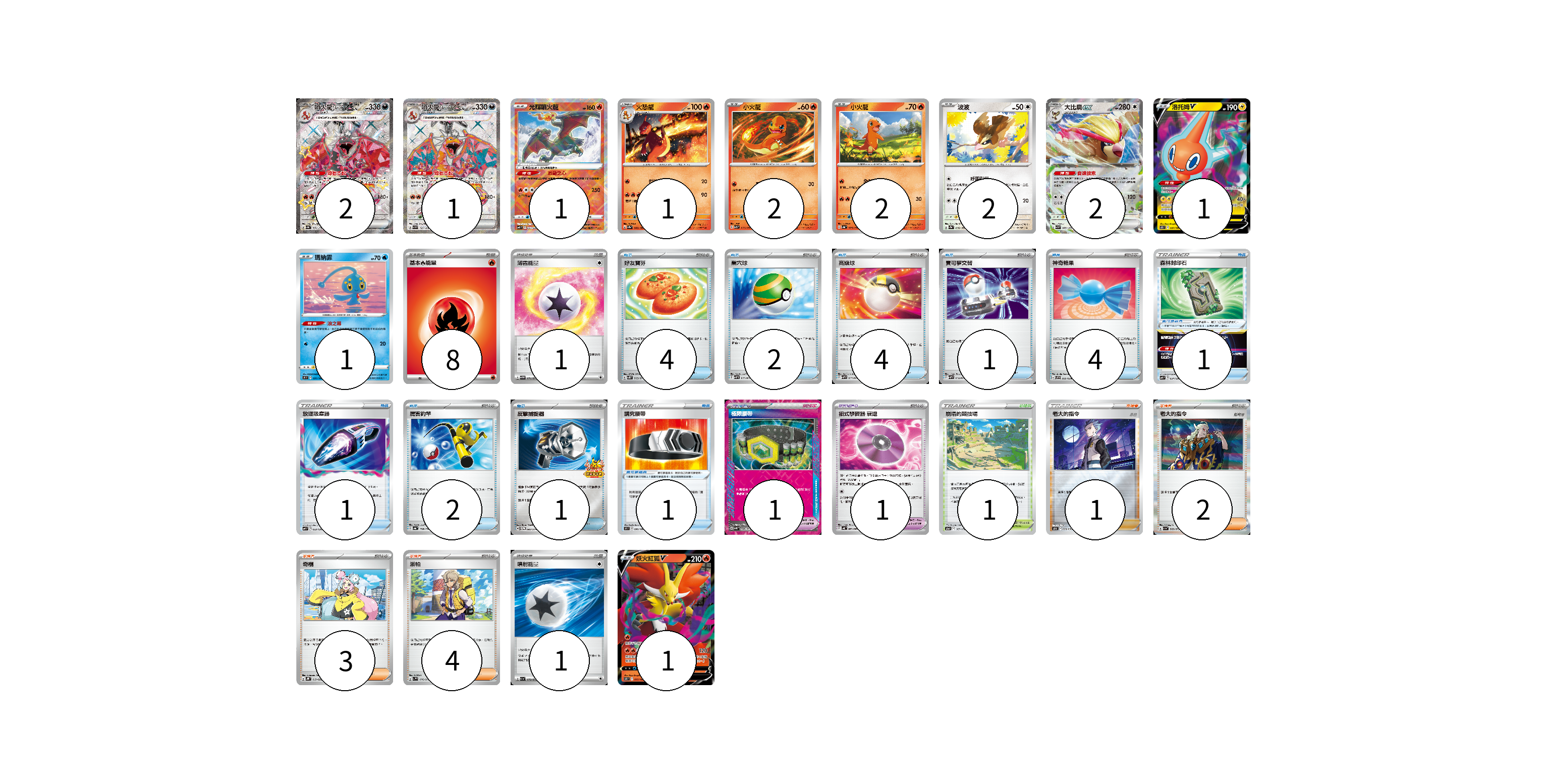 牌組構築方案 以此牌組為基礎新構築牌組 顯示卡面 顯示列表 寶可夢卡(16) 2 1 1 1 2 2 2 2 1 1 1 寶可夢道具(3) 1 1 1 物品卡(20) 4 2 4 1 4 1 1 2 1 支援者卡(10) 1 2 3 4 競技場卡(1) 1 能量卡(10) 8 1 1 寶可夢卡(16) 卡牌名稱 張數 卡牌名稱 張數 噴火龍ex SV4a 331/190 02 噴火龍ex SV3 125/108 01 光輝噴火龍 SVF 001/038 01 火恐龍 SV2a 005/165 01 小火龍 SV3 012/108 02 小火龍 SV4a 025/190 02 波波 SV2a 016/165 02 大比鳥ex SV3 089/108 02 洛托姆V S11 037/100 01 瑪納霏 S9 031/100 01 妖火紅狐V S11 017/100 01 寶可夢道具(3) 卡牌名稱 張數 卡牌名稱 張數 講究腰帶 S9 090/100 01 極限腰帶 SV5K 066/071 01 招式學習器 衰退 SV4K 063/066 01 物品卡(20) 卡牌名稱 張數 卡牌名稱 張數 好友寶芬 SV5K 063/071 04 巢穴球 SVHM 012/022 02 高級球 SVHM 013/022 04 寶可夢交替 SVHM 014/022 01 神奇糖果 SVF 020/038 04 森林封印石 SVF 024/038 01 放逐吸塵器 SVF 023/038 01 厲害釣竿 SV4a 158/190 02 反擊捕捉器 SV-P 083/SV-P 01 支援者卡(10) 卡牌名稱 張數 卡牌名稱 張數 老大的指令(赤日) SO 028/030 01 老大的指令 SV1a 069/073 02 奇樹 SVHK 019/022 03 派帕 SV1V 076/078 04 競技場卡(1) 卡牌名稱 張數 卡牌名稱 張數 崩塌的競技場 S12a 167/172 01 能量卡(10) 卡牌名稱 張數 卡牌名稱 張數 基本【火】能量 SVEL FIR 08 薄霧能量 SV5M 071/071 01 噴射能量 SV1a 072/073 01 以此牌組為基礎新構築牌組 牌組編碼 oWizpK-aQHlBf-pXYQuG copy 列印牌組單 牌組編碼已複製 分享至SNS