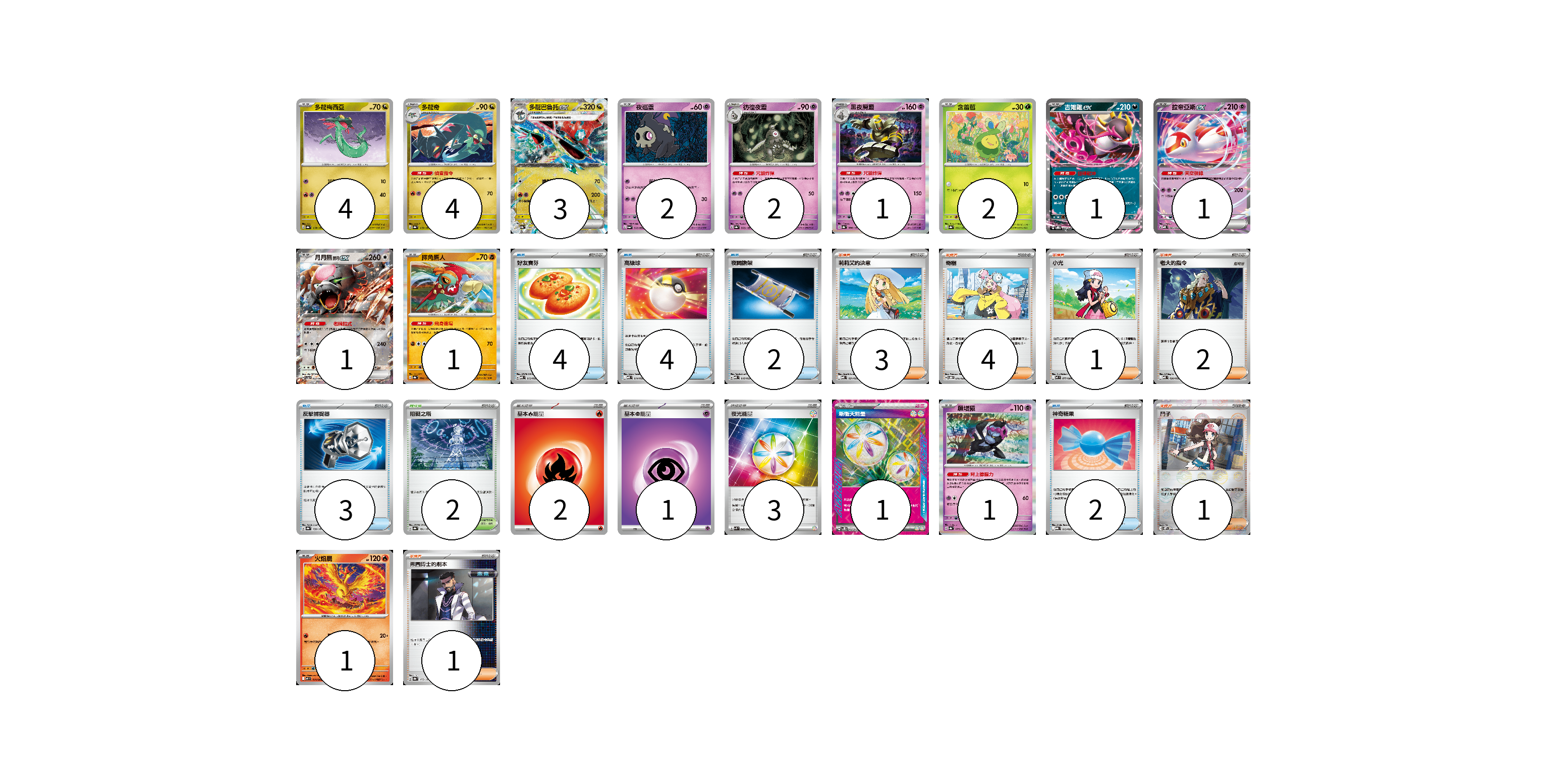 牌組構築方案 以此牌組為基礎新構築牌組 顯示卡面 顯示列表 寶可夢卡(24) 4 4 3 2 2 1 2 1 1 1 1 1 1 物品卡(15) 4 4 2 3 2 支援者卡(12) 3 4 1 2 1 1 競技場卡(2) 2 能量卡(7) 2 1 3 1 寶可夢卡(24) 卡牌名稱 張數 卡牌名稱 張數 多龍梅西亞 SV8a 118/187 04 多龍奇 SV8a 119/187 04 多龍巴魯托ex SV8a 120/187 03 夜巡靈 SV6a 018/064 02 彷徨夜靈 SV8a 065/187 02 黑夜魔靈 SV8a 066/187 01 含羞苞 SV8a 001/187 02 吉雉雞ex SVOD 004/020 01 拉帝亞斯ex MBD 003/022 01 月月熊 赫月 ex SV5a 052/066 01 摔角鷹人 SV8a 084/187 01 願增猿 SV8a 075/187 01 火焰鳥 M2 014/080 01 物品卡(15) 卡牌名稱 張數 卡牌名稱 張數 好友寶芬 MBD 013/022 04 高級球 MBD 014/022 04 夜間擔架 MBD 016/022 02 反擊捕捉器 SV8a 139/187 03 神奇糖果 MBG 013/022 02 支援者卡(12) 卡牌名稱 張數 卡牌名稱 張數 莉莉艾的決意 MBD 021/022 03 奇樹 SVOD 016/020 04 小光 M2 077/080 01 老大的指令 MBD 020/022 02 鬥子 SV11W 085/086 01 弗圖博士的劇本 SV8a 175/187 01 競技場卡(2) 卡牌名稱 張數 卡牌名稱 張數 阻礙之塔 SV8a 181/187 02 能量卡(7) 卡牌名稱 張數 卡牌名稱 張數 基本火能量 sv-p FIR 02 基本超能量 sv-p PSY 01 夜光能量 SVK 042/042 03 新衝天能量 SV5K 071/071 01 以此牌組為基礎新構築牌組 牌組編碼 pUVnbW-jPnMvx-EcaqnZ copy 列印牌組單 牌組編碼已複製 分享至SNS