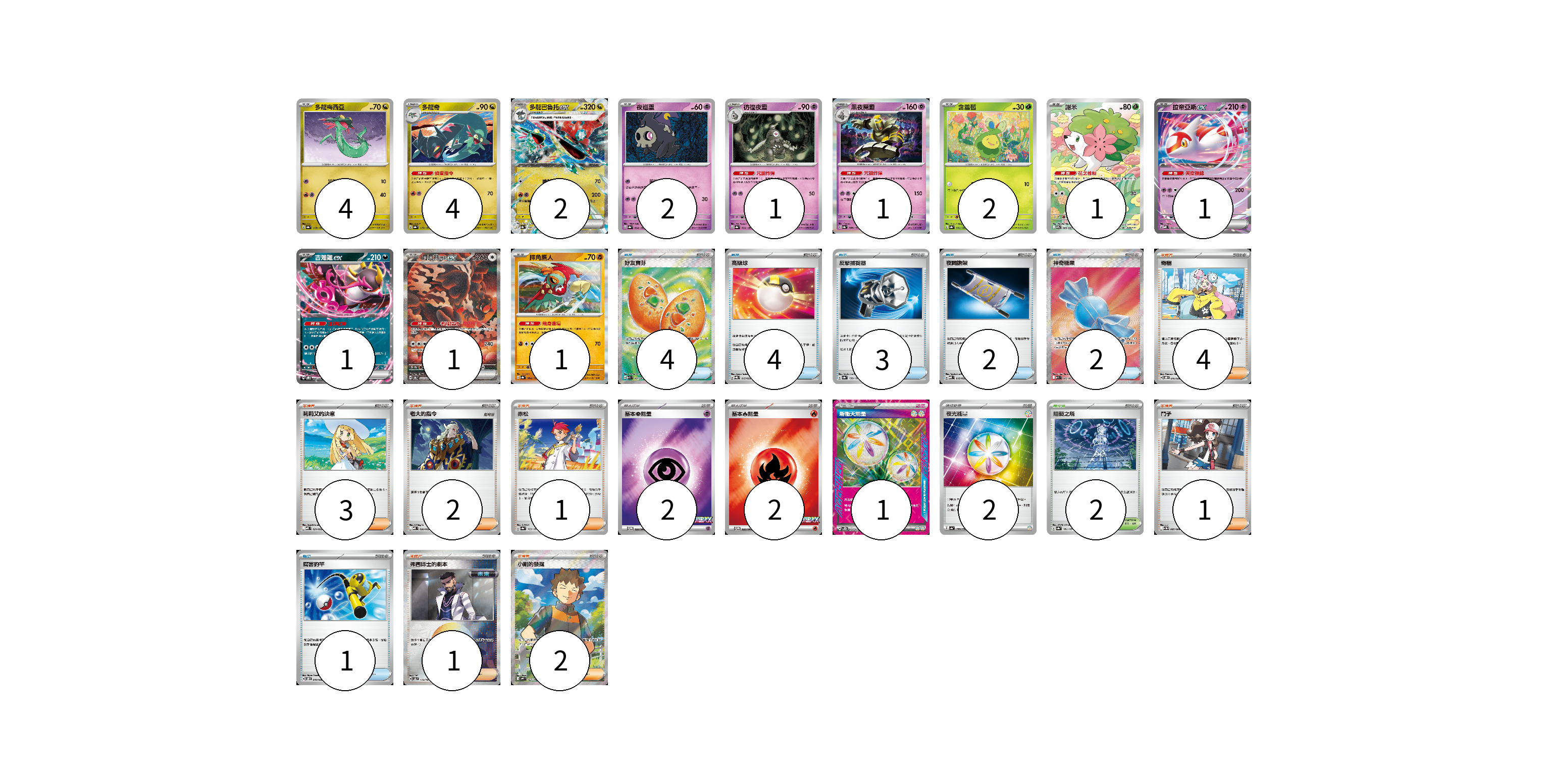 牌組構築方案 以此牌組為基礎新構築牌組 顯示卡面 顯示列表 寶可夢卡(21) 4 4 2 2 1 1 2 1 1 1 1 1 物品卡(16) 4 4 3 2 2 1 支援者卡(14) 4 3 2 1 1 1 2 競技場卡(2) 2 能量卡(7) 2 2 1 2 寶可夢卡(21) 卡牌名稱 張數 卡牌名稱 張數 多龍梅西亞 SV8a 118/187 04 多龍奇 SV8a 119/187 04 多龍巴魯托ex SV8a 120/187 02 夜巡靈 SV8a 064/187 02 彷徨夜靈 SV8a 065/187 01 黑夜魔靈 SV8a 066/187 01 含羞苞 SV8a 001/187 02 謝米 SV9a 066/063 01 拉帝亞斯ex MBD 003/022 01 吉雉雞ex SVOD 004/020 01 月月熊 赫月ex SV8a 225/187 01 摔角鷹人 SV8a 084/187 01 物品卡(16) 卡牌名稱 張數 卡牌名稱 張數 好友寶芬 M1S 081/063 04 高級球 SVQL 015/022 04 反擊捕捉器 SV8a 139/187 03 夜間擔架 MBD 016/022 02 神奇糖果 M1S 082/063 02 厲害釣竿 SVOD 010/020 01 支援者卡(14) 卡牌名稱 張數 卡牌名稱 張數 奇樹 SVOD 016/020 04 莉莉艾的決意 MBD 021/022 03 老大的指令 MBD 020/022 02 赤松 SV8a 163/187 01 鬥子 SV11W 085/086 01 弗圖博士的劇本 SV8a 175/187 01 小剛的發掘 SV9 123/100 02 競技場卡(2) 卡牌名稱 張數 卡牌名稱 張數 阻礙之塔 SV8a 181/187 02 能量卡(7) 卡牌名稱 張數 卡牌名稱 張數 基本【超】能量 M-P 033/M-P 02 基本【火】能量 M-P 032/M-P 02 新衝天能量 SV5K 071/071 01 夜光能量 SV4a 190/190 02 以此牌組為基礎新構築牌組 牌組編碼 pYSSLD-UjnWNv-fgNffM copy 列印牌組單 牌組編碼已複製 分享至SNS