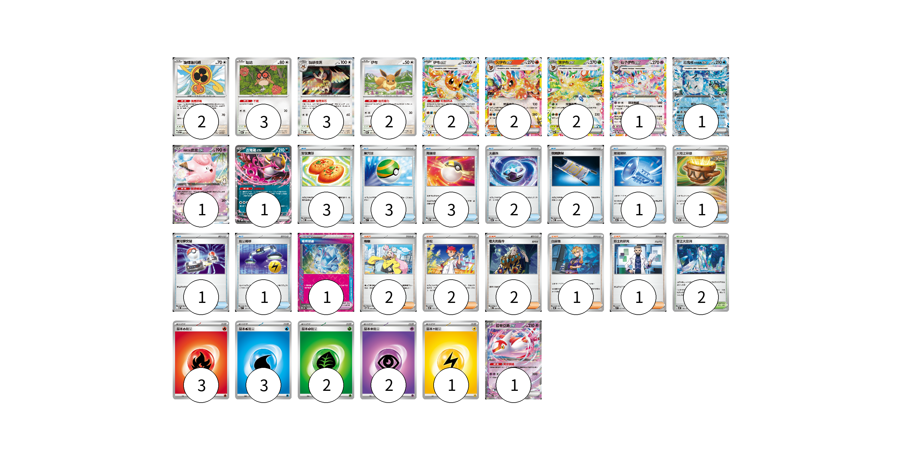 牌組構築方案 以此牌組為基礎新構築牌組 顯示卡面 顯示列表 寶可夢卡(21) 2 3 3 2 2 2 2 1 1 1 1 1 寶可夢道具(1) 1 物品卡(17) 3 3 3 2 2 1 1 1 1 支援者卡(8) 2 2 2 1 1 競技場卡(2) 2 能量卡(11) 3 3 2 2 1 寶可夢卡(21) 卡牌名稱 張數 卡牌名稱 張數 旋轉洛托姆 SV7 080/102 02 咕咕 SV8a 127/187 03 貓頭夜鷹 SV8a 128/187 03 伊布 SV8a 125/187 02 伊布ex SV8a 126/187 02 火伊布ex SV8a 022/187 02 葉伊布ex SV8a 003/187 02 仙子伊布ex SVPN 005/008 01 厄鬼椪 水井面具ex SV8a 050/187 01 莉莉艾的皮皮ex SV9 033/100 01 吉雉雞ex SVOD 004/020 01 拉帝亞斯ex M2a 075/193 01 寶可夢道具(1) 卡牌名稱 張數 卡牌名稱 張數 璀璨結晶 SV8a 152/187 01 物品卡(17) 卡牌名稱 張數 卡牌名稱 張數 好友寶芬 MBD 013/022 03 巢穴球 SVM 133/175 03 高級球 MBD 014/022 03 太晶珠 SV8a 145/187 02 夜間擔架 MBD 016/022 02 玻璃喇叭 SV8a 140/187 01 大地之容器 SV8a 143/187 01 寶可夢交替 MBG 015/022 01 能量轉移 SVM 127/175 01 支援者卡(8) 卡牌名稱 張數 卡牌名稱 張數 奇樹 SVOD 016/020 02 赤松 SV8a 163/187 02 老大的指令 MBD 020/022 02 白蕾雅 SV8a 176/187 01 博士的研究 SVK 033/042 01 競技場卡(2) 卡牌名稱 張數 卡牌名稱 張數 零之大空洞 SV8a 182/187 02 能量卡(11) 卡牌名稱 張數 卡牌名稱 張數 基本火能量 sv-p FIR 03 基本水能量 sv-p WAT 03 基本草能量 sv-p GRA 02 基本超能量 sv-p PSY 02 基本雷能量 sv-p LIG 01 以此牌組為基礎新構築牌組 牌組編碼 qQWGUL-KargsL-QIVVTt copy 列印牌組單 牌組編碼已複製 分享至SNS