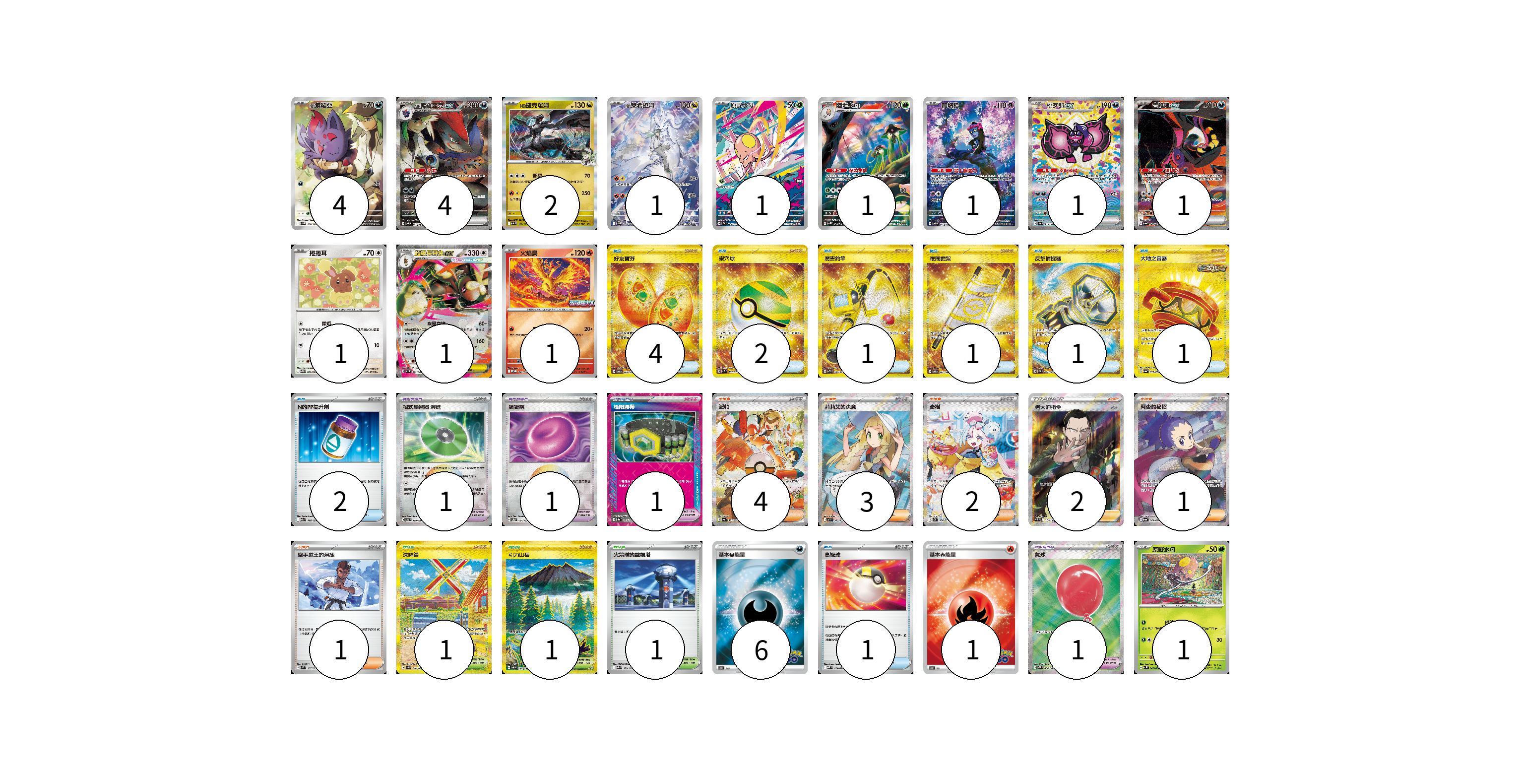 牌組構築方案 以此牌組為基礎新構築牌組 顯示卡面 顯示列表 寶可夢卡(20) 4 4 2 1 1 1 1 1 1 1 1 1 1 寶可夢道具(4) 1 1 1 1 物品卡(13) 4 2 1 1 1 1 2 1 支援者卡(13) 4 3 2 2 1 1 競技場卡(3) 1 1 1 能量卡(7) 6 1 寶可夢卡(20) 卡牌名稱 張數 卡牌名稱 張數 N的索羅亞 SV9 108/100 04 N的索羅亞克ex SV9 127/100 04 N的捷克羅姆 M2a 129/193 02 N的萊希拉姆 SV9 109/100 01 原野水母 SV1V 080/078 01 陸地水母 SV4M 068/066 01 願增猿 SV6 107/101 01 桃歹郎ex SV8a 219/187 01 吉雉雞ex SV6a 089/064 01 捲捲耳 M1S 053/063 01 超級長耳兔ex M2 072/080 01 火焰鳥 M-P 022/M-P 01 原野水母 SV4M 006/066 01 寶可夢道具(4) 卡牌名稱 張數 卡牌名稱 張數 招式學習器 演進 SV8a 160/187 01 鎖鏈糬 SV8a 154/187 01 極限腰帶 SV8a 159/187 01 氣球 M1L 084/063 01 物品卡(13) 卡牌名稱 張數 卡牌名稱 張數 好友寶芬 SV6 133/101 04 巢穴球 SV1S 107/078 02 厲害釣竿 SV2P 098/071 01 夜間擔架 SV8 137/106 01 反擊捕捉器 SV4M 094/066 01 大地之容器 SV6a 093/064 01 N的PP提升劑 M2a 146/193 02 高級球 MBD 014/022 01 支援者卡(13) 卡牌名稱 張數 卡牌名稱 張數 派帕 SV4a 353/190 04 莉莉艾的決意 M1L 086/063 03 奇樹 SV2D 096/071 02 老大的指令(坂木) SC1b 170/153 02 阿杏的秘招 SV6a 084/064 01 空手道王的演練 SVM 151/175 01 競技場卡(3) 卡牌名稱 張數 卡牌名稱 張數 深缽鎮 SV3 140/108 01 引力山岳 SV8 138/106 01 火箭隊的監視塔 M2a 189/193 01 能量卡(7) 卡牌名稱 張數 卡牌名稱 張數 基本惡能量 S10b DAR 06 基本火能量 S10b FIR 01 以此牌組為基礎新構築牌組 牌組編碼 rAwhzG-wAYstj-zmImaf copy 列印牌組單 牌組編碼已複製 分享至SNS