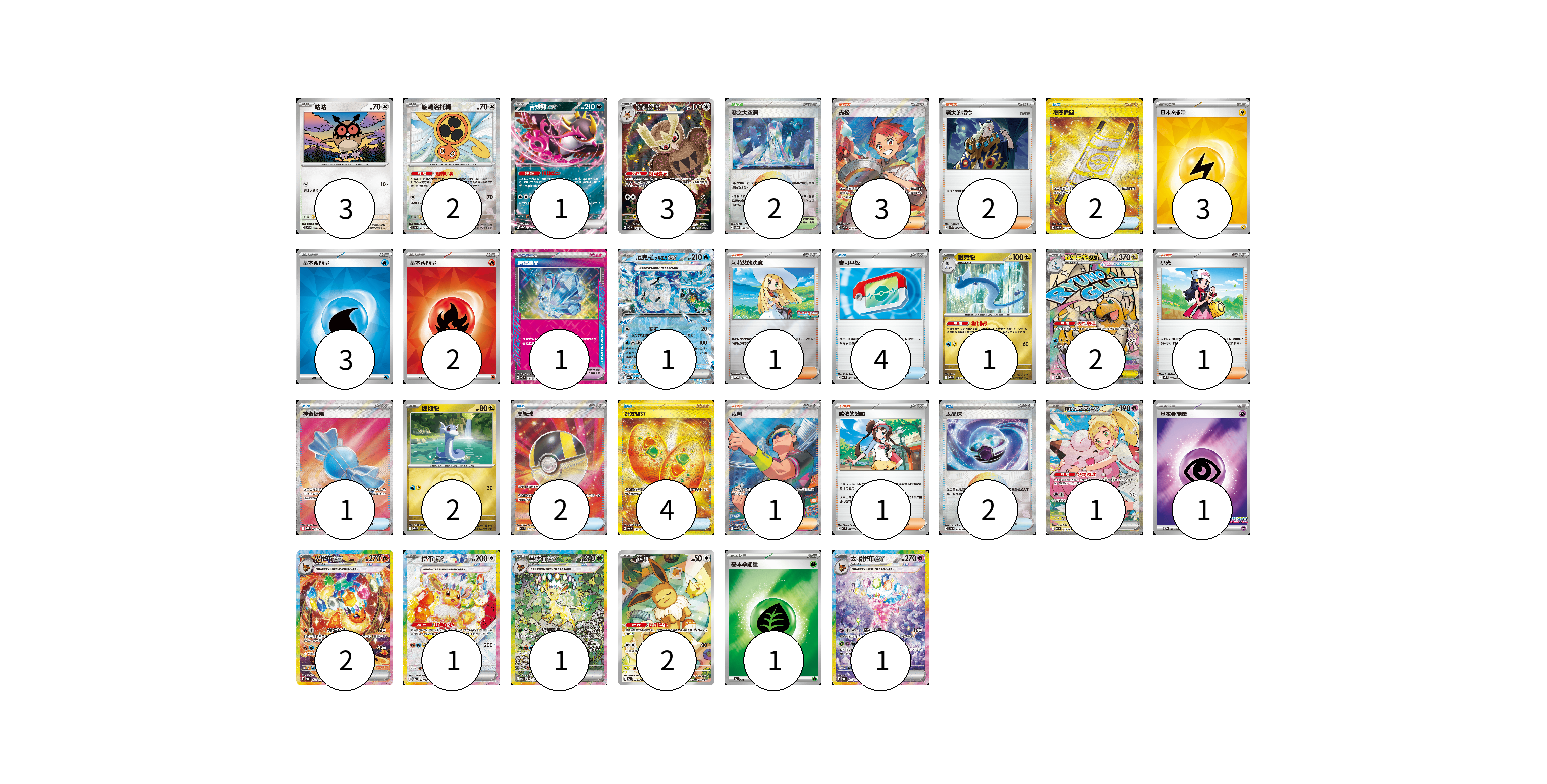 牌組構築方案 以此牌組為基礎新構築牌組 顯示卡面 顯示列表 寶可夢卡(23) 3 2 1 3 1 1 2 2 1 2 1 1 2 1 寶可夢道具(1) 1 物品卡(15) 2 4 1 2 4 2 支援者卡(9) 3 2 1 1 1 1 競技場卡(2) 2 能量卡(10) 3 3 2 1 1 寶可夢卡(23) 卡牌名稱 張數 卡牌名稱 張數 咕咕 SV7 076/102 03 旋轉洛托姆 SV8a 131/187 02 吉雉雞ex SV8a 104/187 01 貓頭夜鷹 SV7 114/102 03 厄鬼椪 水井面具ex SV8a 050/187 01 哈克龍 M2a 125/193 01 超級快龍ex M2a 232/193 02 迷你龍 M2a 124/193 02 莉莉艾的皮皮ex MC 765/742 01 火伊布ex SV8a 202/187 02 伊布ex SV8a 224/187 01 葉伊布ex SV8a 200/187 01 伊布 MC 755/742 02 太陽伊布ex SV8a 211/187 01 寶可夢道具(1) 卡牌名稱 張數 卡牌名稱 張數 璀璨結晶 SV7 094/102 01 物品卡(15) 卡牌名稱 張數 卡牌名稱 張數 夜間擔架 SV8 137/106 02 寶可平板 MC 662/742 04 神奇糖果 M1S 082/063 01 高級球 M2a 216/193 02 好友寶芬 SV6 133/101 04 太晶珠 SV8a 145/187 02 支援者卡(9) 卡牌名稱 張數 卡牌名稱 張數 赤松 SV7 123/102 03 老大的指令 SVK 036/042 02 莉莉艾的決意 M-P 011/M-P 01 小光 M2 077/080 01 裁判 SV9a 083/063 01 鳴依的勉勵 M3 075/080 01 競技場卡(2) 卡牌名稱 張數 卡牌名稱 張數 零之大空洞 SV8a 182/187 02 能量卡(10) 卡牌名稱 張數 卡牌名稱 張數 基本【雷】能量 SVK LIG 03 基本【水】能量 SVK WAT 03 基本【火】能量 SVK FIR 02 基本【超】能量 M-P 033/M-P 01 基本【草】能量 MC GRA 01 以此牌組為基礎新構築牌組 牌組編碼 rYtbOr-hOJvOK-BErzza copy 列印牌組單 牌組編碼已複製 分享至SNS
