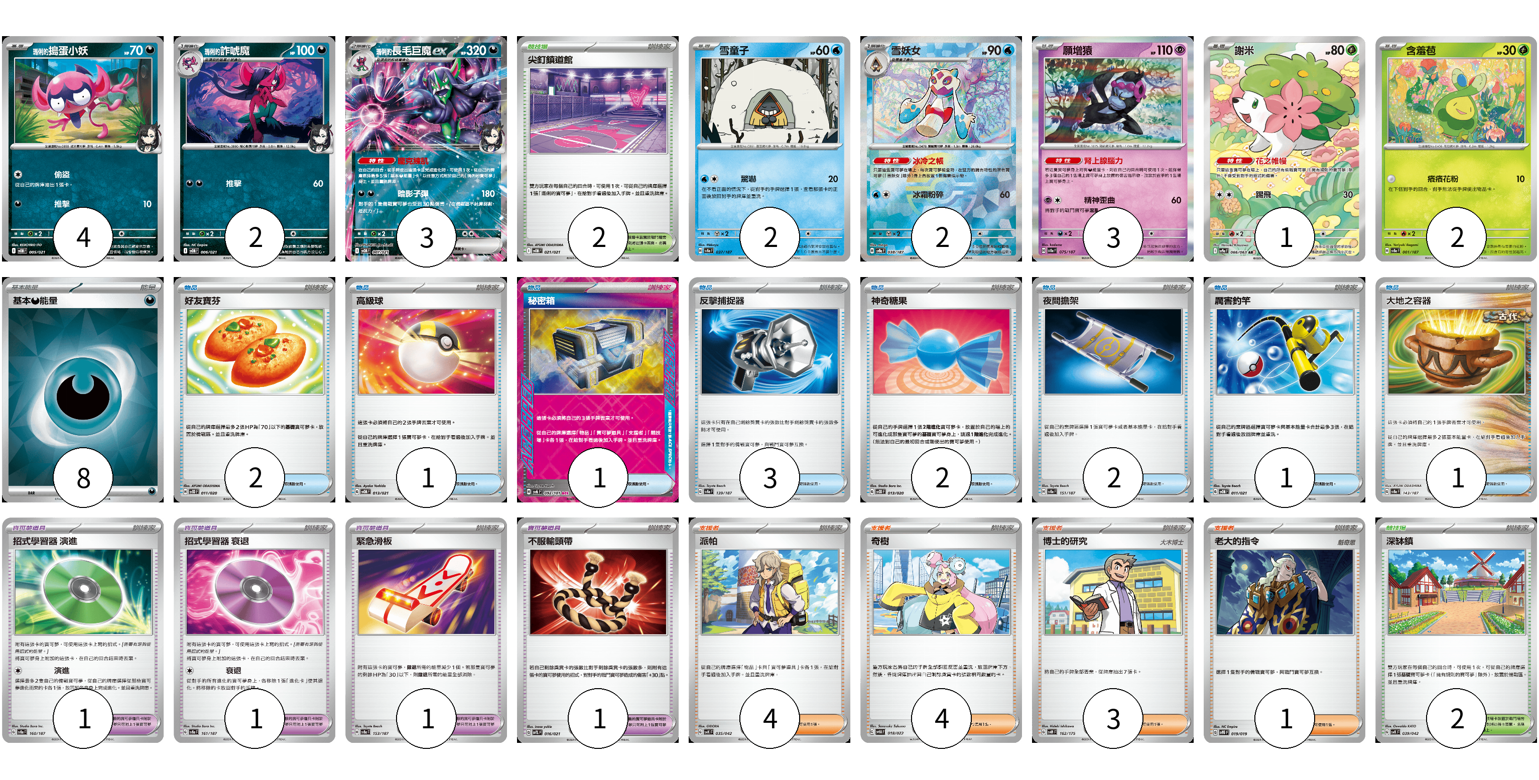 牌組構築方案 以此牌組為基礎新構築牌組 顯示卡面 顯示列表 寶可夢卡(19) 4 2 3 2 2 3 1 2 寶可夢道具(4) 1 1 1 1 物品卡(13) 2 1 1 3 2 2 1 1 支援者卡(12) 4 4 3 1 競技場卡(4) 2 2 能量卡(8) 8 寶可夢卡(19) 卡牌名稱 張數 卡牌名稱 張數 <瑪俐的>搗蛋小妖 SVOM 005/021 04 <瑪俐的>詐唬魔 SVOM 006/021 02 <瑪俐的>長毛巨魔ex SVOM 007/021 03 雪童子 SV8a 037/187 02 雪妖女 SV8a 038/187 02 願增猿 SV8a 075/187 03 謝米 SV9a 066/063 01 含羞苞 SV8a 001/187 02 寶可夢道具(4) 卡牌名稱 張數 卡牌名稱 張數 招式學習器 演進 SV8a 160/187 01 招式學習器 衰退 SV8a 161/187 01 緊急滑板 SV8a 153/187 01 不服輸頭帶 SVTL 016/021 01 物品卡(13) 卡牌名稱 張數 卡牌名稱 張數 好友寶芬 SVOD 011/020 02 高級球 SVOM 013/021 01 秘密箱 SV6 092/101 01 反擊捕捉器 SV8a 139/187 03 神奇糖果 SVOD 013/020 02 夜間擔架 SV8a 151/187 02 厲害釣竿 SVOM 011/021 01 大地之容器 SV8a 143/187 01 支援者卡(12) 卡牌名稱 張數 卡牌名稱 張數 派帕 SVK 035/042 04 奇樹 SVHM 018/022 04 博士的研究 SVM 162/175 03 老大的指令 SVTG 019/019 01 競技場卡(4) 卡牌名稱 張數 卡牌名稱 張數 尖釘鎮道館 SVOM 021/021 02 深缽鎮 SVK 039/042 02 能量卡(8) 卡牌名稱 張數 卡牌名稱 張數 基本【惡】能量 SVOM DAR 08 以此牌組為基礎新構築牌組 牌組編碼 sNmdvL-HOxoPU-gLTaOW copy 列印牌組單 牌組編碼已複製 分享至SNS