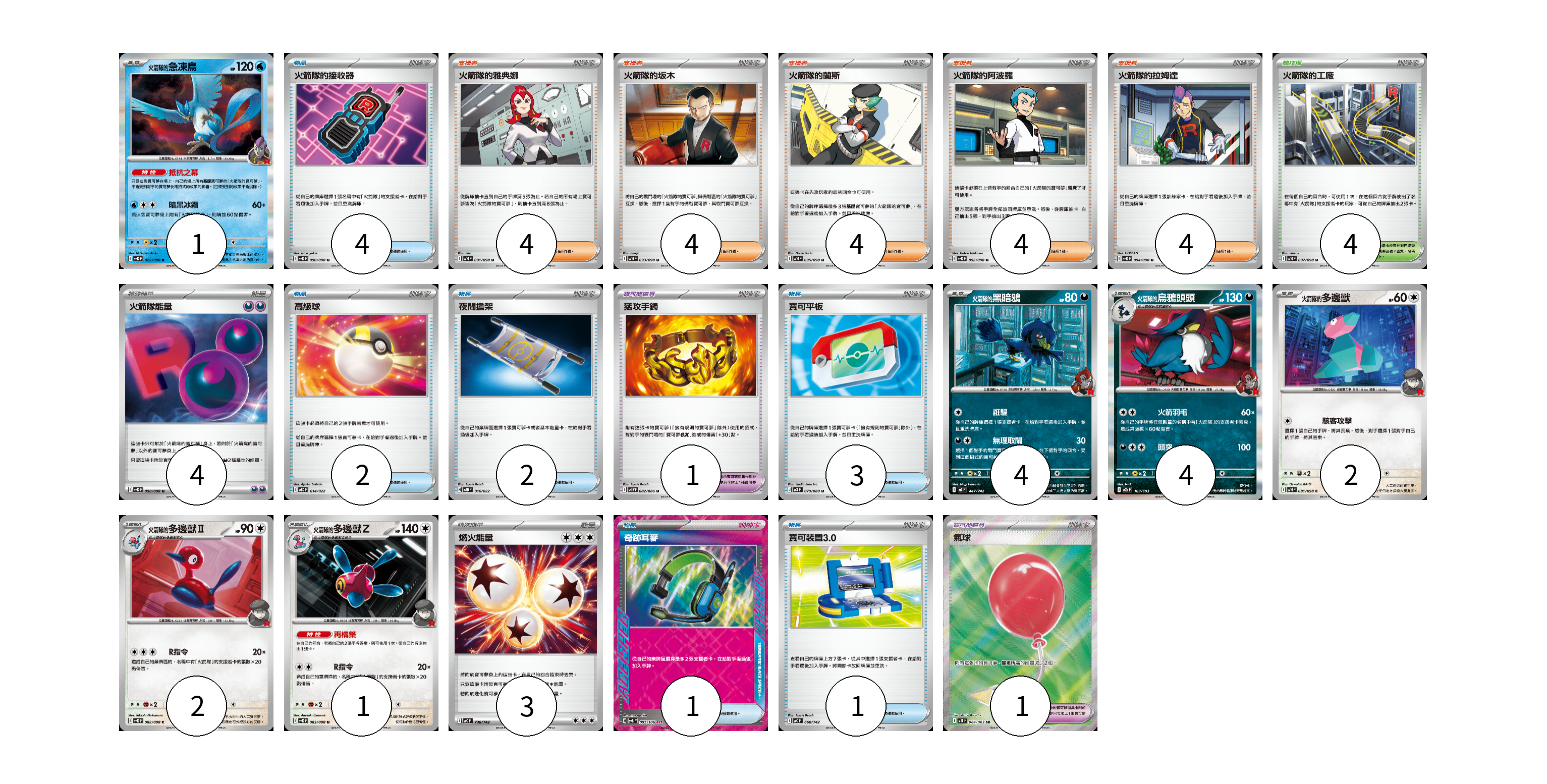 卡牌名稱 張數