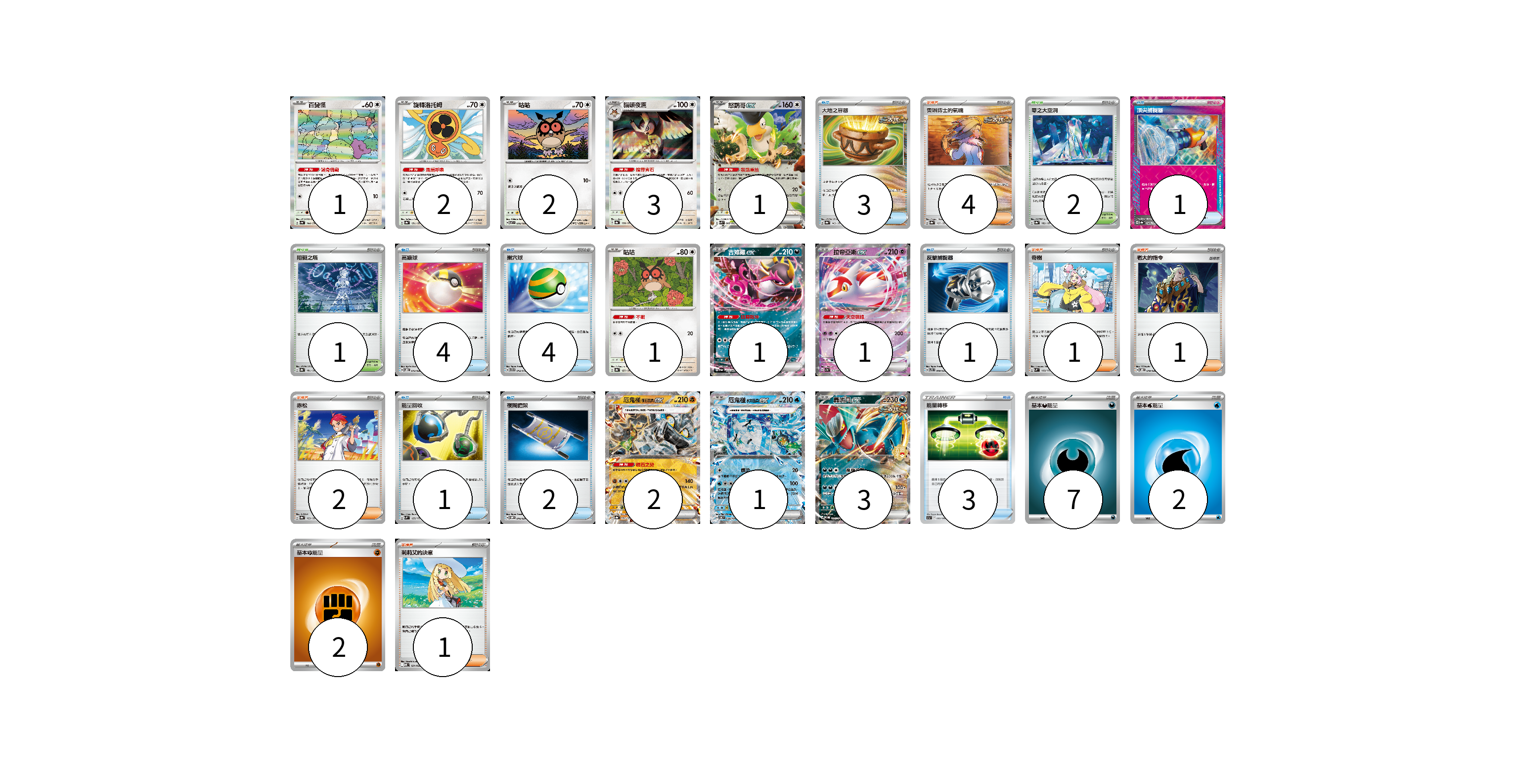 牌組構築方案 以此牌組為基礎新構築牌組 顯示卡面 顯示列表 寶可夢卡(18) 1 2 2 3 1 1 1 1 2 1 3 物品卡(19) 3 1 4 4 1 1 2 3 支援者卡(9) 4 1 1 2 1 競技場卡(3) 2 1 能量卡(11) 7 2 2 寶可夢卡(18) 卡牌名稱 張數 卡牌名稱 張數 百變怪 SV4a 144/190 01 旋轉洛托姆 SV8a 131/187 02 咕咕 SV7 076/102 02 貓頭夜鷹 SV8a 128/187 03 怒鸚哥ex SVK 006/042 01 咕咕 SV8a 127/187 01 吉雉雞ex SV6a 038/064 01 拉帝亞斯ex SV7a 019/064 01 厄鬼椪 礎石面具ex SV8a 091/187 02 厄鬼椪 水井面具ex SV6 038/101 01 轟鳴月ex SV-P 167/SV-P 03 物品卡(19) 卡牌名稱 張數 卡牌名稱 張數 大地之容器 SV8a 143/187 03 頂尖捕捉器 SV8a 148/187 01 高級球 SVOD 012/020 04 巢穴球 SVTG 012/019 04 反擊捕捉器 SVTS 009/022 01 能量回收 SVM 125/175 01 夜間擔架 SVOM 016/021 02 能量轉移 S11a 059/068 03 支援者卡(9) 卡牌名稱 張數 卡牌名稱 張數 奧琳博士的氣魄 SV8a 167/187 04 奇樹 SVM 160/175 01 老大的指令 SVOD 019/020 01 赤松 SV8a 163/187 02 莉莉艾的決意 MBD 021/022 01 競技場卡(3) 卡牌名稱 張數 卡牌名稱 張數 零之大空洞 SV8a 182/187 02 阻礙之塔 SV8a 181/187 01 能量卡(11) 卡牌名稱 張數 卡牌名稱 張數 基本惡能量 sv-p DAR 07 基本水能量 sv-p WAT 02 基本鬥能量 sv-p FIG 02 以此牌組為基礎新構築牌組 牌組編碼 secreO-VRQwmK-OjNuma copy 列印牌組單 牌組編碼已複製 分享至SNS