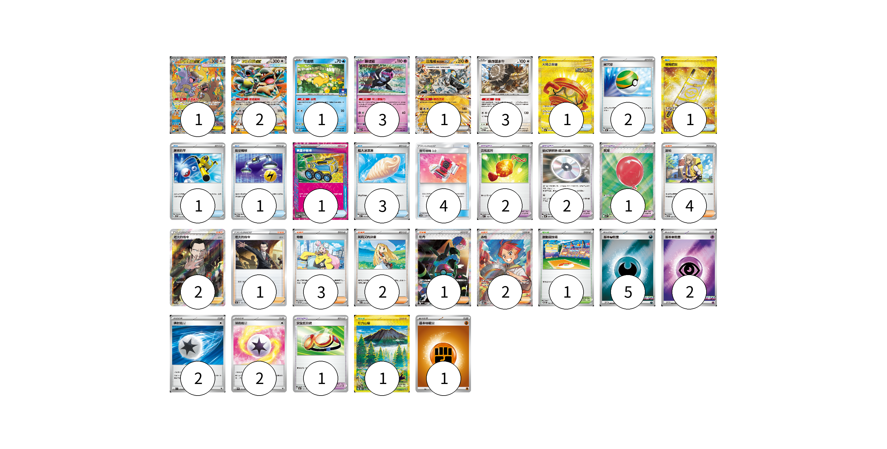 卡牌名稱 張數