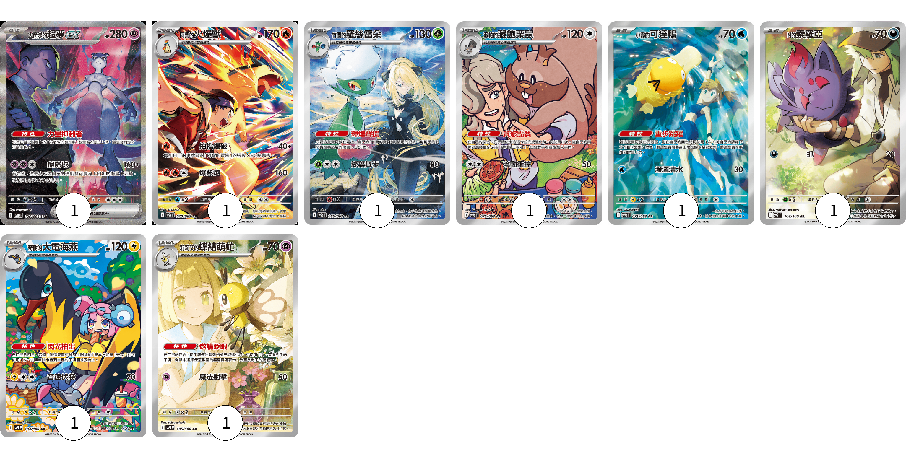 牌組構築方案 以此牌組為基礎新構築牌組 顯示卡面 顯示列表 寶可夢卡(8) 1 1 1 1 1 1 1 1 寶可夢卡(8) 卡牌名稱 張數 卡牌名稱 張數 <火箭隊的>超夢ex SV10 125/098 01 <阿響的>火爆獸 SV9a 070/063 01 <竹蘭的>羅絲雷朵 SV9a 065/063 01 <派帕的>藏飽栗鼠 SV9a 075/063 01 <小霞的>可達鴨 SV9a 071/063 01 N的索羅亞 SV9 108/100 01 奇樹的大電海燕 SV9 104/100 01 莉莉艾的蝶結萌虻 SV9 105/100 01 以此牌組為基礎新構築牌組 牌組編碼 uXtyql-YucAOO-SIDlJO copy 列印牌組單 牌組編碼已複製 分享至SNS