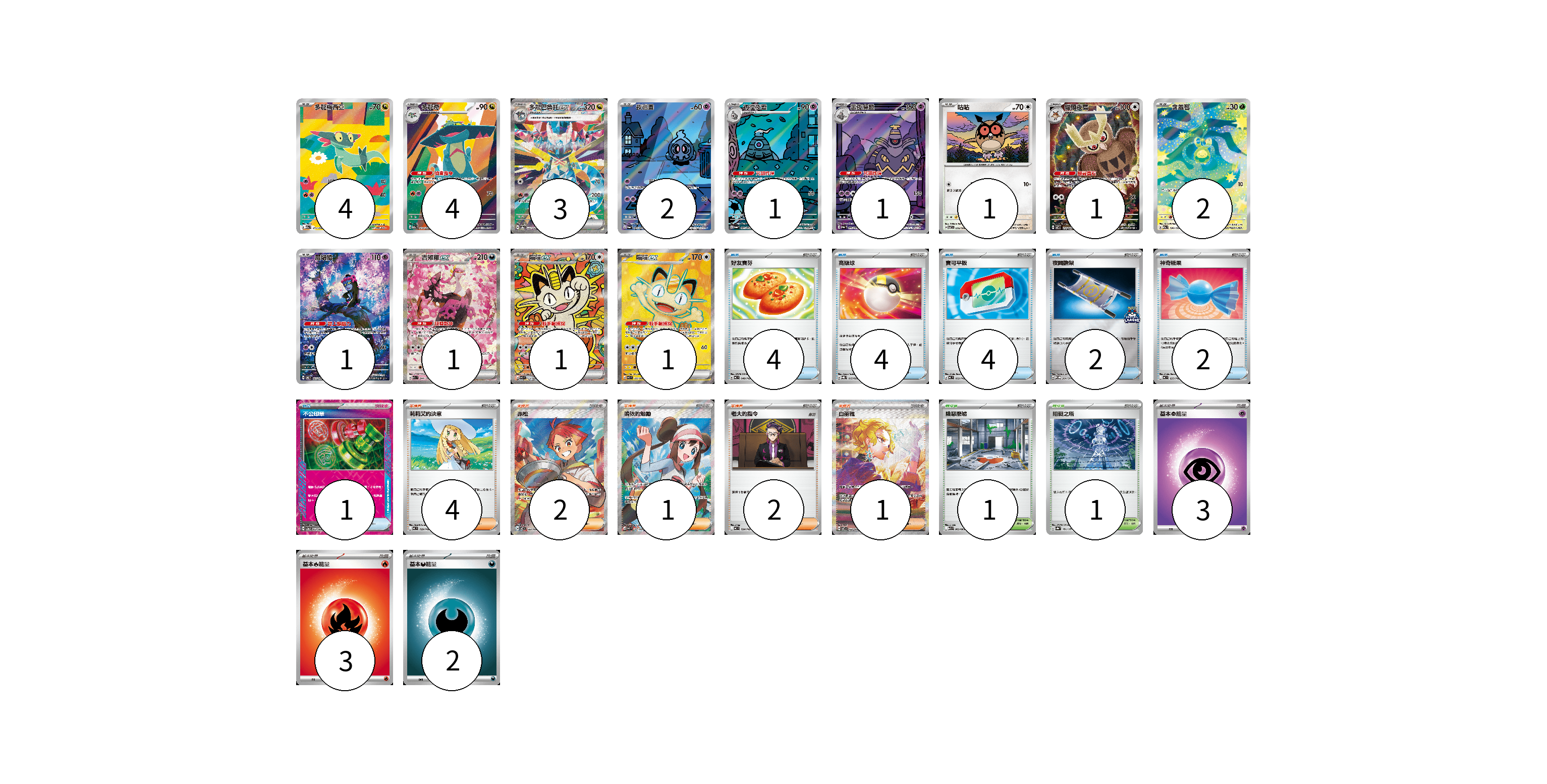 牌組構築方案 以此牌組為基礎新構築牌組 顯示卡面 顯示列表 寶可夢卡(23) 4 4 3 2 1 1 1 1 2 1 1 1 1 物品卡(17) 4 4 4 2 2 1 支援者卡(10) 4 2 1 2 1 競技場卡(2) 1 1 能量卡(8) 3 3 2 寶可夢卡(23) 卡牌名稱 張數 卡牌名稱 張數 多龍梅西亞 M2a 211/193 04 多龍奇 M2a 212/193 04 多龍巴魯托ex SV8a 221/187 03 夜巡靈 SV6a 068/064 02 彷徨夜靈 SV6a 069/064 01 黑夜魔靈 SV6a 070/064 01 咕咕 SV7 076/102 01 貓頭夜鷹 SV7 114/102 01 含羞苞 M2a 196/193 02 願增猿 SV6 107/101 01 吉雉雞ex M2a 244/193 01 喵喵ex M3 114/080 01 喵喵ex M3 100/080 01 物品卡(17) 卡牌名稱 張數 卡牌名稱 張數 好友寶芬 MC 648/742 04 高級球 SVQL 015/022 04 寶可平板 MC 662/742 04 夜間擔架 SV-P 204/SV-P 02 神奇糖果 MC 655/742 02 不公印章 SV5a 053/066 01 支援者卡(10) 卡牌名稱 張數 卡牌名稱 張數 莉莉艾的決意 MC 729/742 04 赤松 SV7 123/102 02 鳴依的勉勵 M3 107/080 01 老大的指令 MC 724/742 02 白蕾雅 SV7 132/102 01 競技場卡(2) 卡牌名稱 張數 卡牌名稱 張數 險惡廢墟 M1L 063/063 01 阻礙之塔 SV8a 181/187 01 能量卡(8) 卡牌名稱 張數 卡牌名稱 張數 基本【超】能量 MC PSY 03 基本【火】能量 MC FIR 03 基本【惡】能量 MC DAR 02 以此牌組為基礎新構築牌組 牌組編碼 vHNyPA-WPtHtv-ORTeZI copy 列印牌組單 牌組編碼已複製 分享至SNS