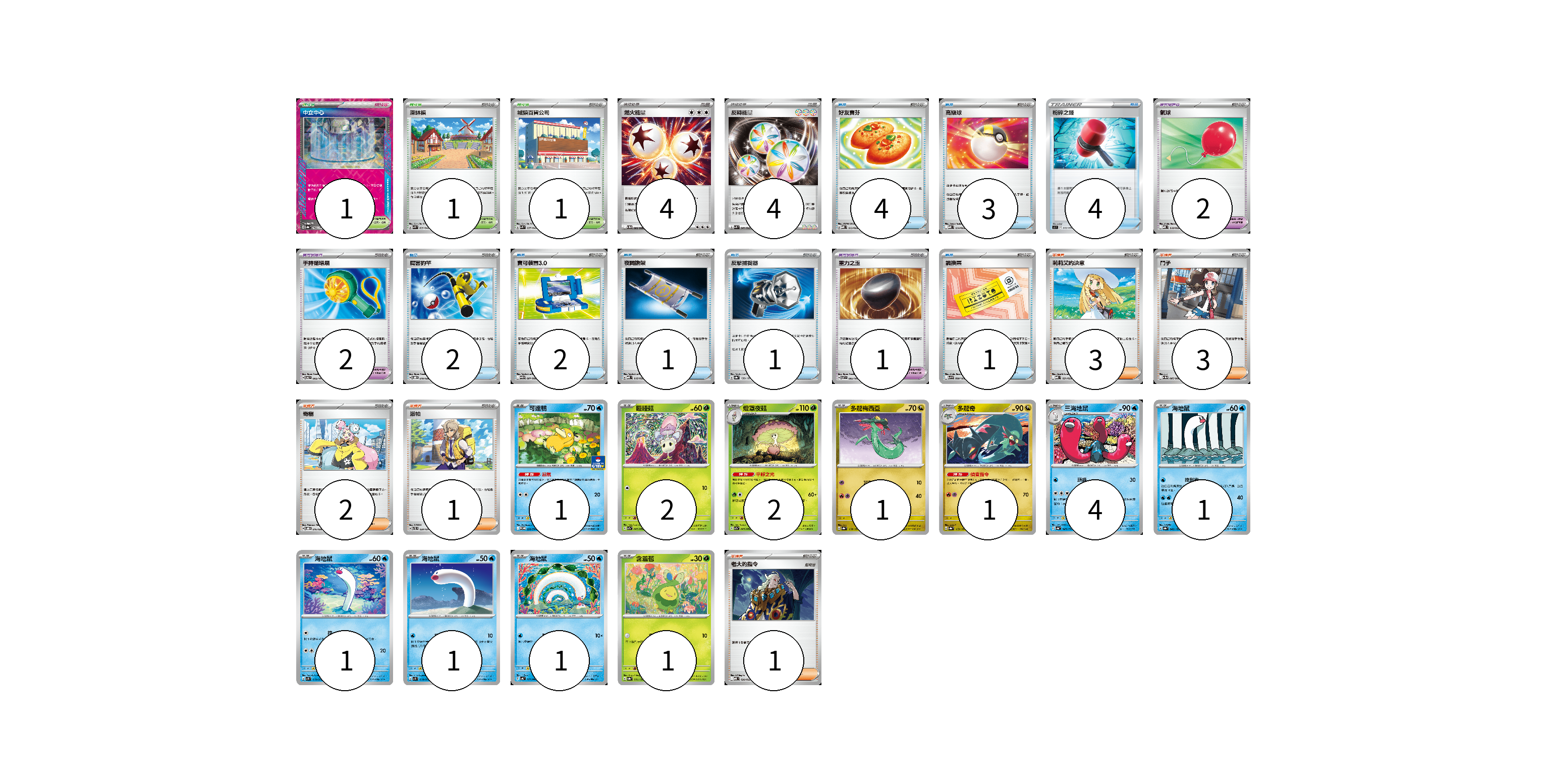 牌組構築方案 以此牌組為基礎新構築牌組 顯示卡面 顯示列表 寶可夢卡(16) 1 2 2 1 1 4 1 1 1 1 1 寶可夢道具(5) 2 2 1 物品卡(18) 4 3 4 2 2 1 1 1 支援者卡(10) 3 3 2 1 1 競技場卡(3) 1 1 1 能量卡(8) 4 4 寶可夢卡(16) 卡牌名稱 張數 卡牌名稱 張數 可達鴨 SV-P 220/SV-P 01 睡睡菇 SV7a 002/064 02 燈罩夜菇 SV7a 003/064 02 多龍梅西亞 SV8a 118/187 01 多龍奇 SV8a 119/187 01 三海地鼠 SV4a 045/190 04 海地鼠 SV8a 042/187 01 海地鼠 SV1S 019/078 01 海地鼠 SV1S 018/078 01 海地鼠 SV4K 023/066 01 含羞苞 SV8a 001/187 01 寶可夢道具(5) 卡牌名稱 張數 卡牌名稱 張數 氣球 MBD 018/022 02 手持循環扇 SV6 095/101 02 重力之玉 SV7 095/102 01 物品卡(18) 卡牌名稱 張數 卡牌名稱 張數 好友寶芬 MBD 013/022 04 高級球 MBD 014/022 03 粉碎之錘 SI 372/414 04 厲害釣竿 SVOD 010/020 02 寶可裝置3.0 SV11B 081/086 02 夜間擔架 MBD 016/022 01 反擊捕捉器 SV8a 139/187 01 調換票 SV9 090/100 01 支援者卡(10) 卡牌名稱 張數 卡牌名稱 張數 莉莉艾的決意 MBD 021/022 03 鬥子 SV11W 085/086 03 奇樹 SVOD 016/020 02 派帕 SVTL 020/021 01 老大的指令 MBD 020/022 01 競技場卡(3) 卡牌名稱 張數 卡牌名稱 張數 中立中心 SV8a 184/187 01 深缽鎮 SVK 039/042 01 城鎮百貨公司 SVK 037/042 01 能量卡(8) 卡牌名稱 張數 卡牌名稱 張數 燃火能量 SV11W 086/086 04 反轉能量 SVK 041/042 04 以此牌組為基礎新構築牌組 牌組編碼 vpyKlw-cbqdVG-qaYWaB copy 列印牌組單 牌組編碼已複製 分享至SNS