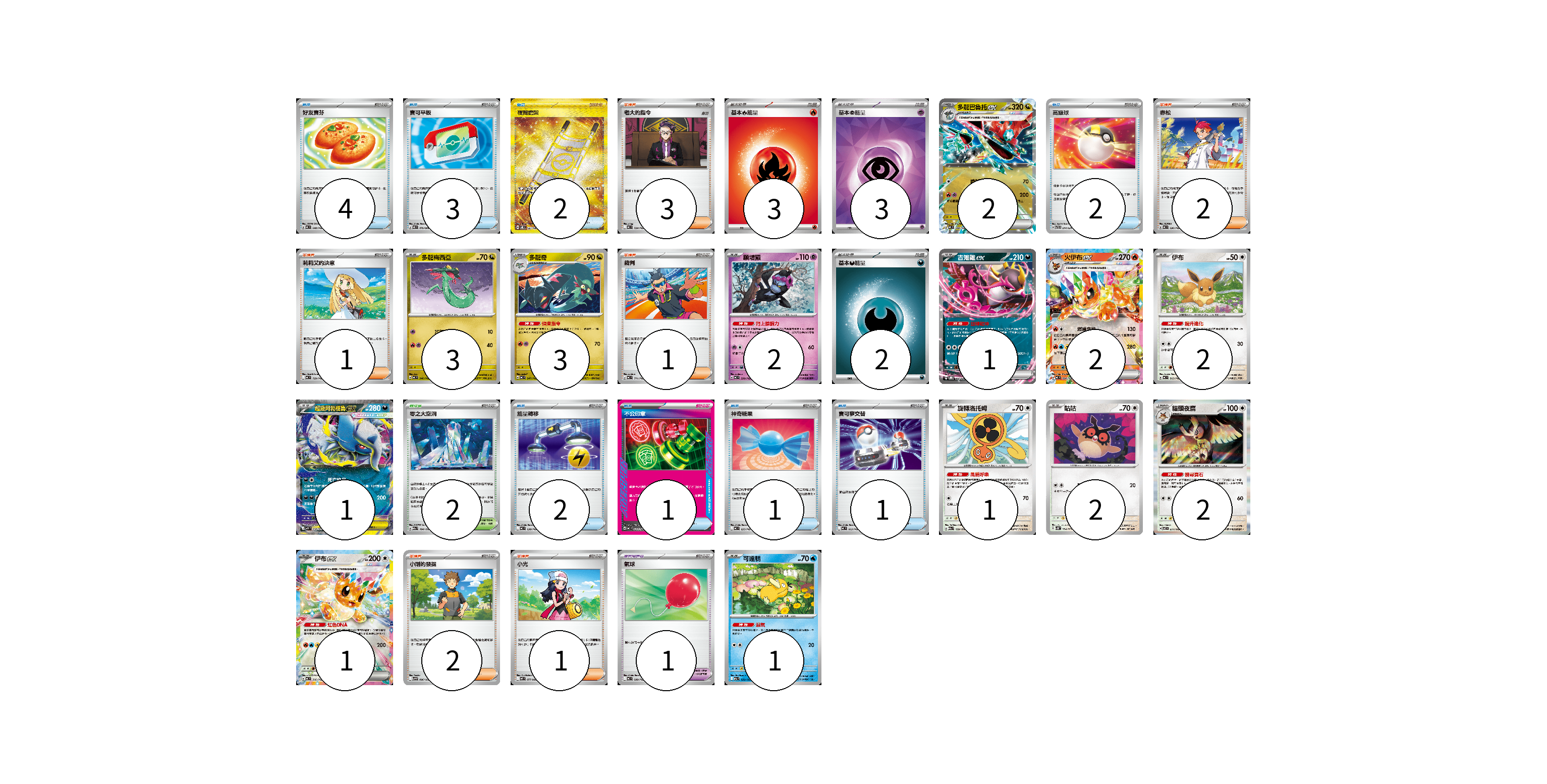牌組構築方案 以此牌組為基礎新構築牌組 顯示卡面 顯示列表 寶可夢卡(23) 2 3 3 2 1 2 2 1 1 2 2 1 1 寶可夢道具(1) 1 物品卡(16) 4 3 2 2 2 1 1 1 支援者卡(10) 3 2 1 1 2 1 競技場卡(2) 2 能量卡(8) 3 3 2 寶可夢卡(23) 卡牌名稱 張數 卡牌名稱 張數 多龍巴魯托ex MC 548/742 02 多龍梅西亞 MC 546/742 03 多龍奇 MC 547/742 03 願增猿 MC 358/742 02 吉雉雞ex SVOD 004/020 01 火伊布ex MC 094/742 02 伊布 MC 565/742 02 超級阿勃梭魯ex M1L 038/063 01 旋轉洛托姆 M2a 139/193 01 咕咕 SV5K 054/071 02 貓頭夜鷹 SV7 077/102 02 伊布ex MC 566/742 01 可達鴨 M2a 032/193 01 寶可夢道具(1) 卡牌名稱 張數 卡牌名稱 張數 氣球 MC 688/742 01 物品卡(16) 卡牌名稱 張數 卡牌名稱 張數 好友寶芬 MC 648/742 04 寶可平板 M3 070/080 03 夜間擔架 SV8 137/106 02 高級球 SVTR 014/021 02 能量轉移 MC 638/742 02 不公印章 MC 633/742 01 神奇糖果 MC 655/742 01 寶可夢交替 MC 663/742 01 支援者卡(10) 卡牌名稱 張數 卡牌名稱 張數 老大的指令 MC 724/742 03 赤松 MC 696/742 02 莉莉艾的決意 MC 729/742 01 裁判 MC 711/742 01 小剛的發掘 SV9 096/100 02 小光 M2 077/080 01 競技場卡(2) 卡牌名稱 張數 卡牌名稱 張數 零之大空洞 M2a 184/193 02 能量卡(8) 卡牌名稱 張數 卡牌名稱 張數 基本【火】能量 MC FIR 03 基本【超】能量 SVOD PSY 03 基本【惡】能量 MC DAR 02 以此牌組為基礎新構築牌組 牌組編碼 vvorZD-FhnaVc-perykn copy 列印牌組單 牌組編碼已複製 分享至SNS