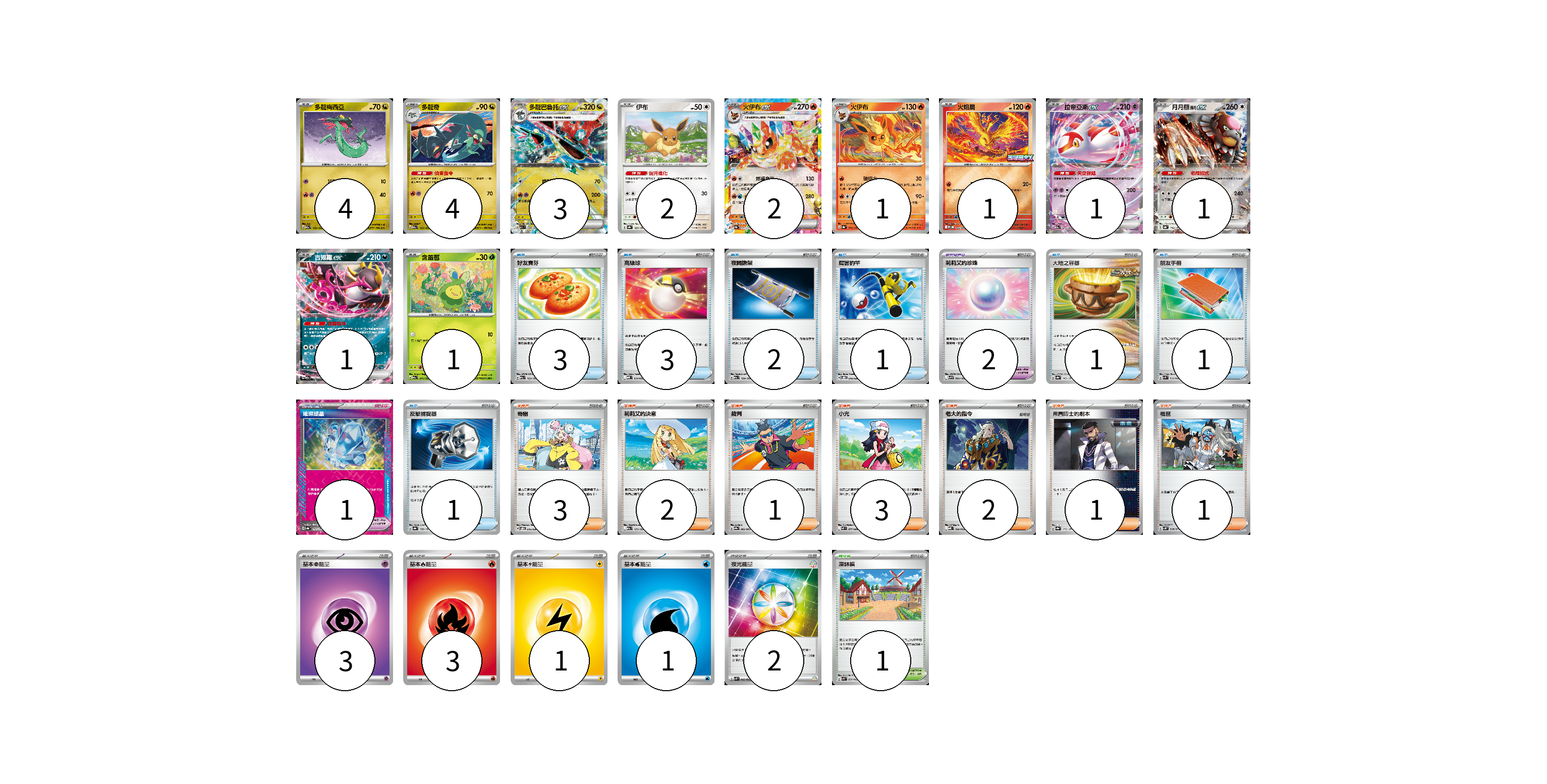 牌組構築方案 以此牌組為基礎新構築牌組 顯示卡面 顯示列表 寶可夢卡(21) 4 4 3 2 2 1 1 1 1 1 1 寶可夢道具(3) 2 1 物品卡(12) 3 3 2 1 1 1 1 支援者卡(13) 3 2 1 3 2 1 1 競技場卡(1) 1 能量卡(10) 3 3 1 1 2 寶可夢卡(21) 卡牌名稱 張數 卡牌名稱 張數 多龍梅西亞 M2a 132/193 04 多龍奇 M2a 133/193 04 多龍巴魯托ex M2a 134/193 03 伊布 SV8a 125/187 02 火伊布ex SV8a 022/187 02 火伊布 SV8a 021/187 01 火焰鳥 M-P 022/M-P 01 拉帝亞斯ex M2a 075/193 01 月月熊 赫月ex SV8a 134/187 01 吉雉雞ex M2a 114/193 01 含羞苞 M2a 011/193 01 寶可夢道具(3) 卡牌名稱 張數 卡牌名稱 張數 莉莉艾的珍珠 SV9 093/100 02 璀璨結晶 SV8a 152/187 01 物品卡(12) 卡牌名稱 張數 卡牌名稱 張數 好友寶芬 M2a 153/193 03 高級球 MBD 014/022 03 夜間擔架 M2a 159/193 02 厲害釣竿 SVOD 010/020 01 大地之容器 SV8a 143/187 01 朋友手冊 SVK 014/042 01 反擊捕捉器 SV8a 139/187 01 支援者卡(13) 卡牌名稱 張數 卡牌名稱 張數 奇樹 SVOD 016/020 03 莉莉艾的決意 M2a 175/193 02 裁判 SV9a 062/063 01 小光 M2 077/080 03 老大的指令 MBD 020/022 02 弗圖博士的劇本 SV8a 175/187 01 枇琶 SV5K 068/071 01 競技場卡(1) 卡牌名稱 張數 卡牌名稱 張數 深缽鎮 SVK 039/042 01 能量卡(10) 卡牌名稱 張數 卡牌名稱 張數 基本超能量 sv-p PSY 03 基本火能量 sv-p FIR 03 基本雷能量 sv-p LIG 01 基本水能量 sv-p WAT 01 夜光能量 SVK 042/042 02 以此牌組為基礎新構築牌組 牌組編碼 wMIzGf-WlOjeK-CxGQrZ copy 列印牌組單 牌組編碼已複製 分享至SNS