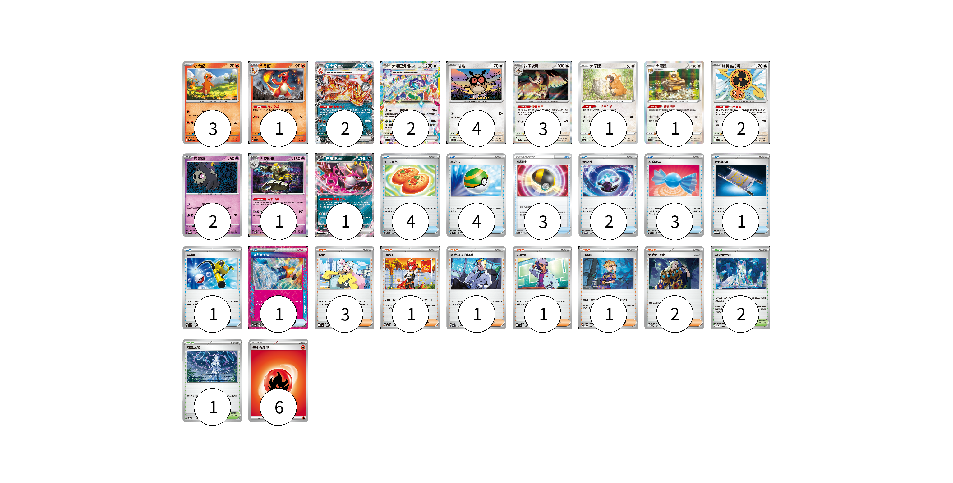 牌組構築方案 以此牌組為基礎新構築牌組 顯示卡面 顯示列表 寶可夢卡(23) 3 1 2 2 4 3 1 1 2 2 1 1 物品卡(19) 4 4 3 2 3 1 1 1 支援者卡(9) 3 1 1 1 1 2 競技場卡(3) 2 1 能量卡(6) 6 寶可夢卡(23) 卡牌名稱 張數 卡牌名稱 張數 小火龍 SV2a 004/165 03 火恐龍 SV4a 026/190 01 噴火龍ex SVTL 006/021 02 太樂巴戈斯ex SV7 088/102 02 咕咕 SV7 076/102 04 貓頭夜鷹 SV8a 128/187 03 大牙狸 S12a 121/172 01 大尾狸 S9 082/100 01 旋轉洛托姆 SV7 080/102 02 夜巡靈 SV8a 064/187 02 黑夜魔靈 SV8a 066/187 01 吉雉雞ex SV6a 038/064 01 物品卡(19) 卡牌名稱 張數 卡牌名稱 張數 好友寶芬 SV5K 063/071 04 巢穴球 SV1S 070/078 04 高級球 S9 089/100 03 太晶珠 SV8a 145/187 02 神奇糖果 SV1V 072/078 03 夜間擔架 SV6a 056/064 01 厲害釣竿 SV2P 066/071 01 頂尖捕捉器 SV8a 148/187 01 支援者卡(9) 卡牌名稱 張數 卡牌名稱 張數 奇樹 SV2D 069/071 03 梅洛可 SV4K 066/066 01 阿克羅瑪的執著 SV8a 164/187 01 吉尼亞 SV1S 074/078 01 白蕾雅 SV7 100/102 01 老大的指令 SVEL 019/020 02 競技場卡(3) 卡牌名稱 張數 卡牌名稱 張數 零之大空洞 SV7 102/102 02 阻礙之塔 SV8a 181/187 01 能量卡(6) 卡牌名稱 張數 卡牌名稱 張數 基本火能量 sv-p FIR 06 以此牌組為基礎新構築牌組 牌組編碼 wzzdnA-BuYFRU-BKsFbg copy 列印牌組單 牌組編碼已複製 分享至SNS