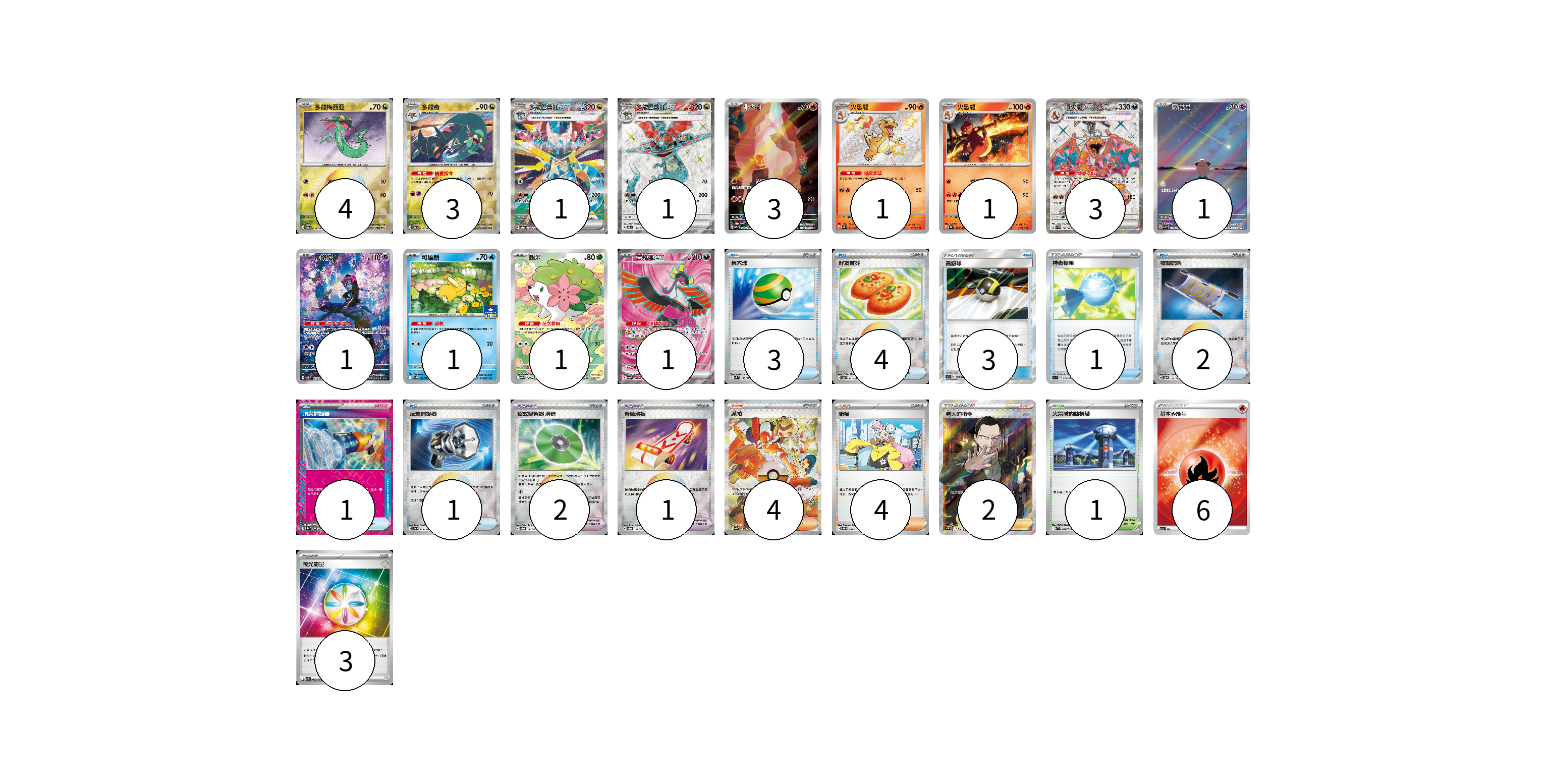 牌組構築方案 以此牌組為基礎新構築牌組 顯示卡面 顯示列表 寶可夢卡(22) 4 3 1 1 3 1 1 3 1 1 1 1 1 寶可夢道具(3) 2 1 物品卡(15) 3 4 3 1 2 1 1 支援者卡(10) 4 4 2 競技場卡(1) 1 能量卡(9) 6 3 寶可夢卡(22) 卡牌名稱 張數 卡牌名稱 張數 多龍梅西亞 SV8a 118/187 04 多龍奇 SV8a 119/187 03 多龍巴魯托ex SV8a 221/187 01 多龍巴魯托ex SV6 120/101 01 小火龍 SV2a 168/165 03 火恐龍 SV4a 211/190 01 火恐龍 SV2a 005/165 01 噴火龍ex SV3 125/108 03 皮寶寶 SV3 113/108 01 願增猿 SV6 107/101 01 可達鴨 SV-P 220/SV-P 01 謝米 SV9a 066/063 01 吉雉雞ex SV6a 081/064 01 寶可夢道具(3) 卡牌名稱 張數 卡牌名稱 張數 招式學習器 演進 SV8a 160/187 02 緊急滑板 SV8a 153/187 01 物品卡(15) 卡牌名稱 張數 卡牌名稱 張數 巢穴球 SVM 133/175 03 好友寶芬 SV8a 147/187 04 高級球 AS5b 178/186 03 神奇糖果 SI 376/414 01 夜間擔架 SV8a 151/187 02 頂尖捕捉器 SV8a 148/187 01 反擊捕捉器 SV8a 139/187 01 支援者卡(10) 卡牌名稱 張數 卡牌名稱 張數 派帕 SV4a 353/190 04 奇樹 SVOD 016/020 04 老大的指令(坂木) SC1b 170/153 02 競技場卡(1) 卡牌名稱 張數 卡牌名稱 張數 火箭隊的監視塔 SV10 096/098 01 能量卡(9) 卡牌名稱 張數 卡牌名稱 張數 基本【火】能量 SO FIR 06 夜光能量 SVK 042/042 03 以此牌組為基礎新構築牌組 牌組編碼 xGLcUr-EvNxJj-QIOkhk copy 列印牌組單 牌組編碼已複製 分享至SNS