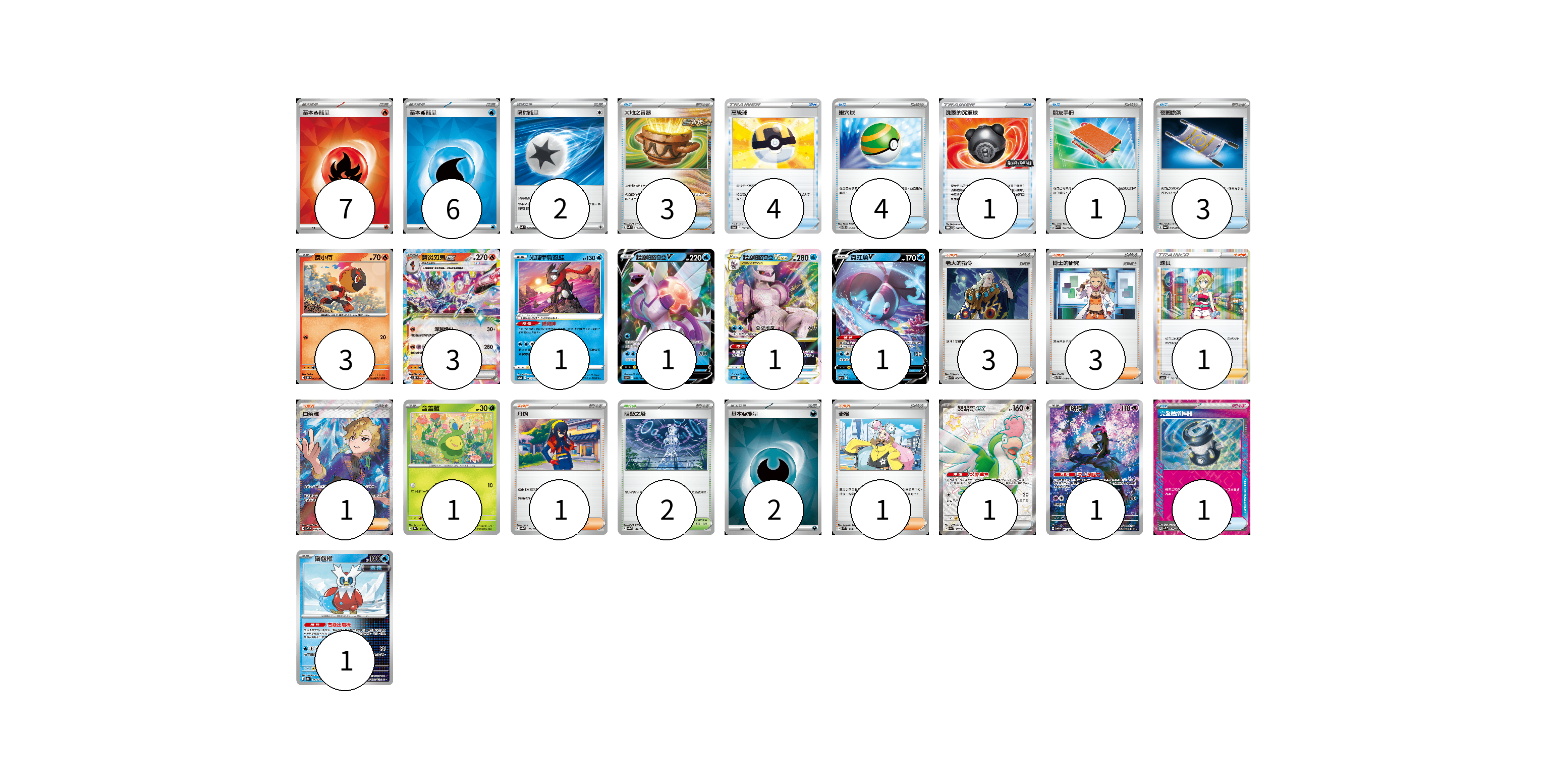牌組構築方案 以此牌組為基礎新構築牌組 顯示卡面 顯示列表 寶可夢卡(14) 3 3 1 1 1 1 1 1 1 1 物品卡(17) 3 4 4 1 1 3 1 支援者卡(10) 3 3 1 1 1 1 競技場卡(2) 2 能量卡(17) 7 6 2 2 寶可夢卡(14) 卡牌名稱 張數 卡牌名稱 張數 炭小侍 SVPS 005/008 03 蒼炎刃鬼ex SVPS 006/008 03 光輝甲賀忍蛙 SVTG 002/019 01 起源帕路奇亞V S10P 022/067 01 起源帕路奇亞VSTAR S12a 028/172 01 霓虹魚V SVF 002/038 01 含羞苞 SV8a 001/187 01 怒鸚哥ex SV4a 337/190 01 願增猿 SV6 107/101 01 鐵包袱 SV8a 047/187 01 物品卡(17) 卡牌名稱 張數 卡牌名稱 張數 大地之容器 SVK 012/042 03 高級球 S12a 138/172 04 巢穴球 SVTG 012/019 04 洗翠的沉重球 SV-P 138/SV-P 01 朋友手冊 SVK 014/042 01 夜間擔架 SV6a 056/064 03 完全體攪拌器 SVK 017/042 01 支援者卡(10) 卡牌名稱 張數 卡牌名稱 張數 老大的指令 SVK 036/042 03 博士的研究 SVTG 018/019 03 珠貝 S12a 149/172 01 白蕾雅 SV7 126/102 01 丹瑜 SV8a 170/187 01 奇樹 SVM 160/175 01 競技場卡(2) 卡牌名稱 張數 卡牌名稱 張數 阻礙之塔 SV8a 181/187 02 能量卡(17) 卡牌名稱 張數 卡牌名稱 張數 基本【火】能量 SVK FIR 07 基本【水】能量 SVK WAT 06 噴射能量 SVK 040/042 02 基本【惡】能量 SVK DAR 02 以此牌組為基礎新構築牌組 牌組編碼 xKPUgQ-npHQXj-RtglFx copy 列印牌組單 牌組編碼已複製 分享至SNS