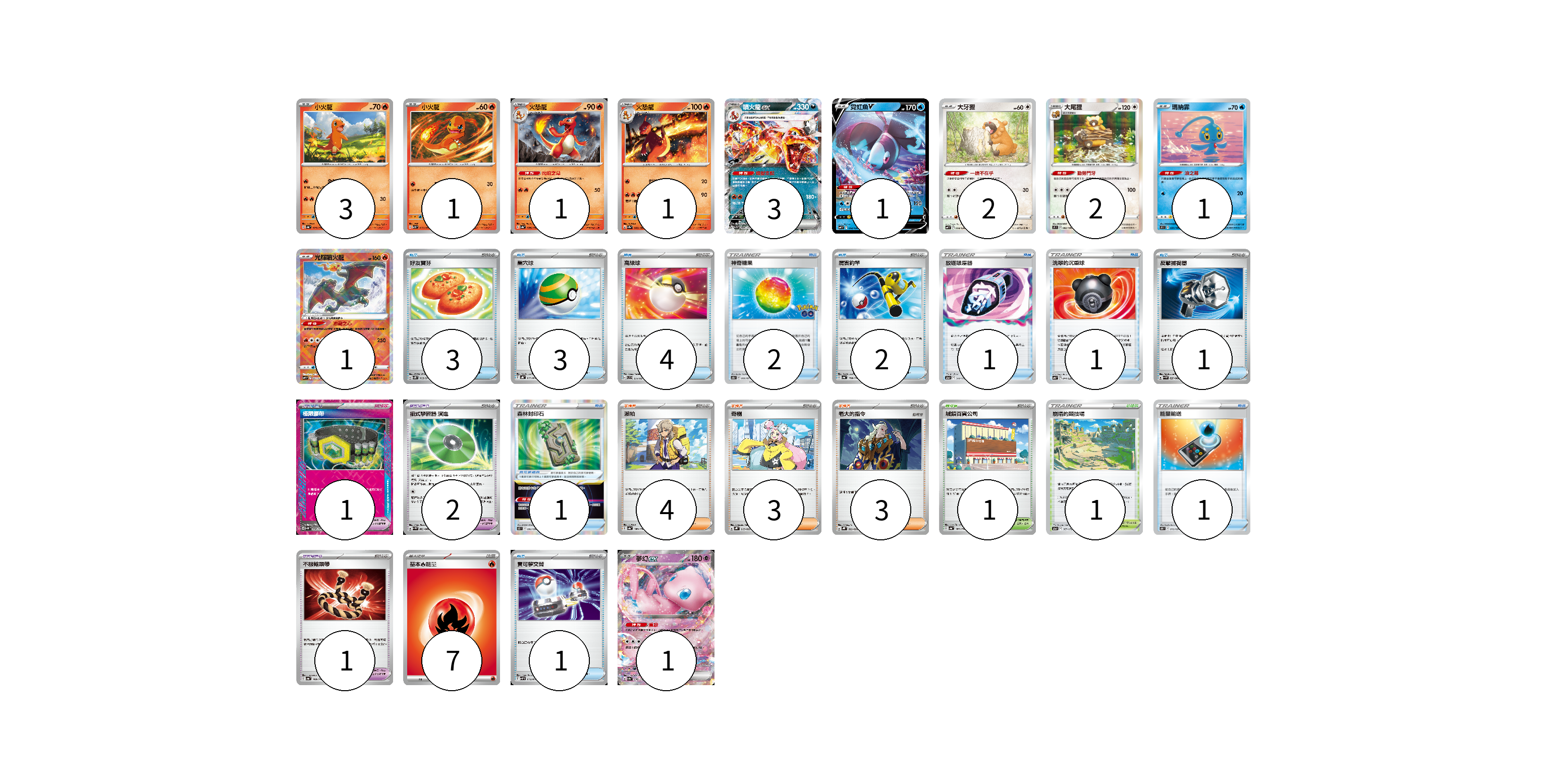牌組構築方案 以此牌組為基礎新構築牌組 顯示卡面 顯示列表 寶可夢卡(17) 3 1 1 1 3 1 2 2 1 1 1 寶可夢道具(5) 1 2 1 1 物品卡(19) 3 3 4 2 2 1 1 1 1 1 支援者卡(10) 4 3 3 競技場卡(2) 1 1 能量卡(7) 7 寶可夢卡(17) 卡牌名稱 張數 卡牌名稱 張數 小火龍 SV4a 025/190 03 小火龍 SV3 012/108 01 火恐龍 SV4a 026/190 01 火恐龍 SV2a 005/165 01 噴火龍ex SV3 066/108 03 霓虹魚V SVF 002/038 01 大牙狸 SVF 008/038 02 大尾狸 S9 082/100 02 瑪納霏 S9 031/100 01 光輝噴火龍 SVF 001/038 01 夢幻ex SV4a 076/190 01 寶可夢道具(5) 卡牌名稱 張數 卡牌名稱 張數 極限腰帶 SV5K 066/071 01 招式學習器 演進 SV4M 063/066 02 森林封印石 S12 092/098 01 不服輸頭帶 SV4a 168/190 01 物品卡(19) 卡牌名稱 張數 卡牌名稱 張數 好友寶芬 SV5K 063/071 03 巢穴球 SVHK 012/022 03 高級球 SVC 014/021 04 神奇糖果 S10b 066/071 02 厲害釣竿 SV4a 158/190 02 放逐吸塵器 S12a 144/172 01 洗翠的沉重球 SVB 014/028 01 反擊捕捉器 SV4M 059/066 01 能量輸送 SN 013/024 01 寶可夢交替 SVHM 014/022 01 支援者卡(10) 卡牌名稱 張數 卡牌名稱 張數 派帕 SV4a 180/190 04 奇樹 SVHK 019/022 03 老大的指令 SVHK 022/022 03 競技場卡(2) 卡牌名稱 張數 卡牌名稱 張數 城鎮百貨公司 SV4a 183/190 01 崩塌的競技場 S12a 167/172 01 能量卡(7) 卡牌名稱 張數 卡牌名稱 張數 基本【火】能量 SVHK FIR 07 以此牌組為基礎新構築牌組 牌組編碼 xZIpkg-EoeUeA-ihfURT copy 列印牌組單 牌組編碼已複製 分享至SNS